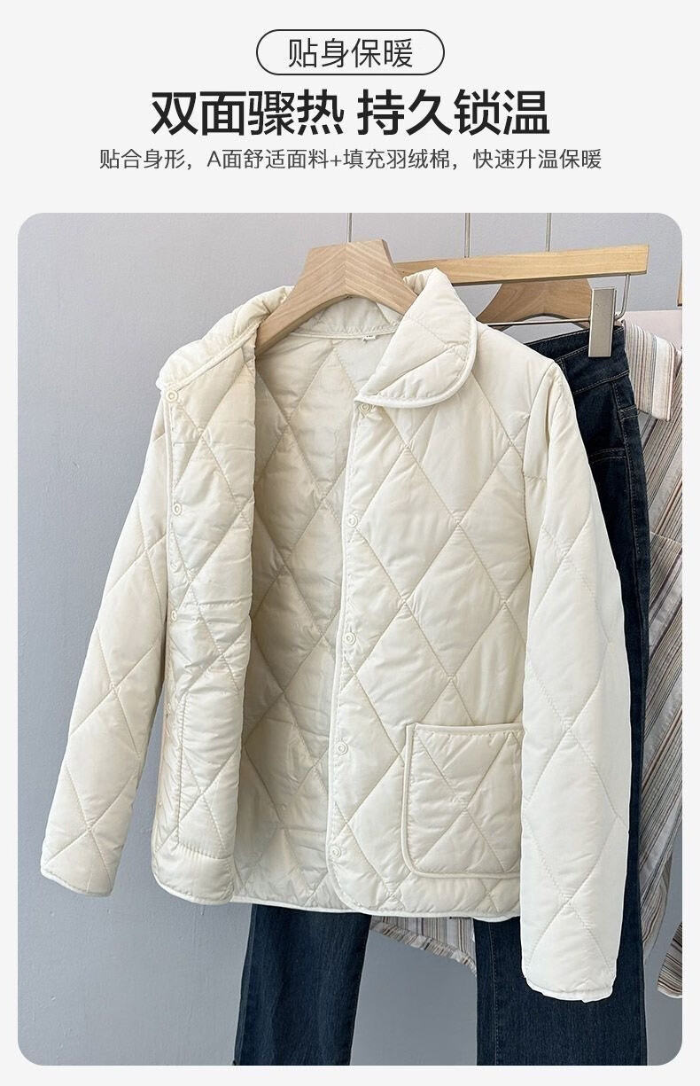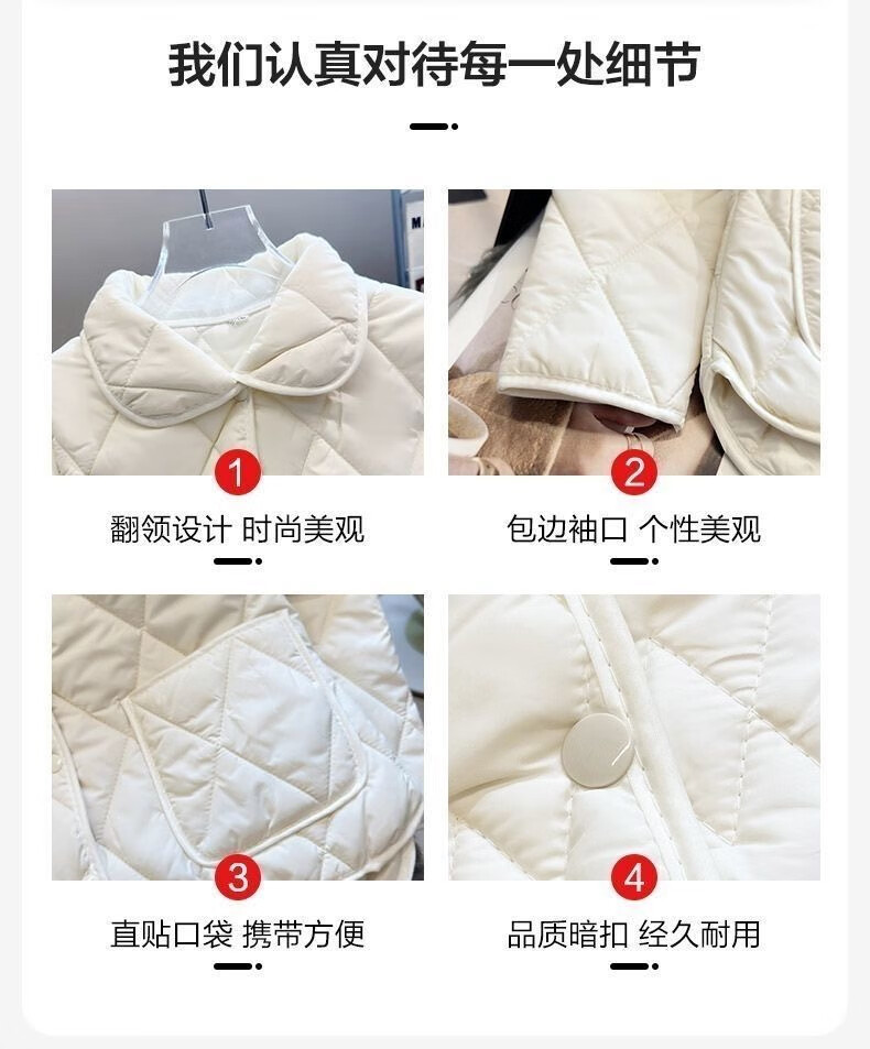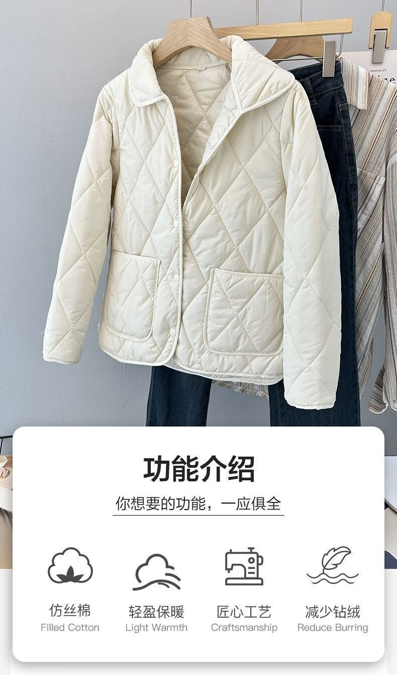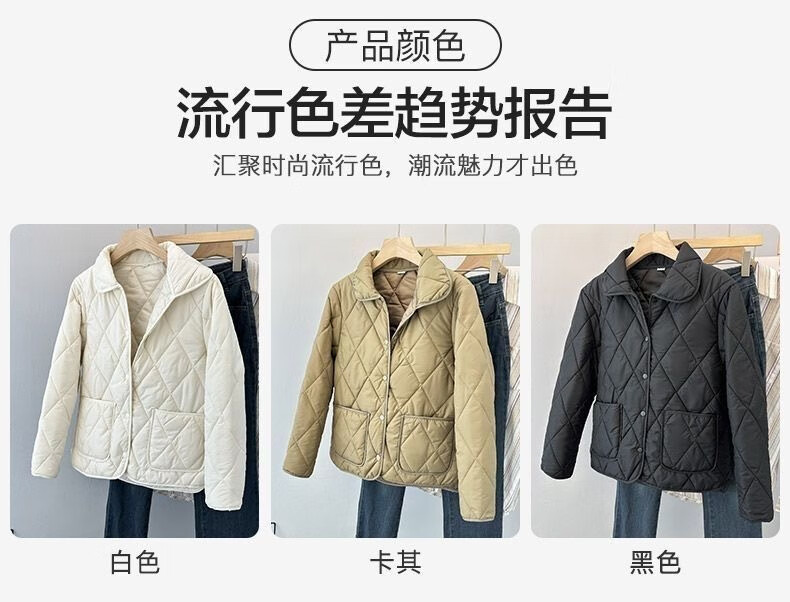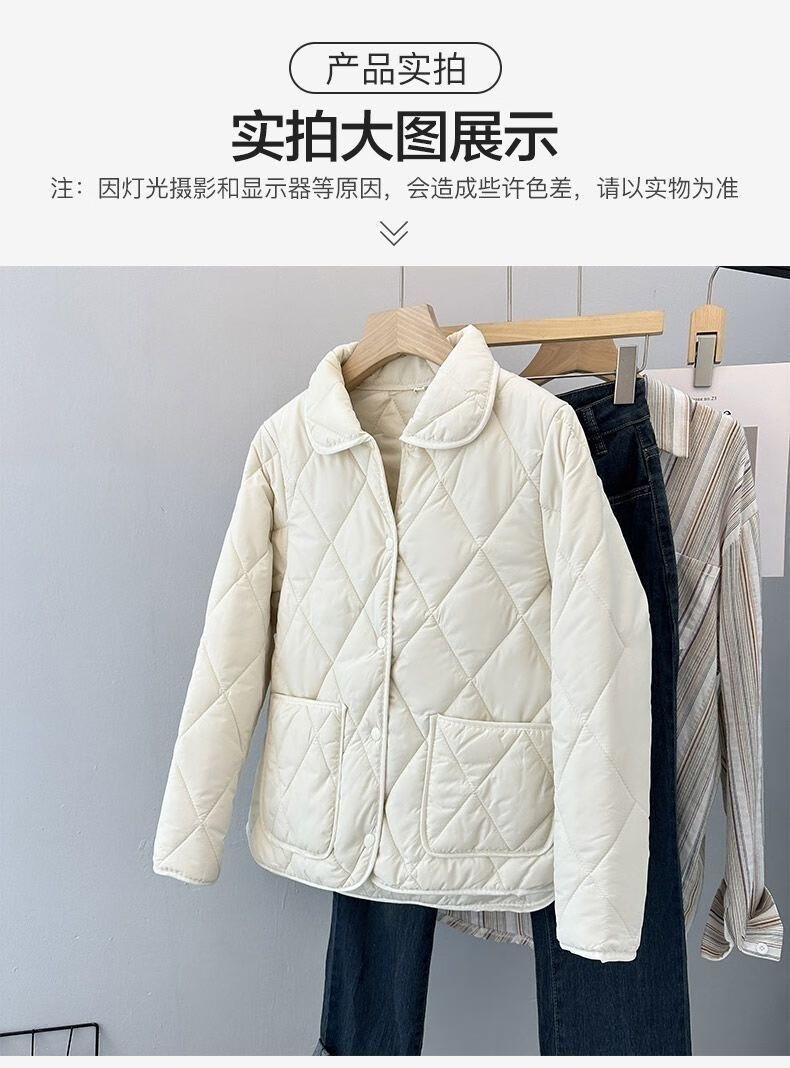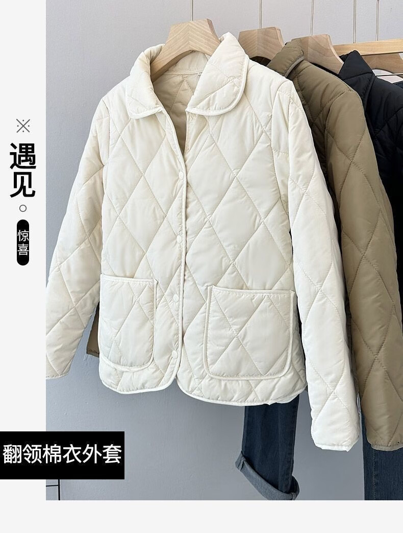 春秋季轻薄款女士新款小棉袄短款纯色翻领薄款外套棉衣女百搭棉服 卡其 3XL 建议110-125斤
