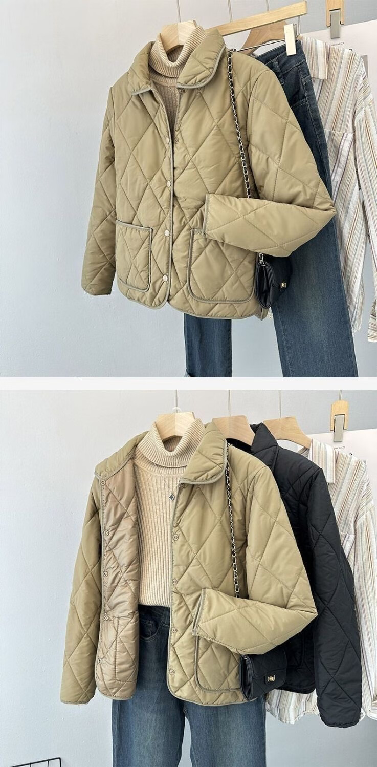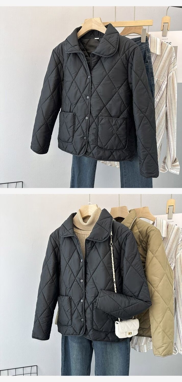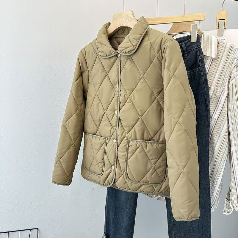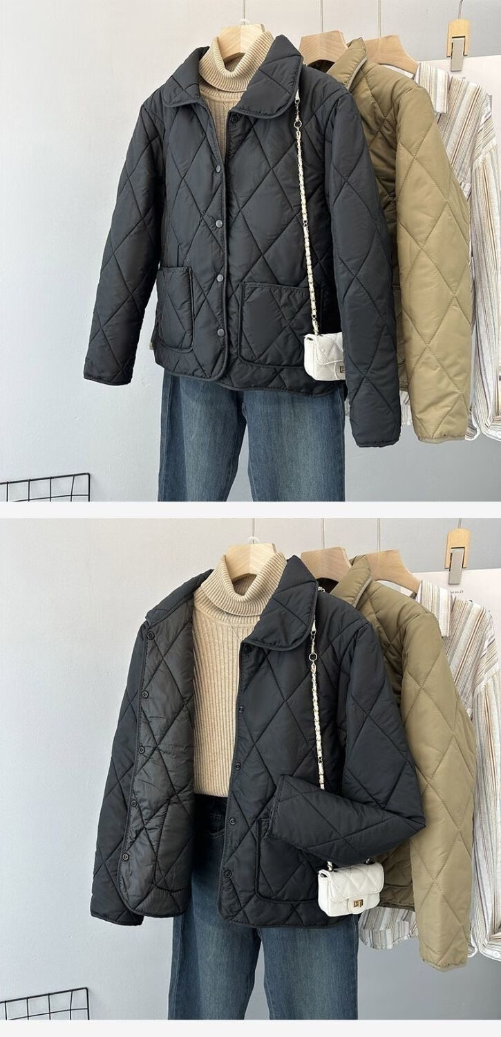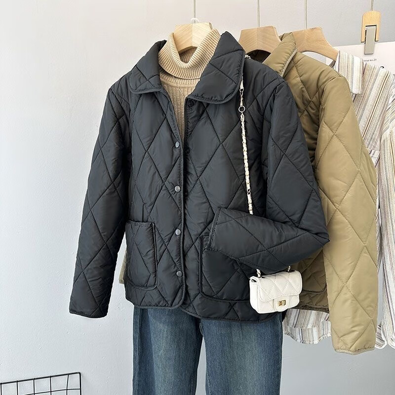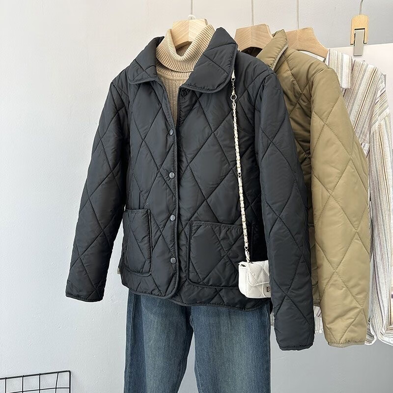 春秋季轻薄款女士新款小棉袄短款纯色翻领薄款外套棉衣女百搭棉服 卡其 3XL 建议110-125斤
