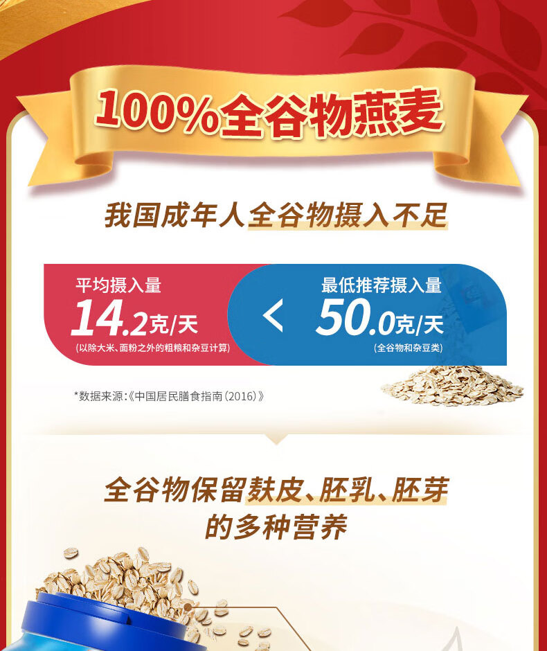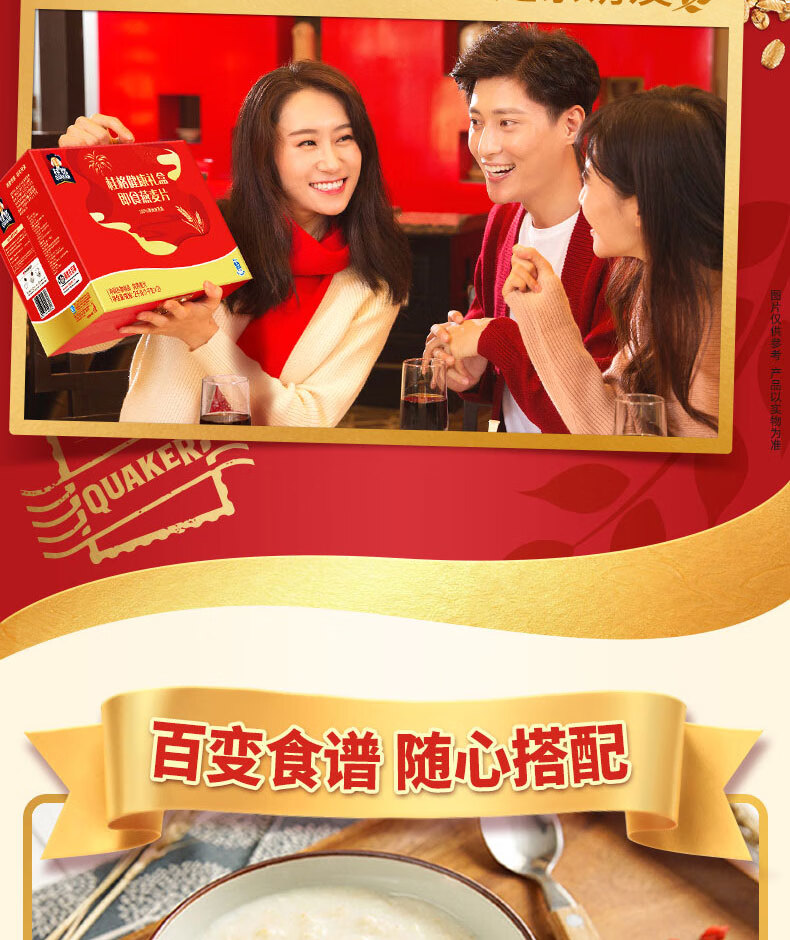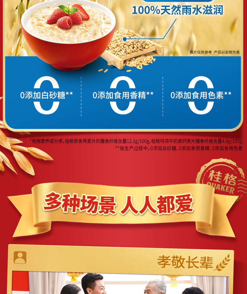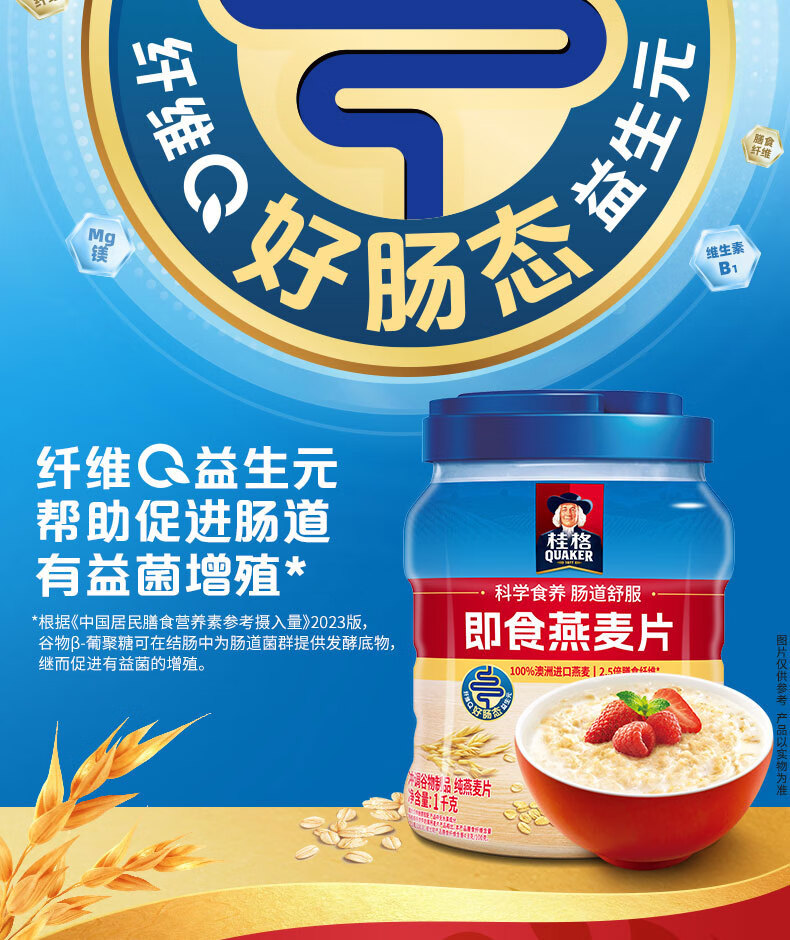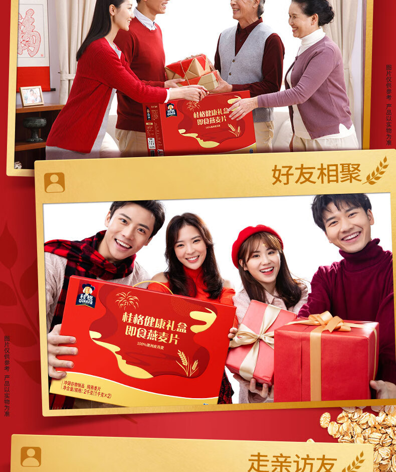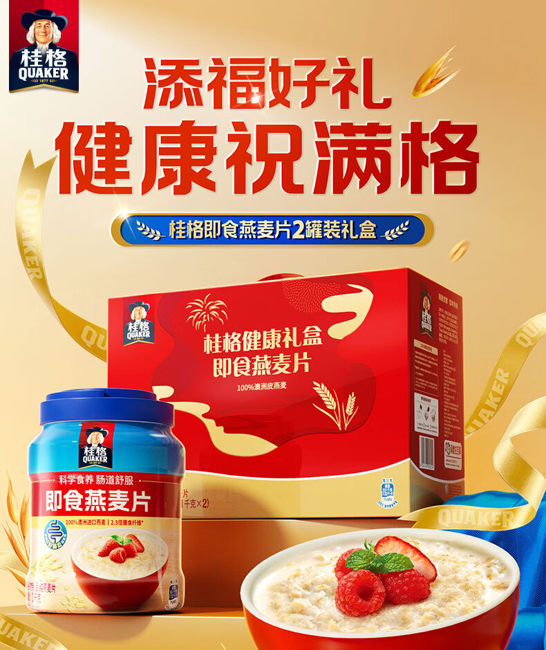 桂格即食燕麦片礼盒1000克*2营养早餐膳食纤新春年货送礼送长辈中老年