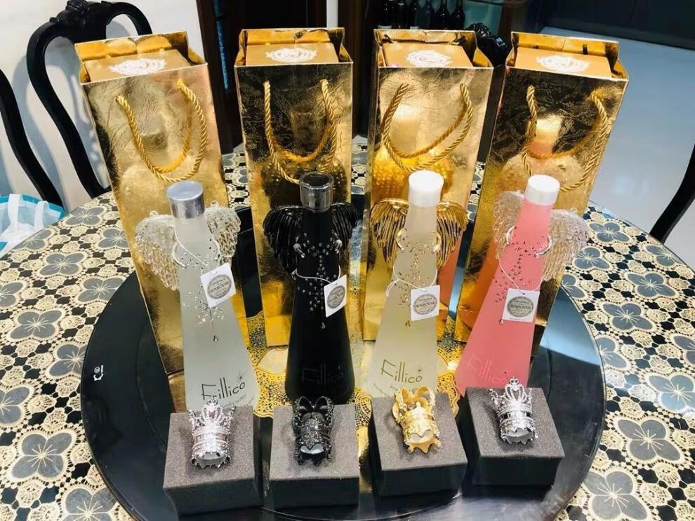 菲丽高神户矿泉水 约会送女友 菲丽高皇冠高端水瓶网红潮人工艺品 天使之翼银色