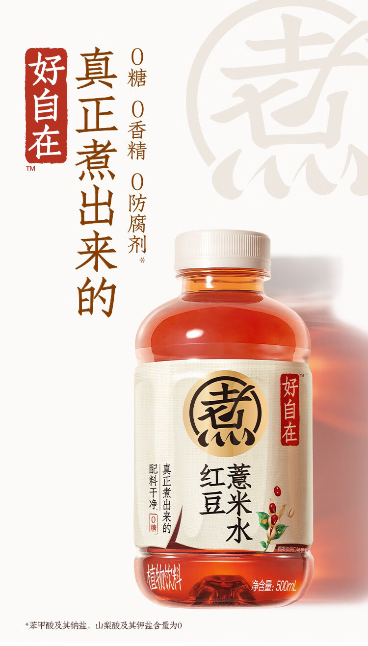 元气森林【好自在】 红豆薏米水 500mL*12瓶装整箱 (新老包装随机发货)