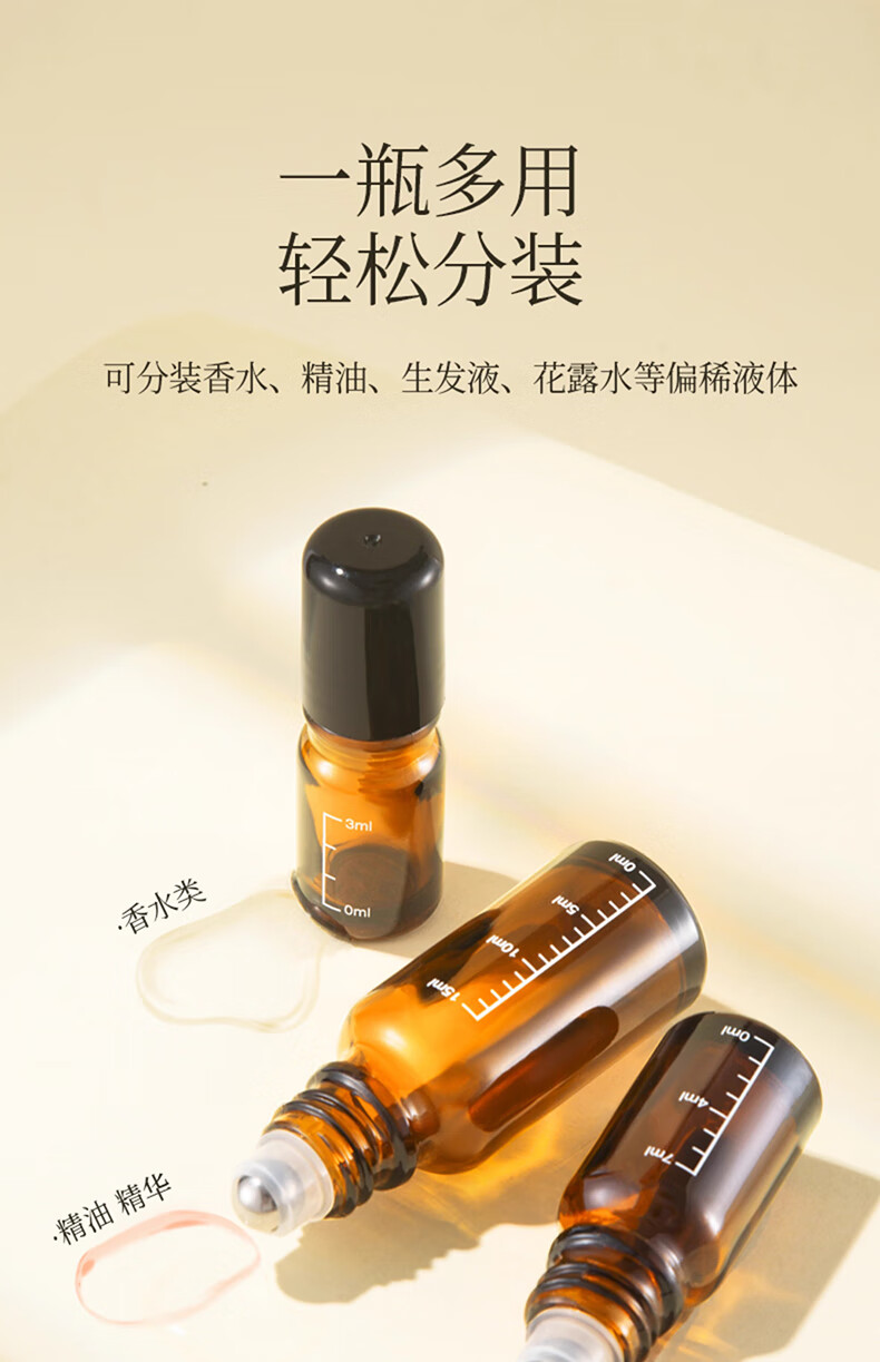 格蒙滚珠分装瓶走珠上药器避光精油瓶香水分装瓶玻璃空药酒瓶子