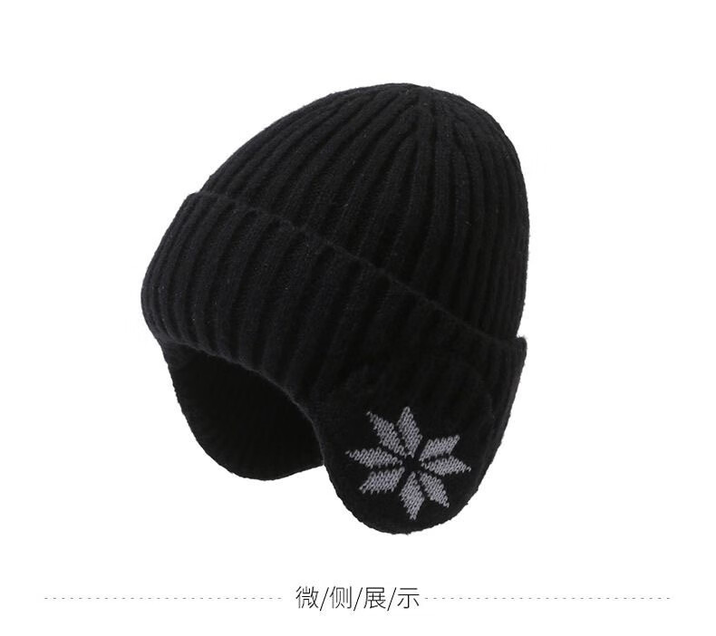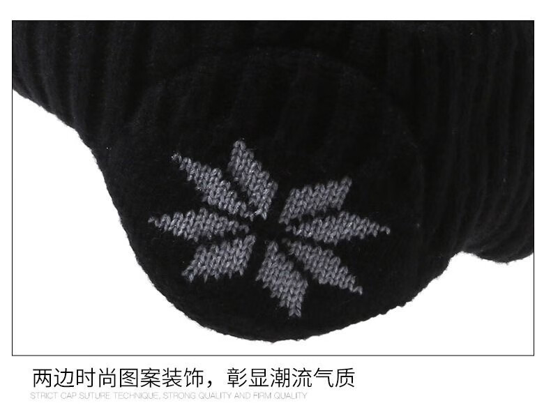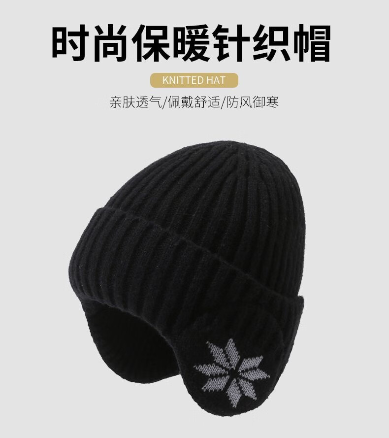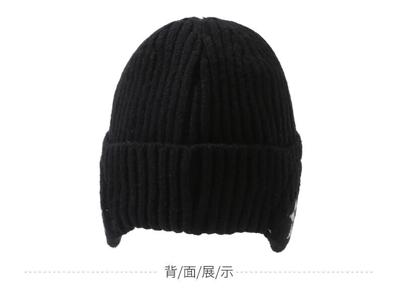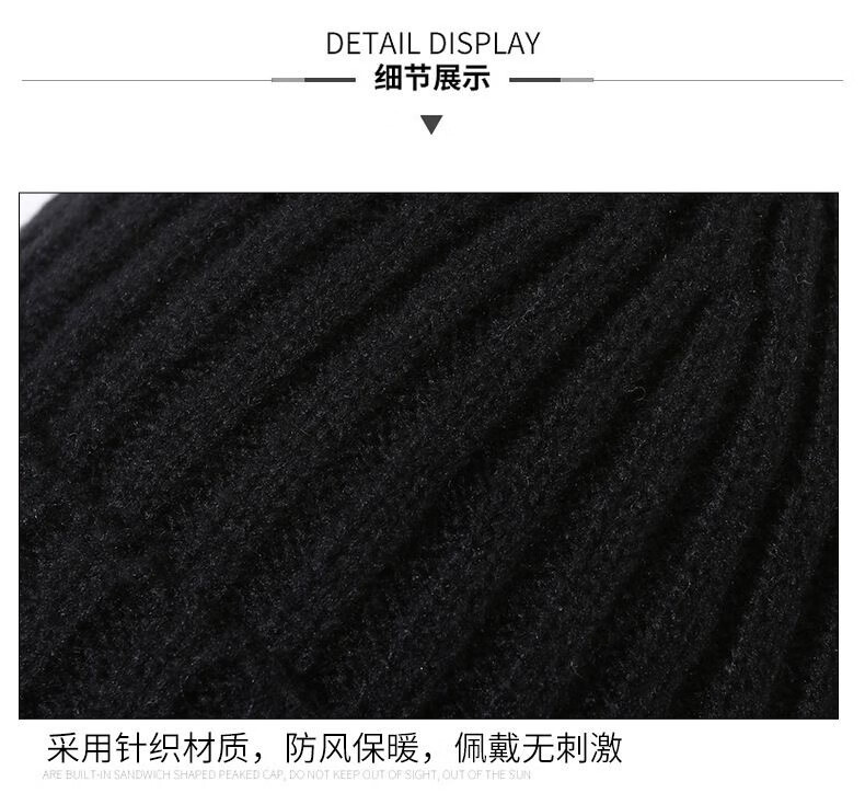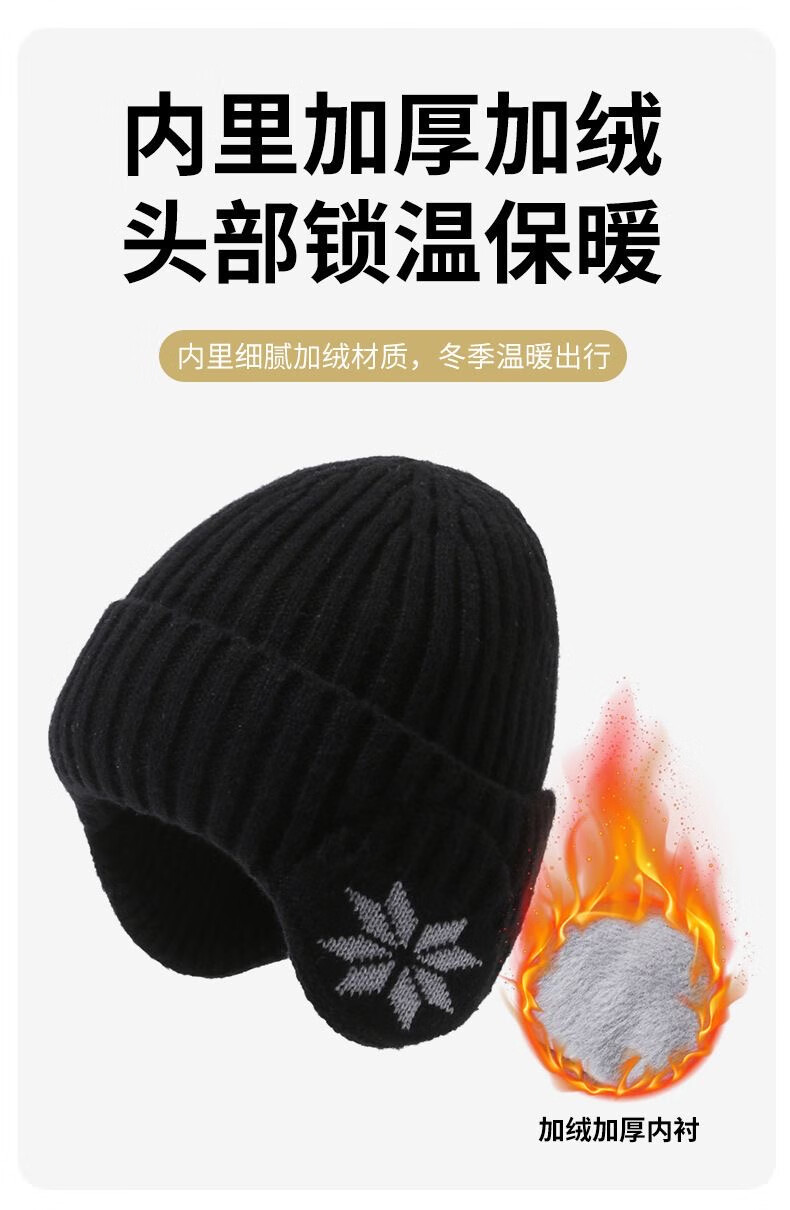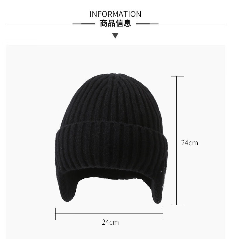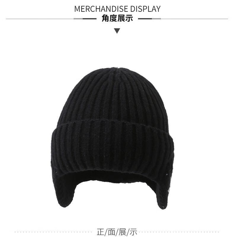 加绒帽子男女毛线护耳帽骑车防风包头帽户外保暖秋冬季弹力针织帽 护耳帽-藏青色-1个