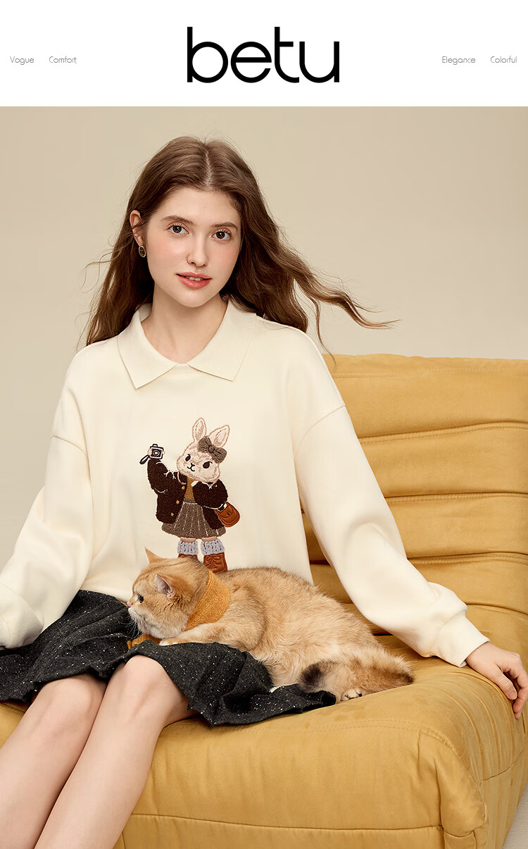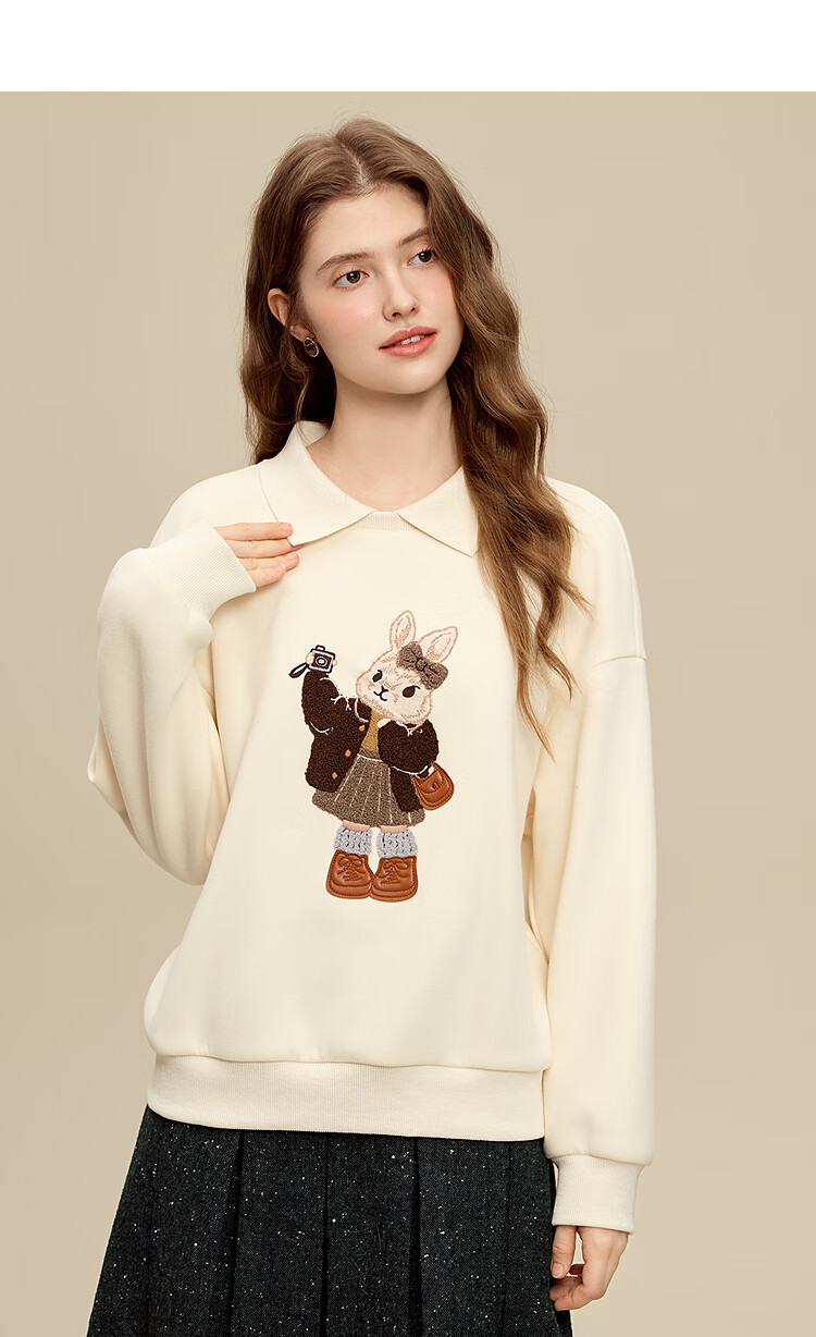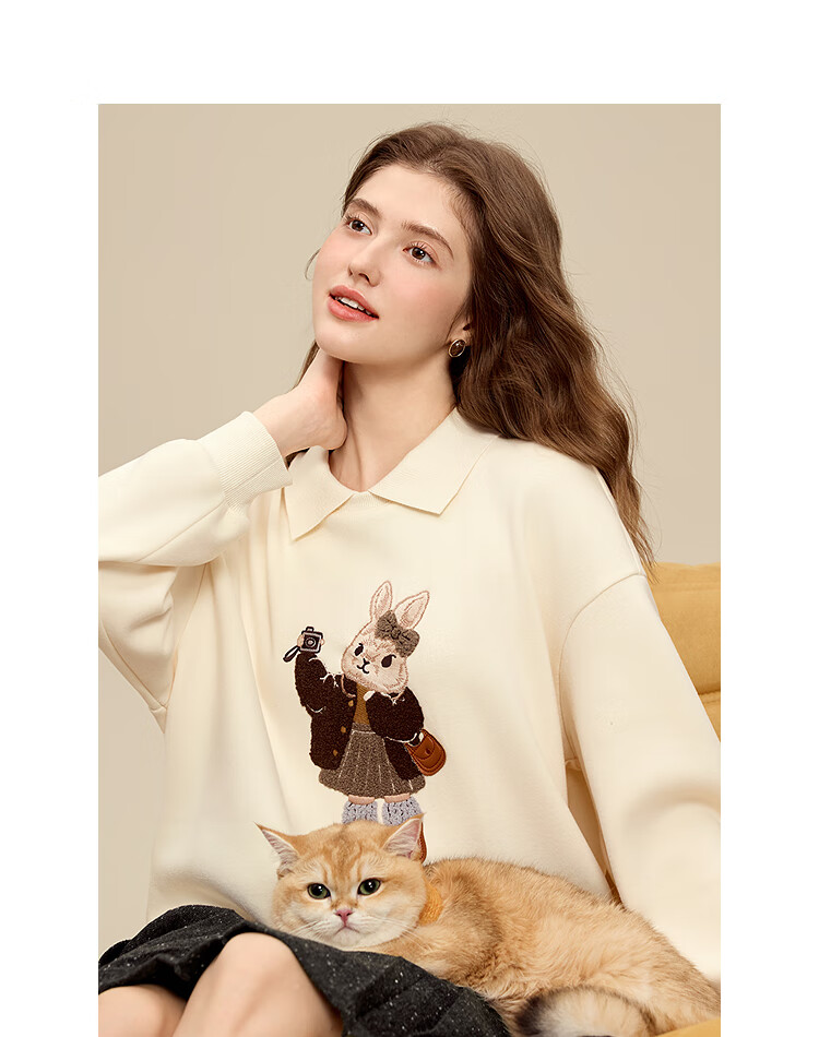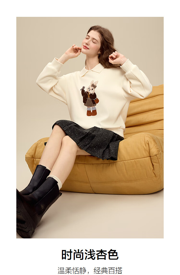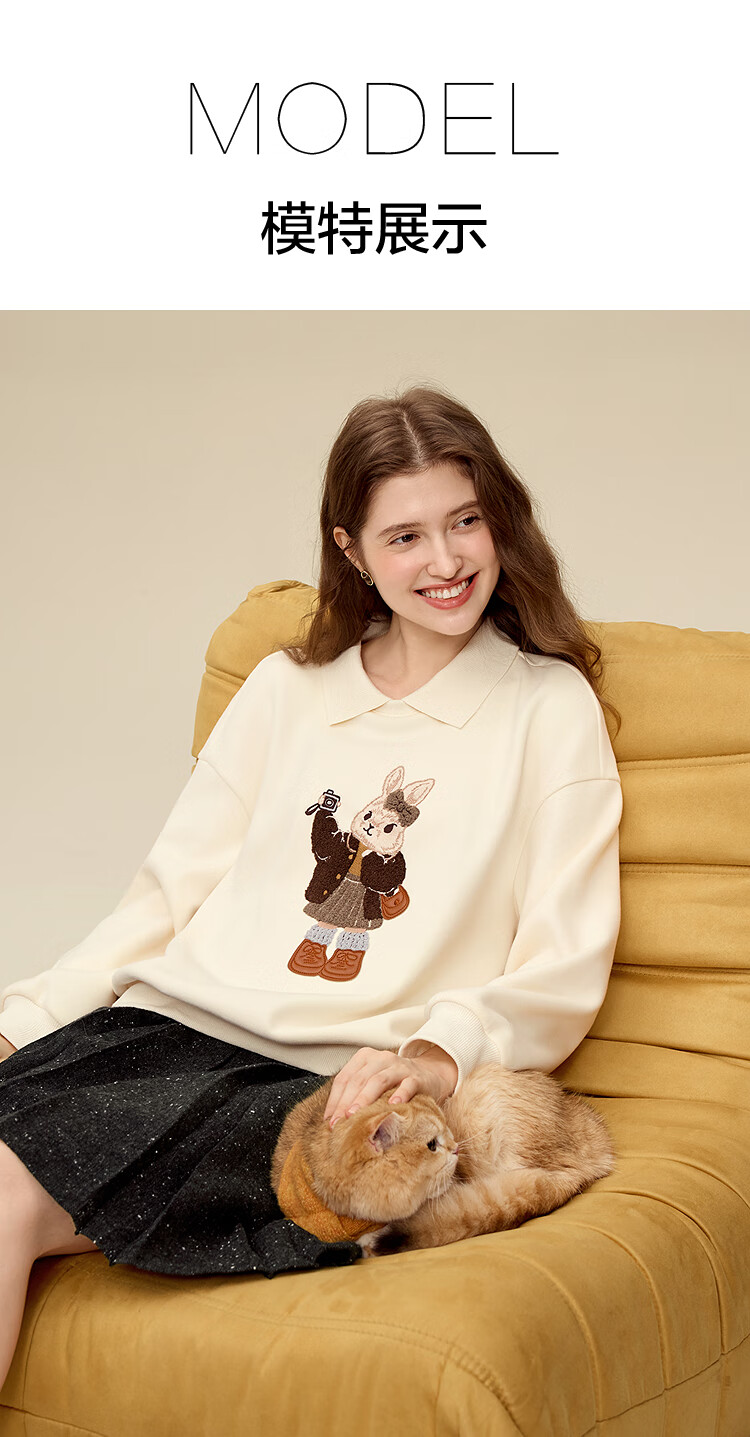 百图(betu)女装2025年冬季新款卫衣翻领设计意趣萌宠潮流休闲风上衣2511T82 浅杏色 M