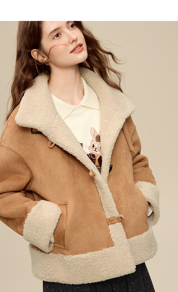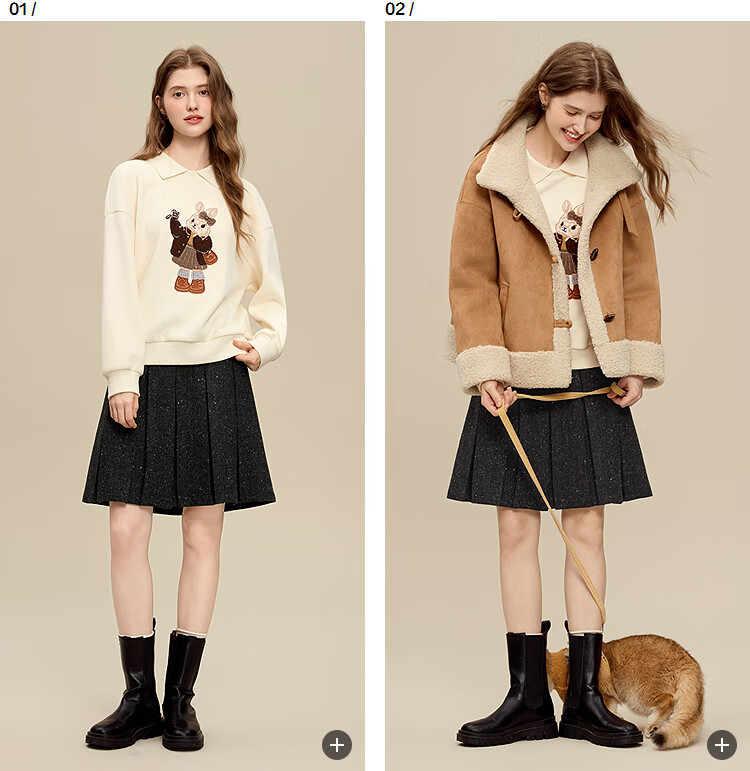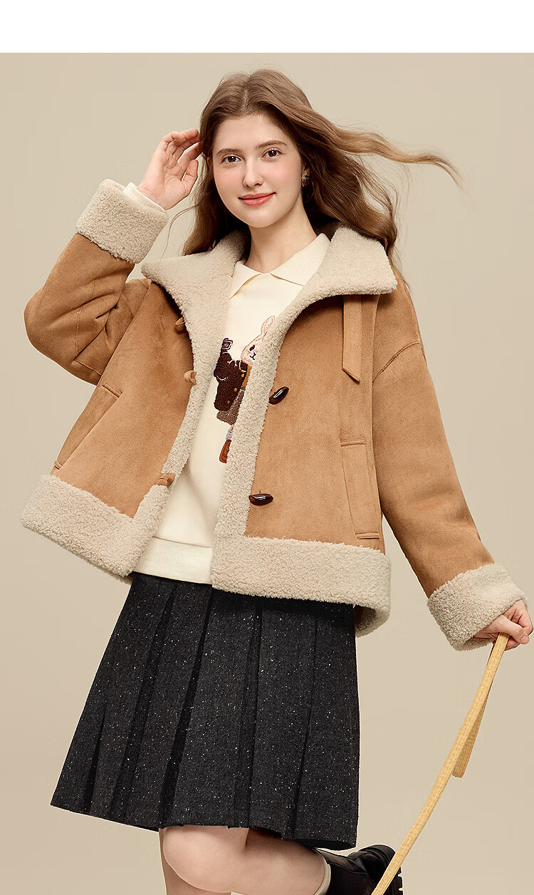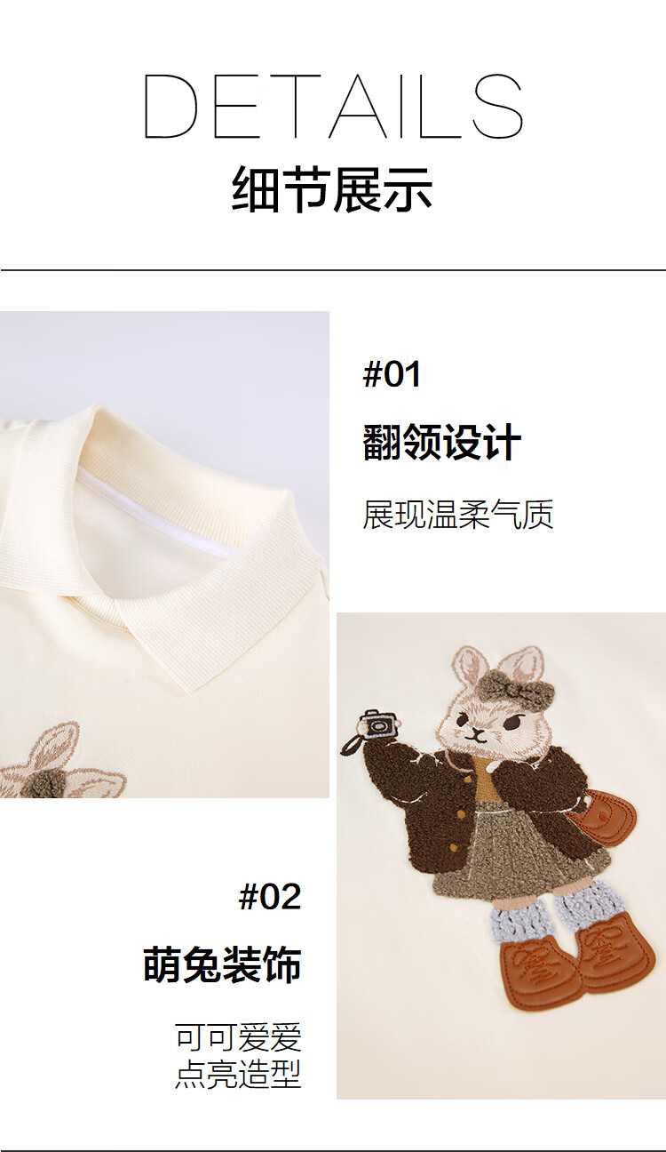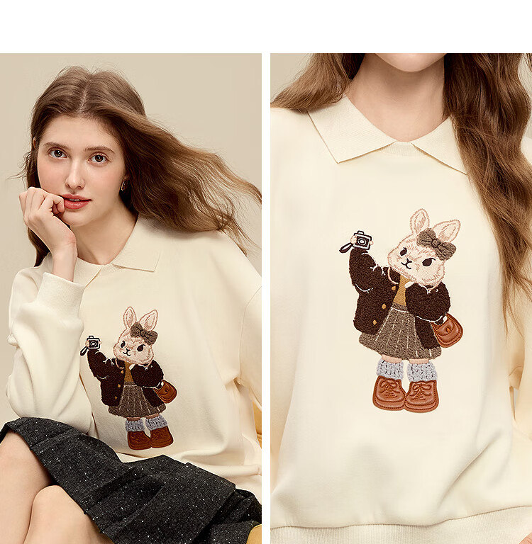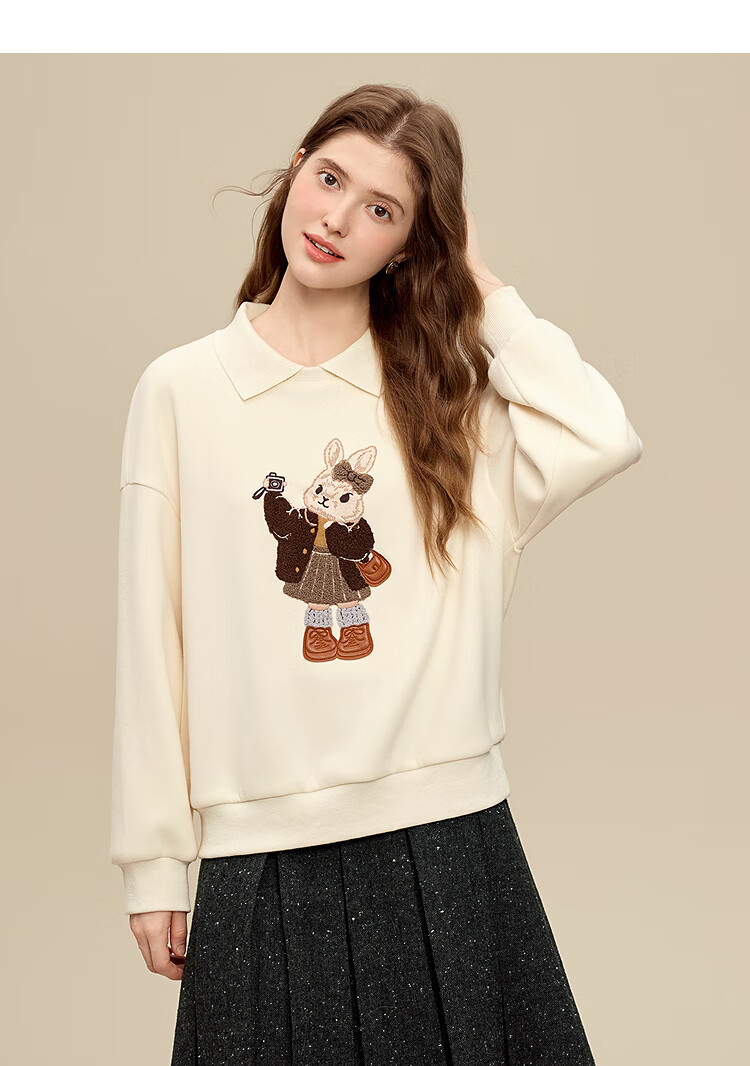 百图(betu)女装2025年冬季新款卫衣翻领设计意趣萌宠潮流休闲风上衣2511T82 浅杏色 M