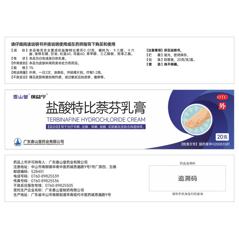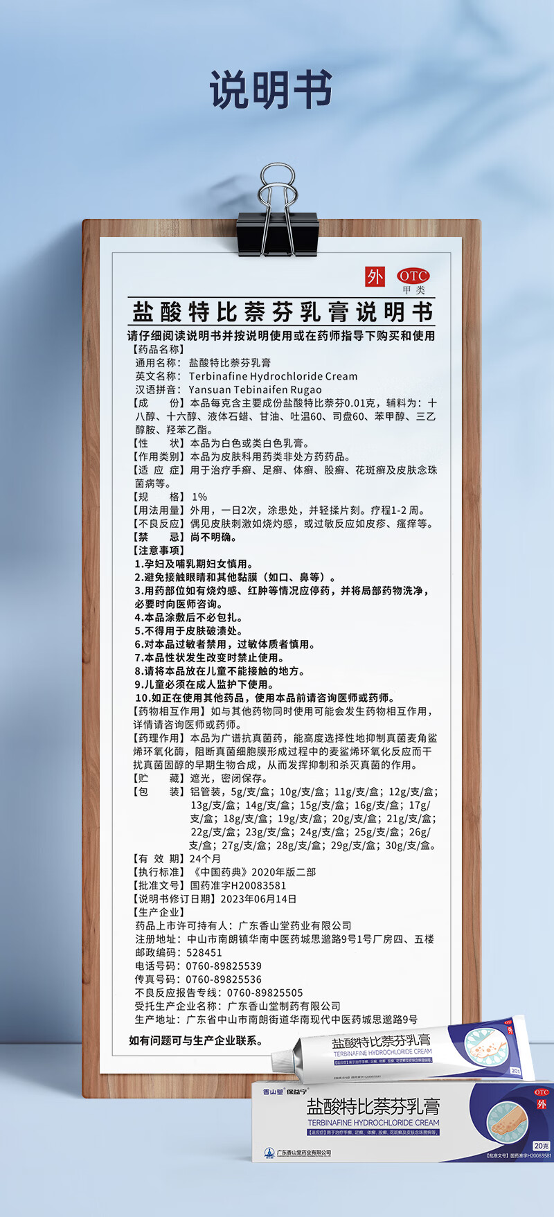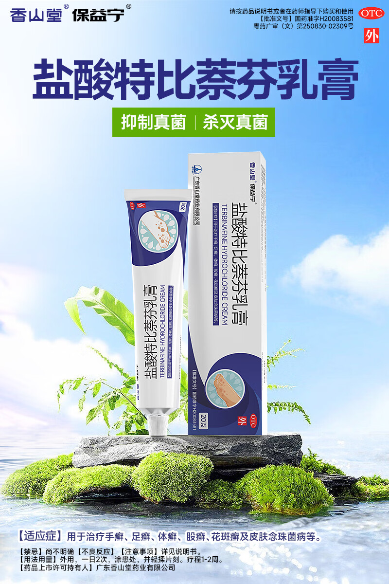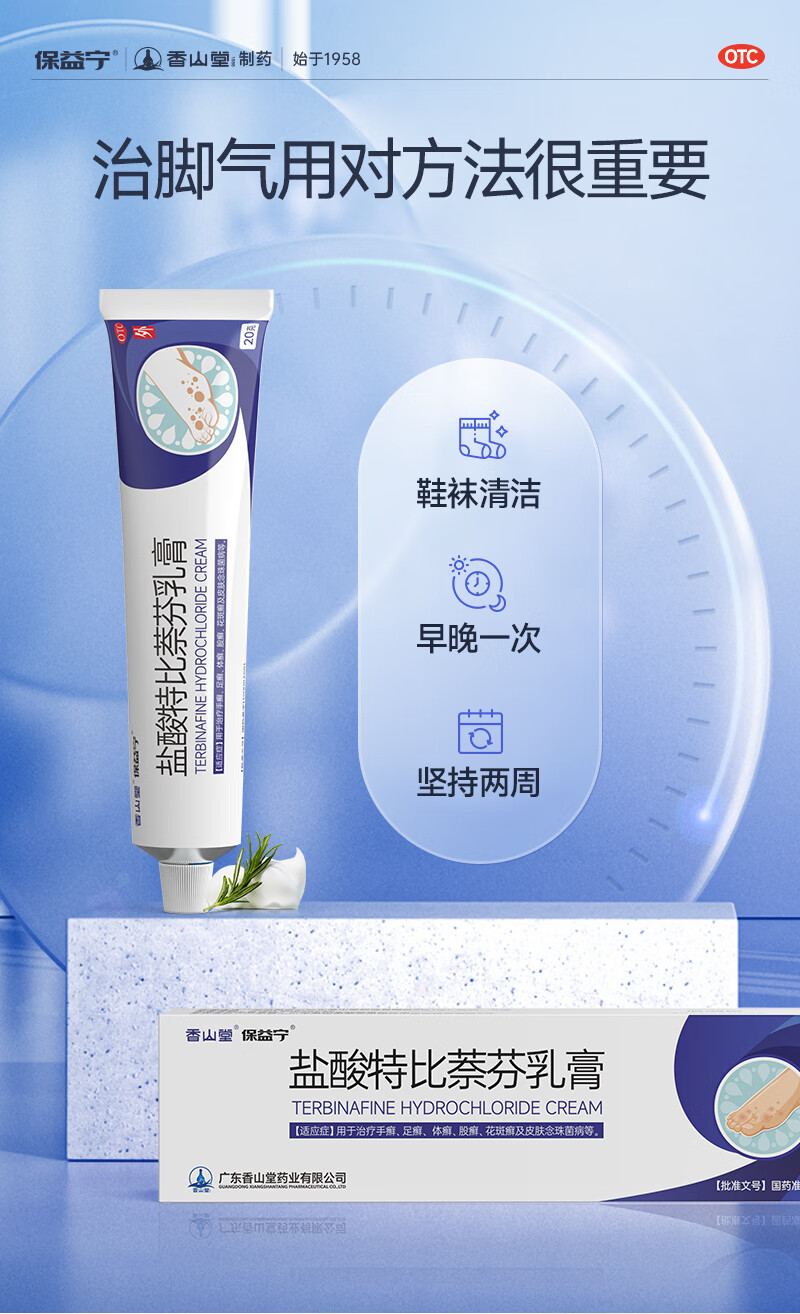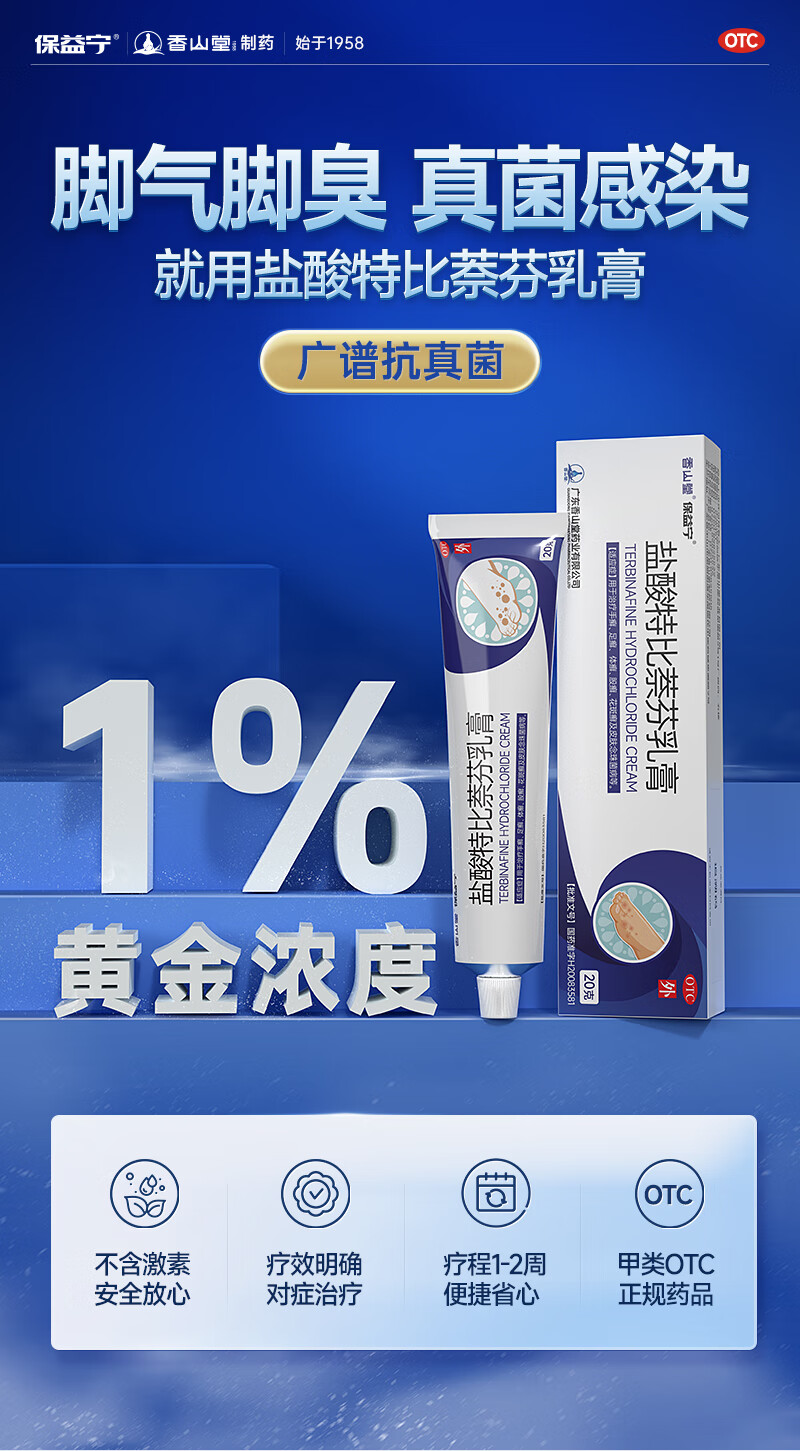 保益宁盐酸特比萘芬乳膏1%*20g治脚气药正品软膏止痒脱皮烂脚丫抗真菌感染软膏抑菌杀菌京东自营