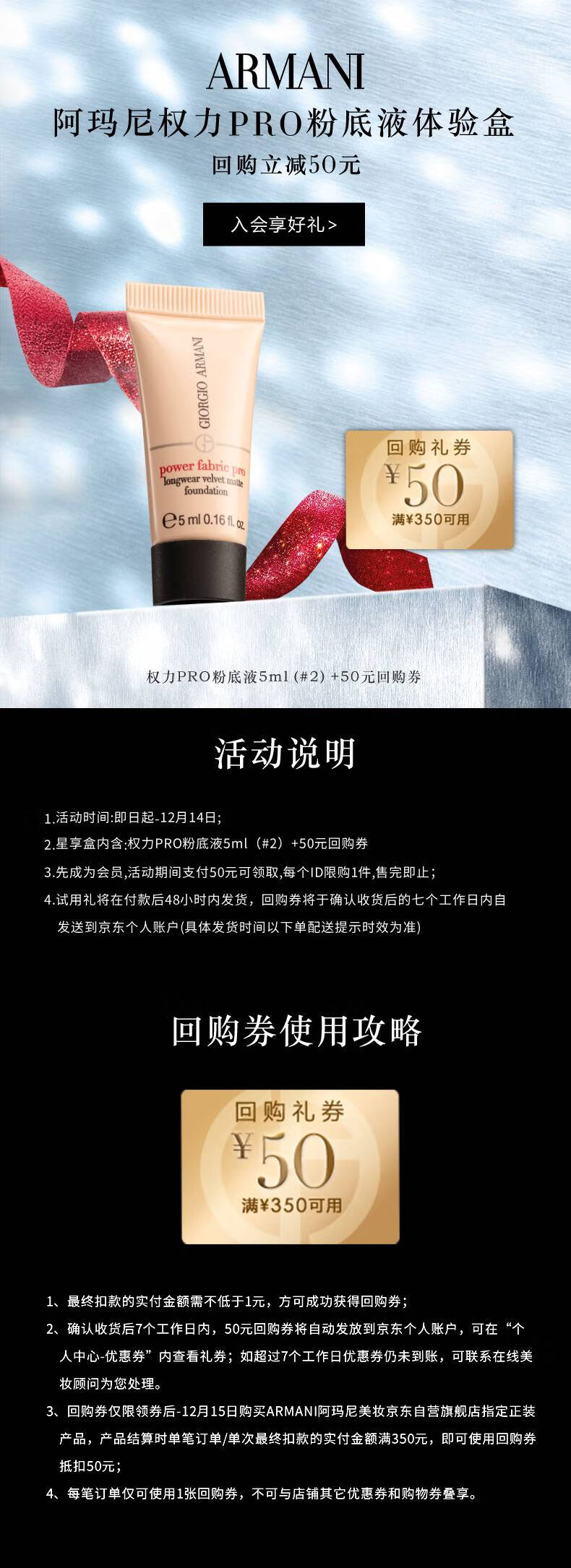 阿玛尼权力PRO粉底液体验礼(权力PRO粉底液5ml #2)享大额回购券