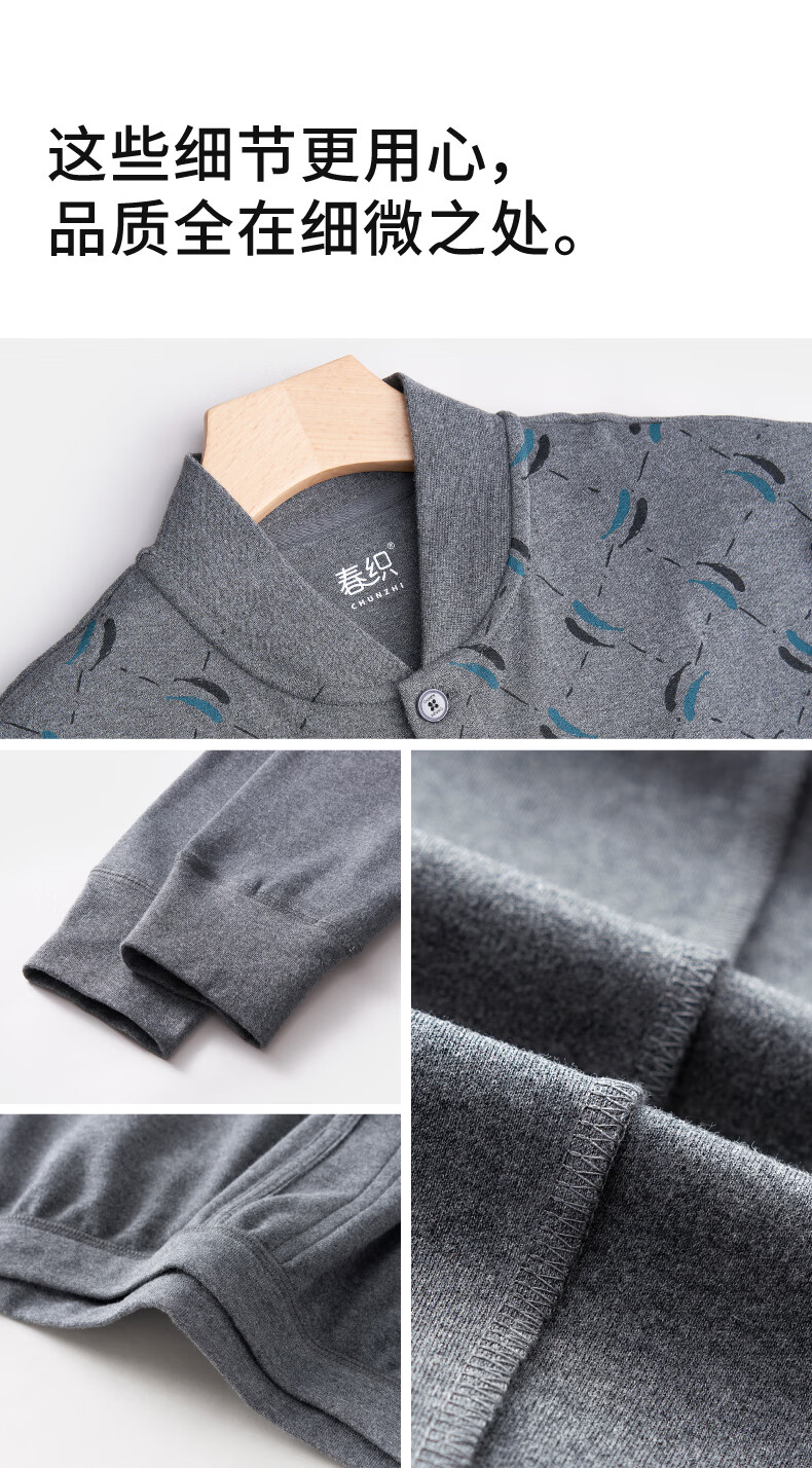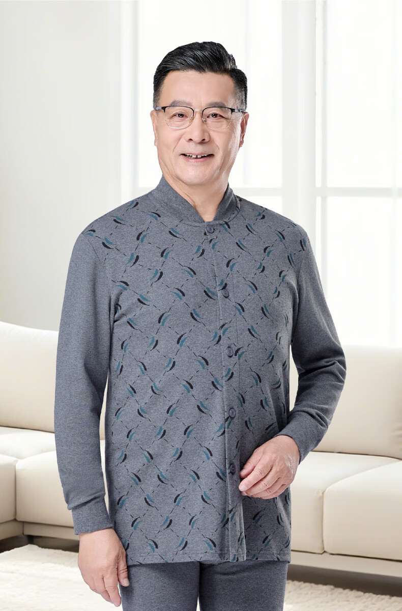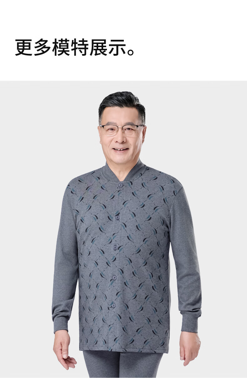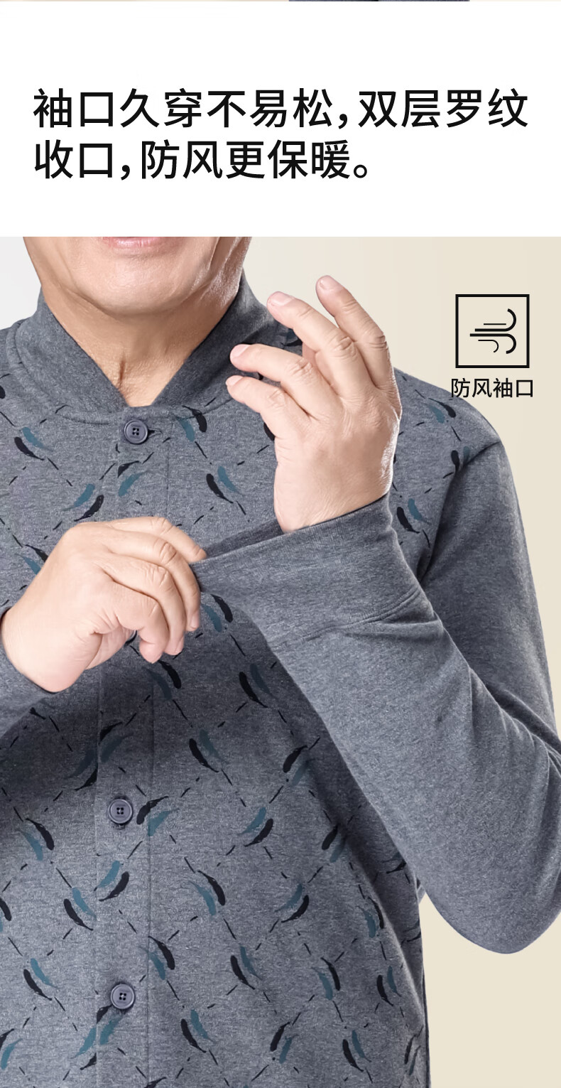 春织中老年人男士纯棉开衫保暖内衣秋衣秋裤爸爸加厚老头秋冬季棉毛衫 麻灰纯色-上衣 宽松柔软 XL 115斤-130斤