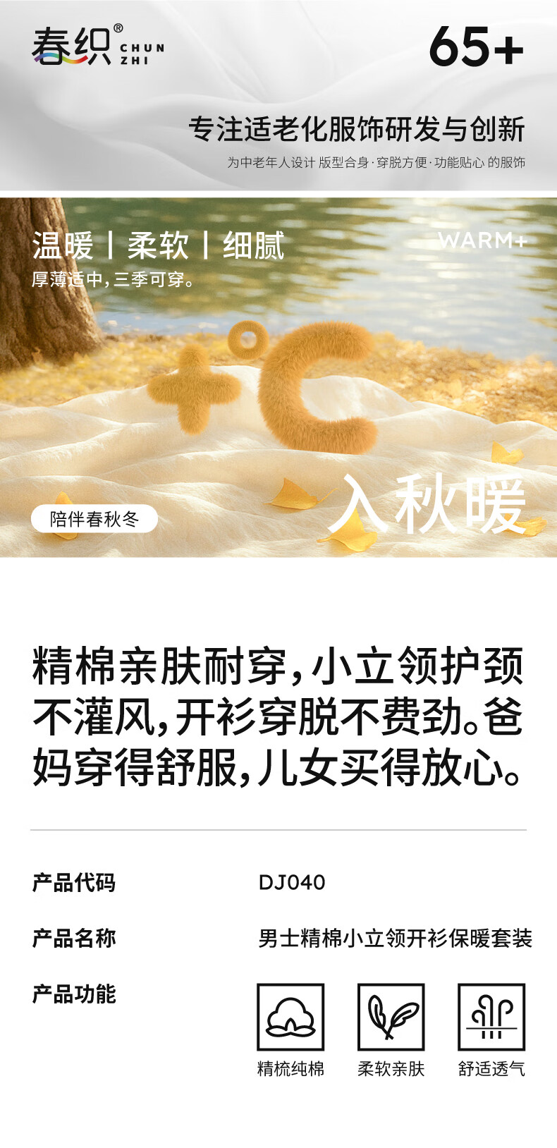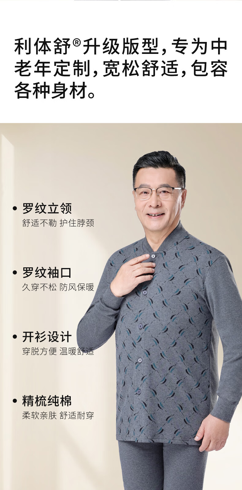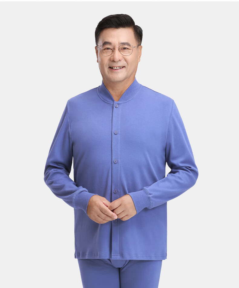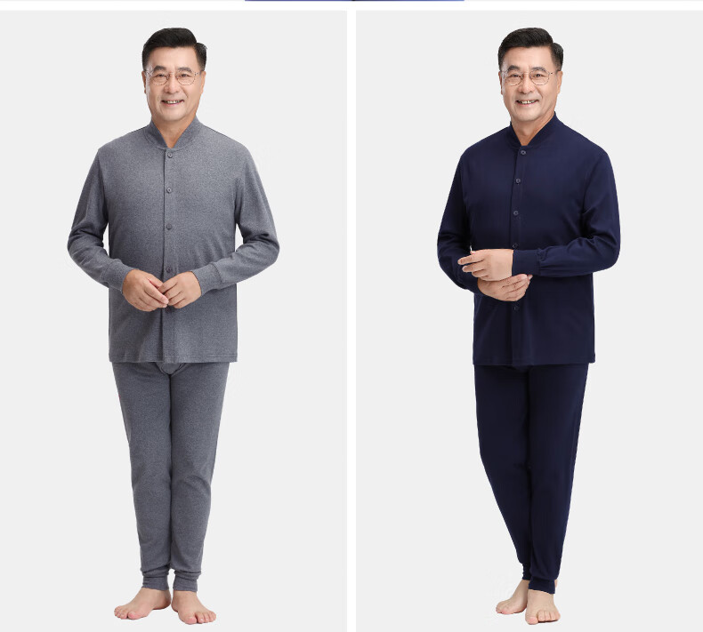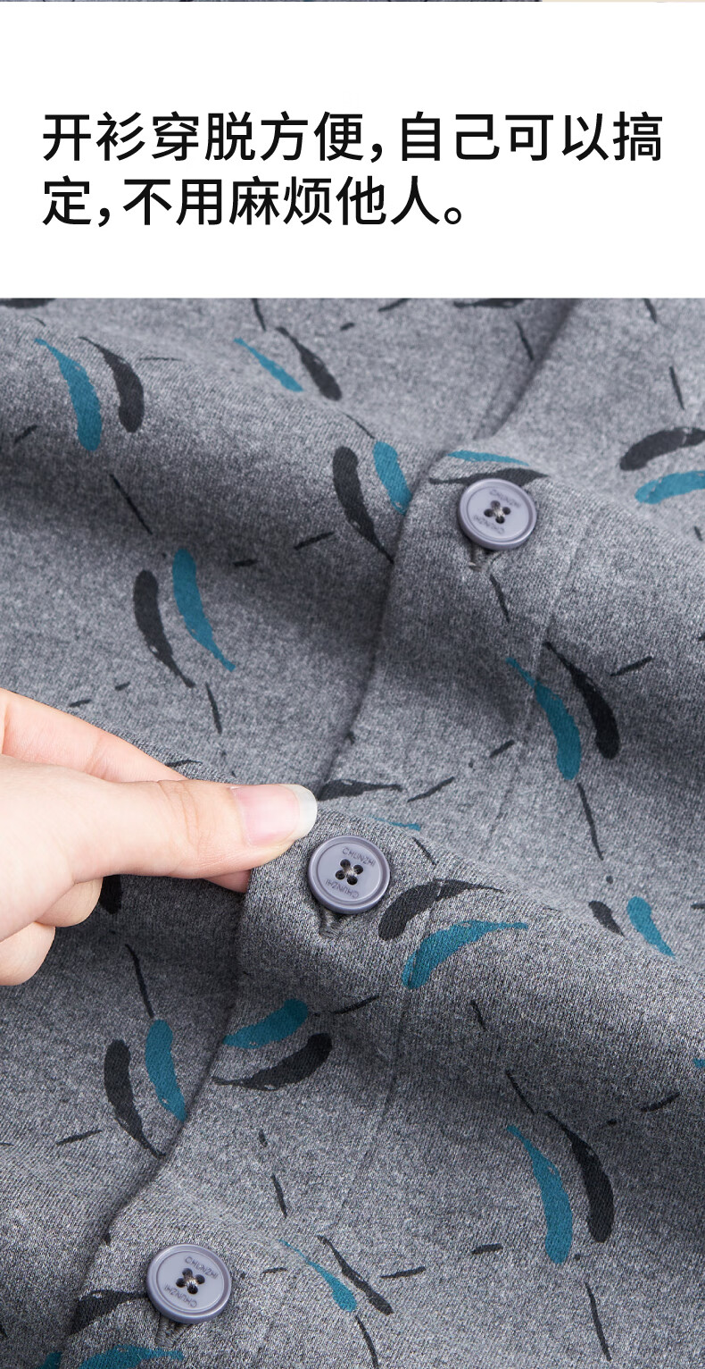 春织中老年人男士纯棉开衫保暖内衣秋衣秋裤爸爸加厚老头秋冬季棉毛衫 麻灰纯色-上衣 宽松柔软 XL 115斤-130斤