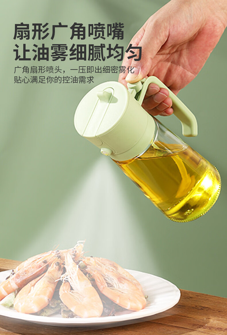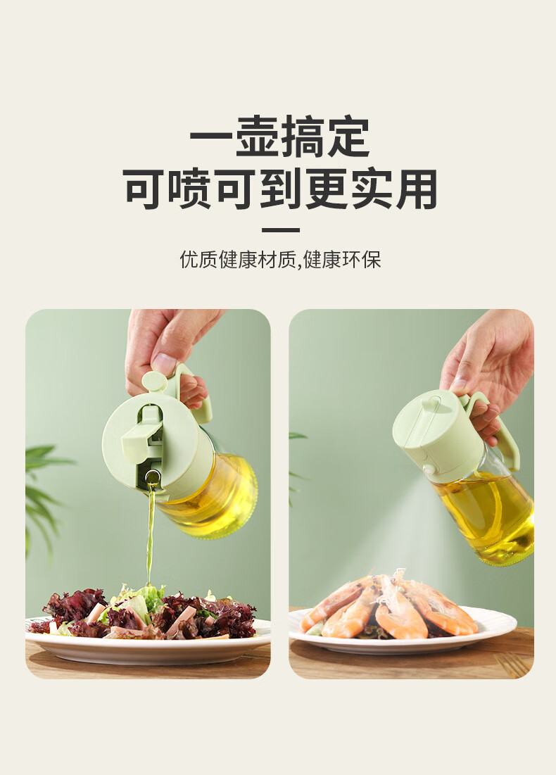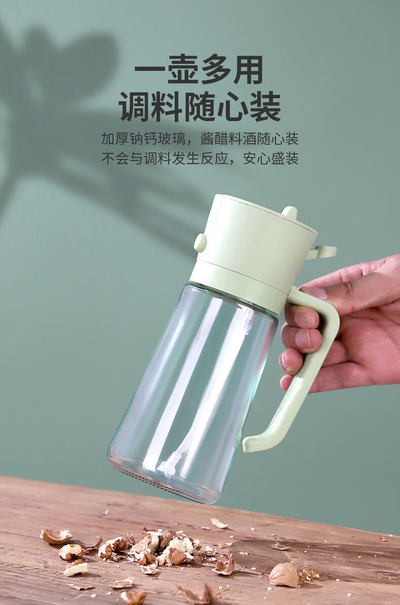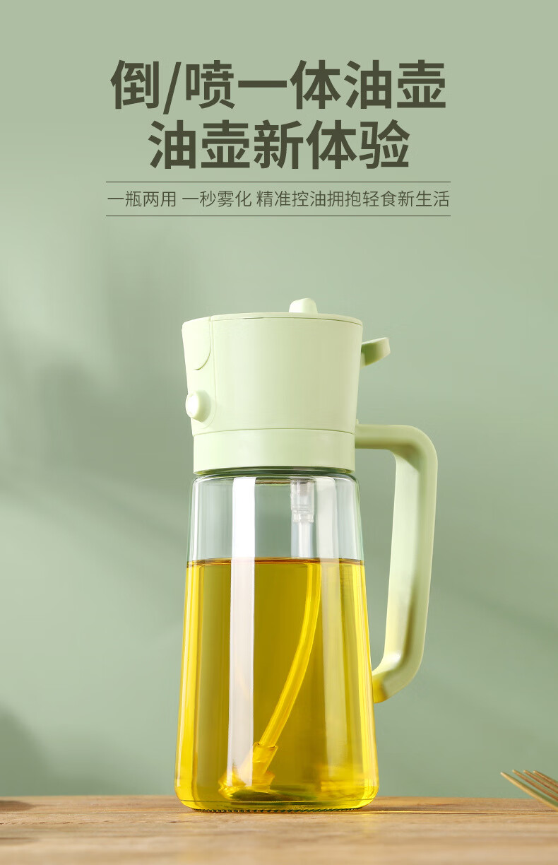 精居坊玻璃瓶油壶不挂油两用按压喷雾油瓶多功能调料油罐喷倒一体油壶 喷倒两用油壶470ml【清新绿】