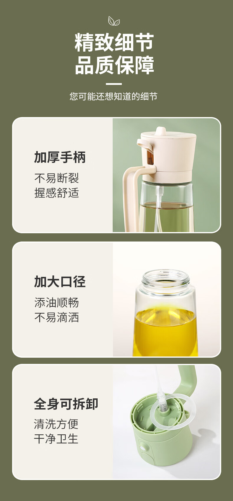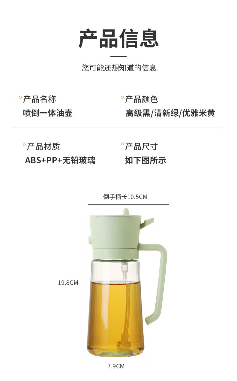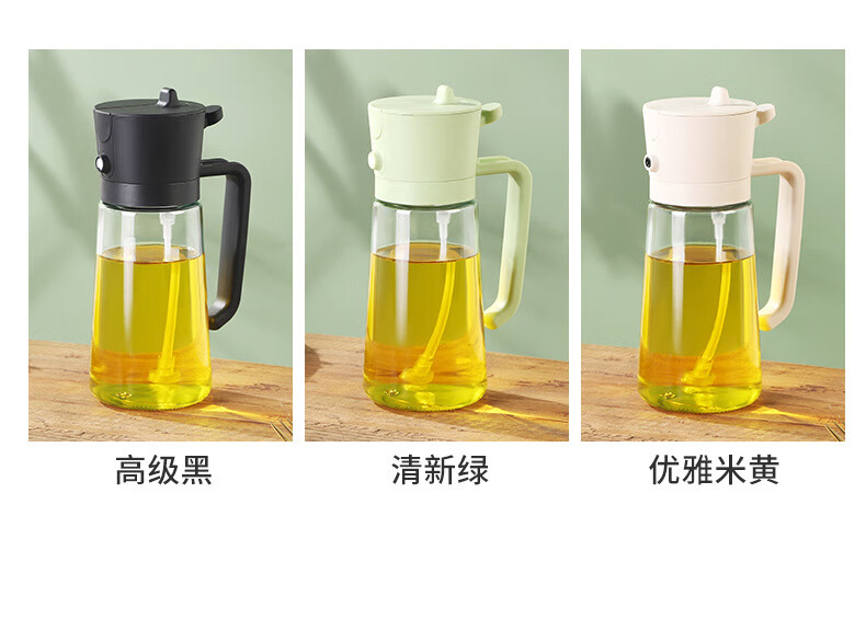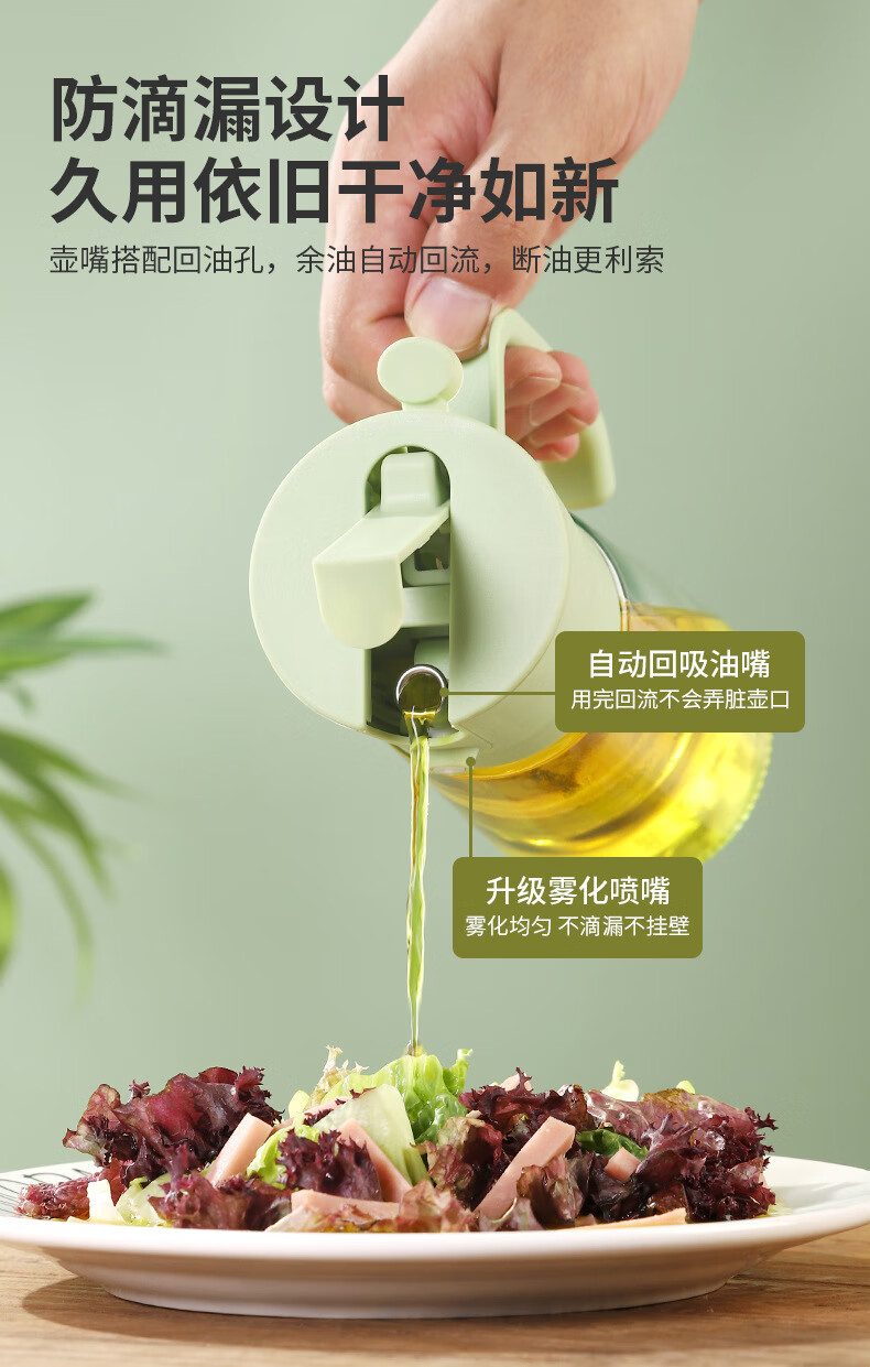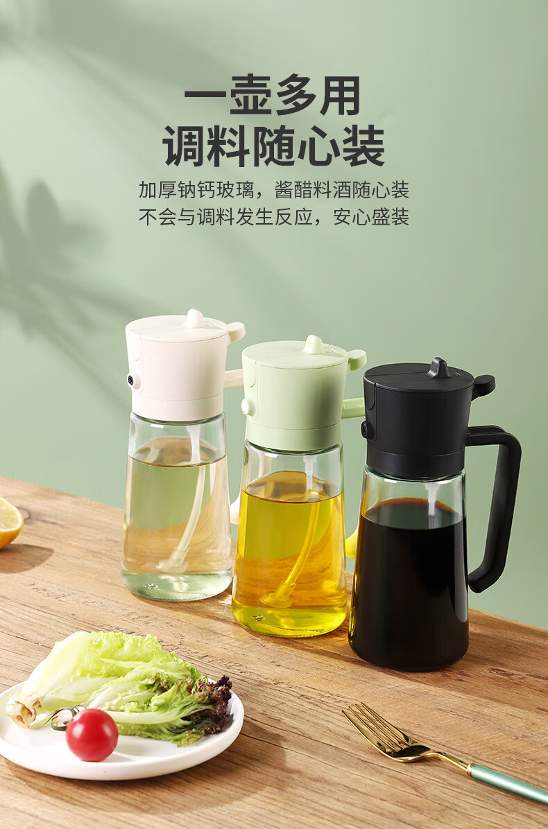 精居坊玻璃瓶油壶不挂油两用按压喷雾油瓶多功能调料油罐喷倒一体油壶 喷倒两用油壶470ml【清新绿】