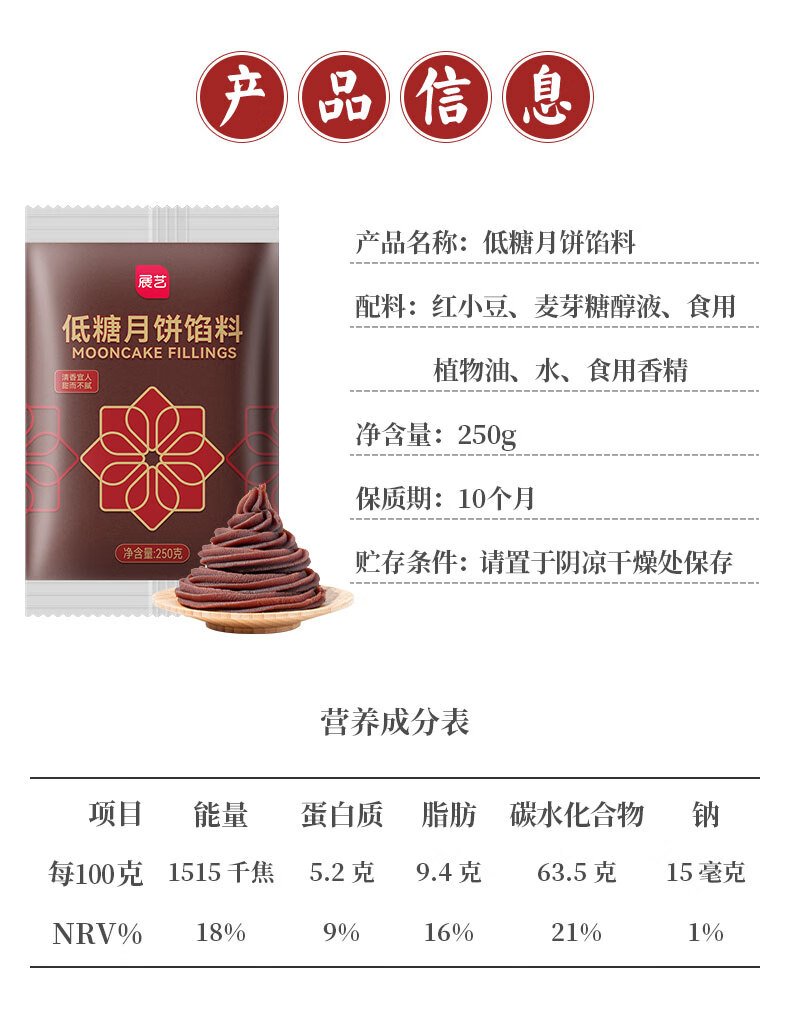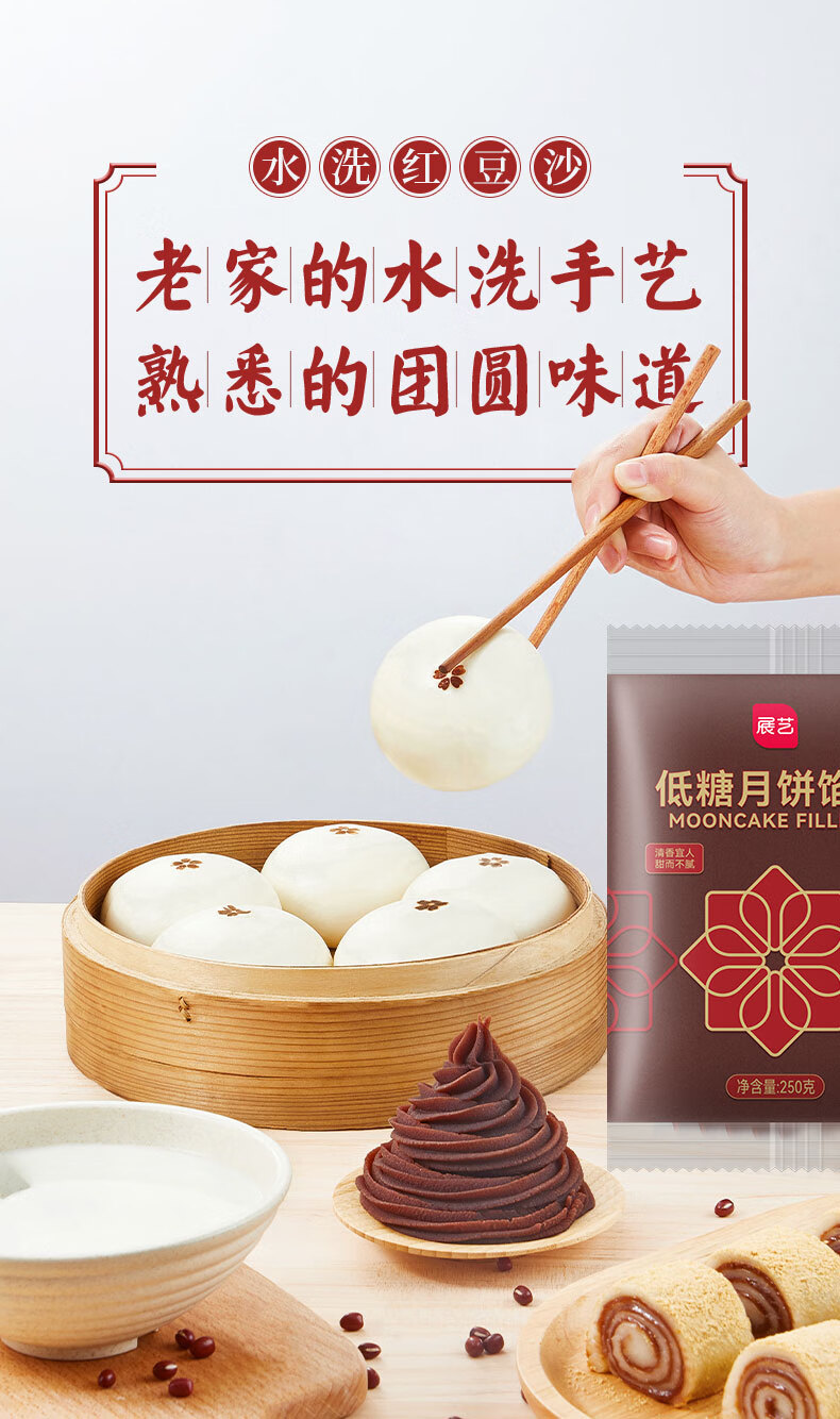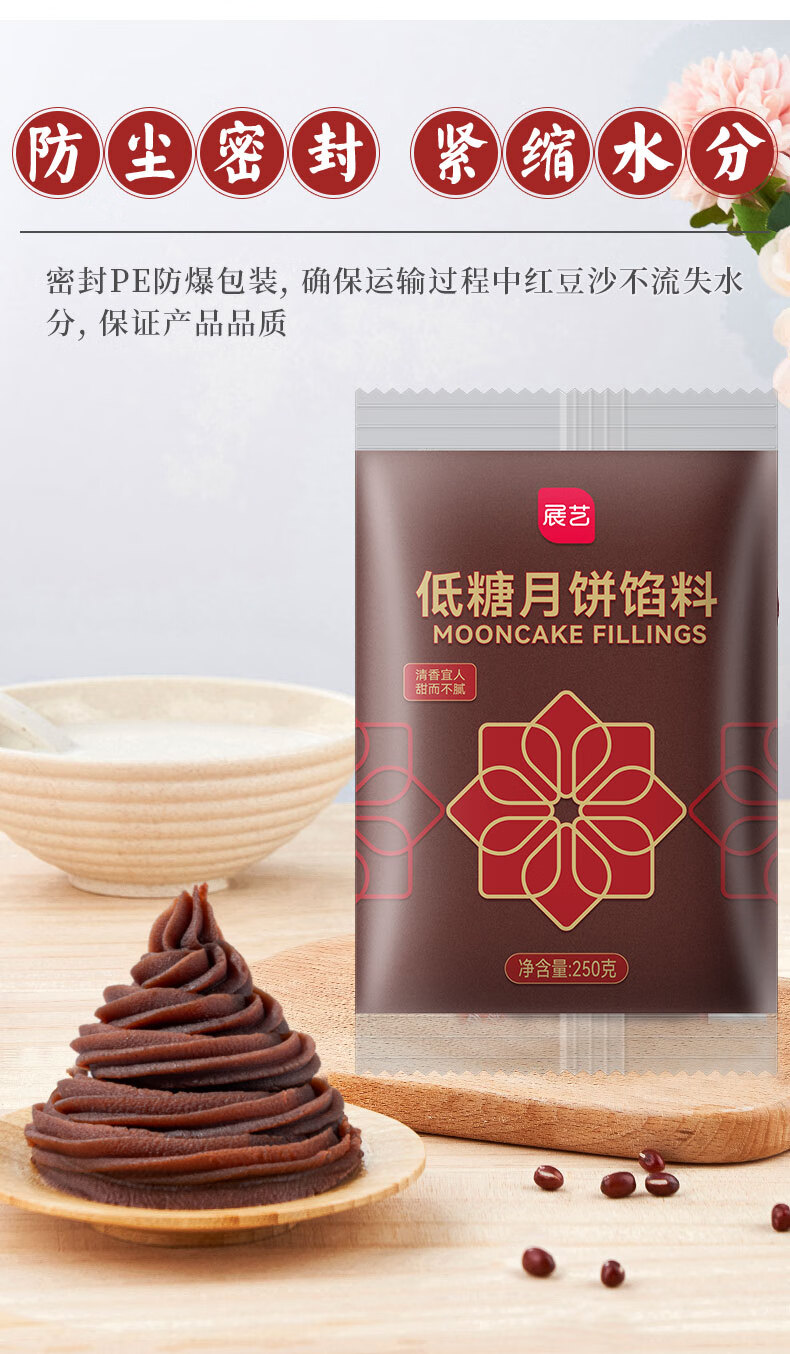 展艺馅料低甜水洗红豆沙莲蓉馅料粽子汤圆元宵包子面包蛋黄酥 低糖红豆沙【油性】 250g*1袋