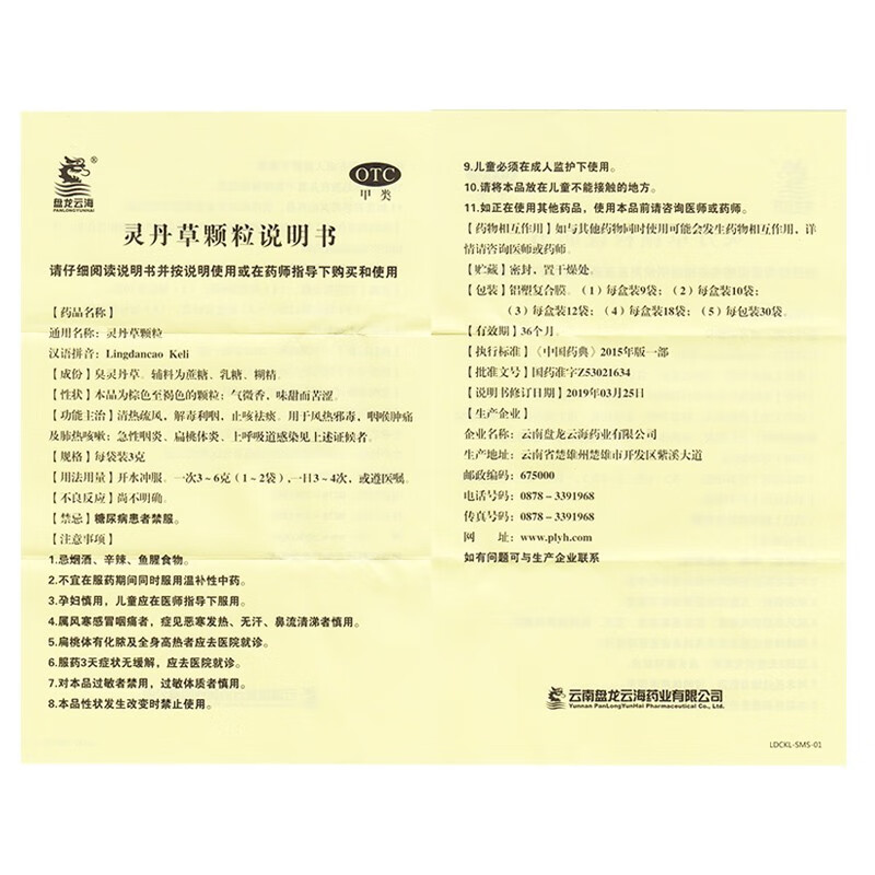 【当日发货】盘龙云海 灵丹草颗粒 3g*12袋/盒 清热疏风 解毒利咽 止咳祛痰 3盒装