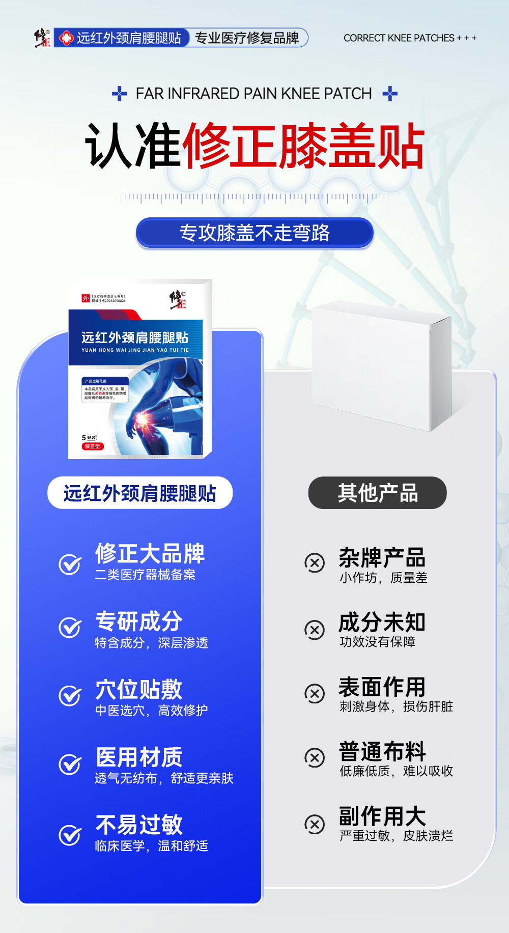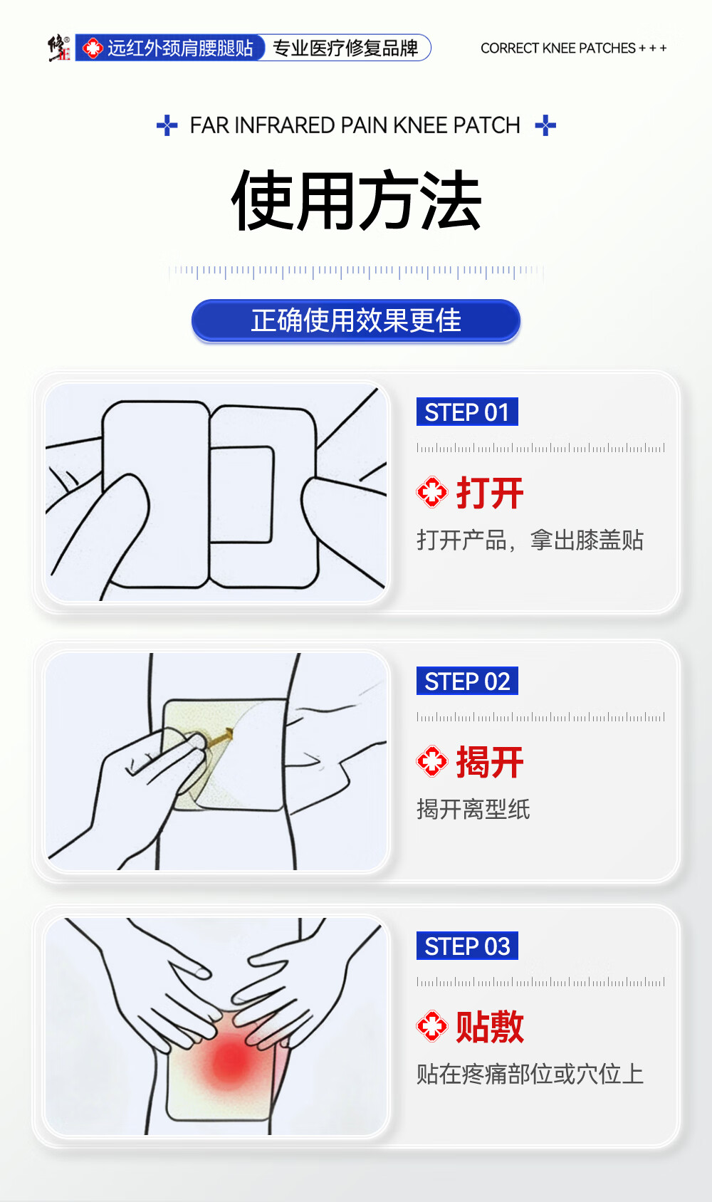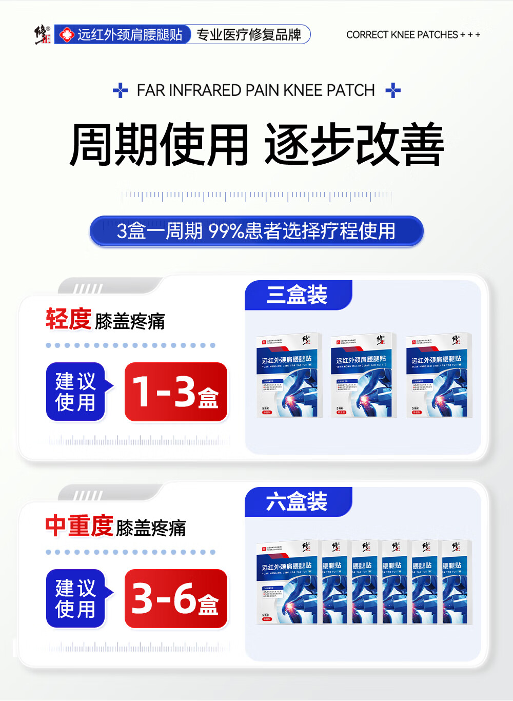 修正远红外治疗贴膝盖软骨疼痛关节滑膜痛风性关节炎半月板损伤膏贴 3盒周期装装(97%顾客选择)