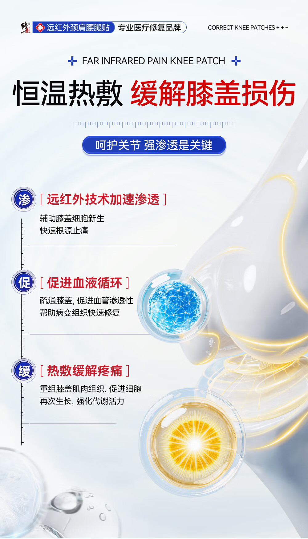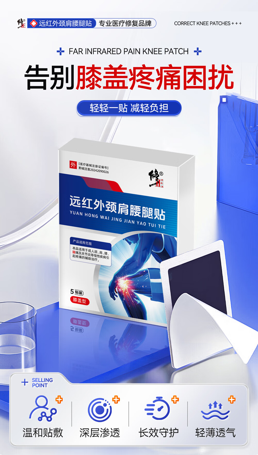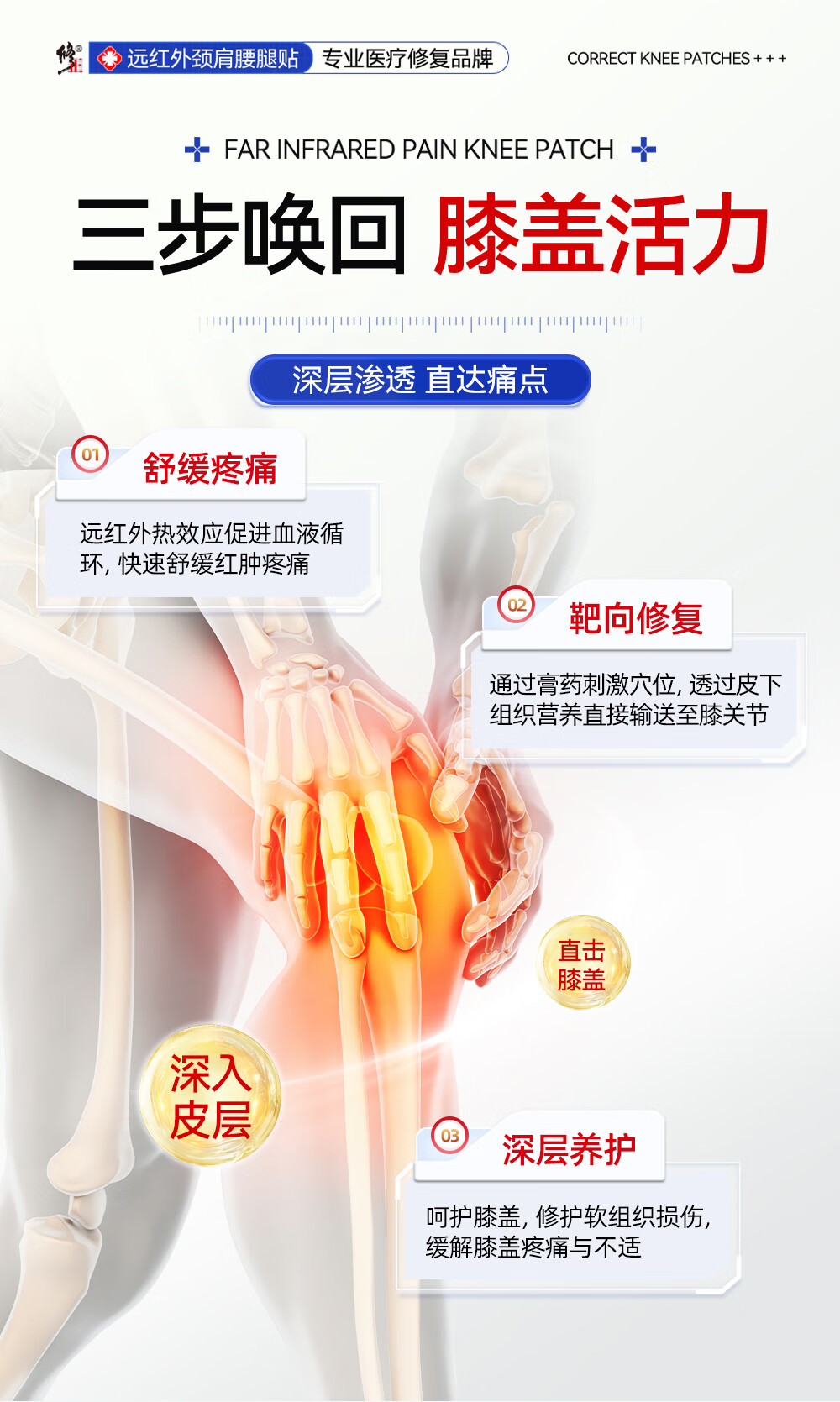 修正远红外治疗贴膝盖软骨疼痛关节滑膜痛风性关节炎半月板损伤膏贴 3盒周期装装(97%顾客选择)