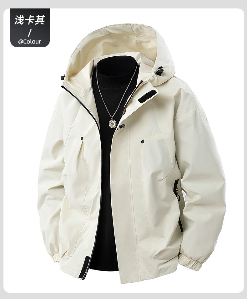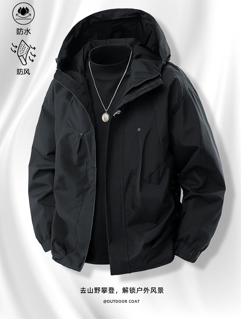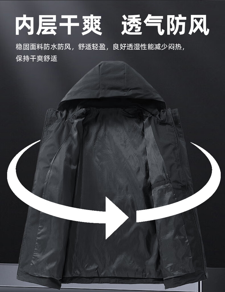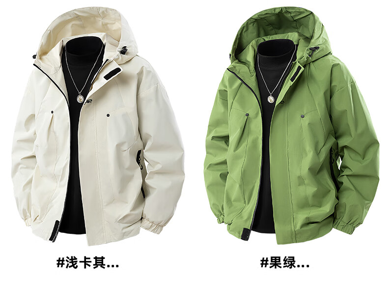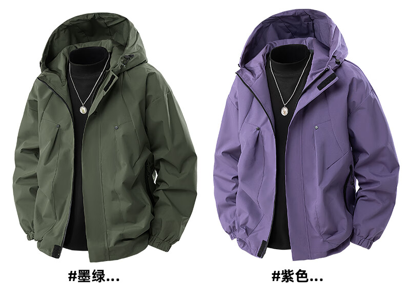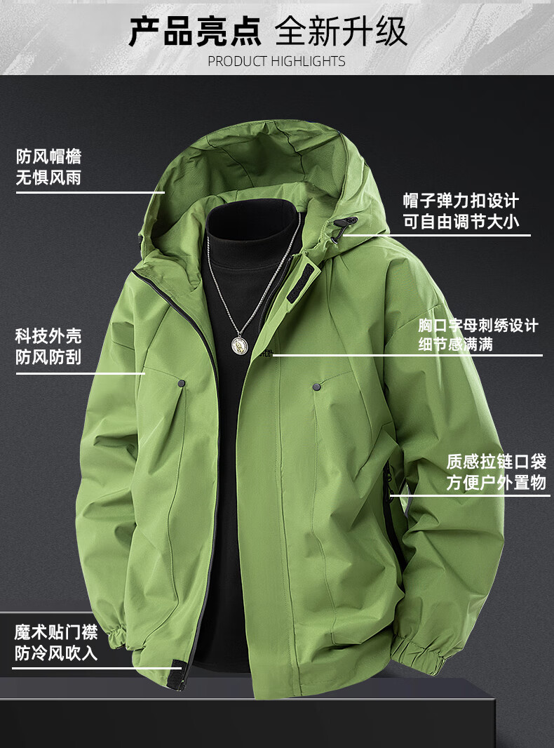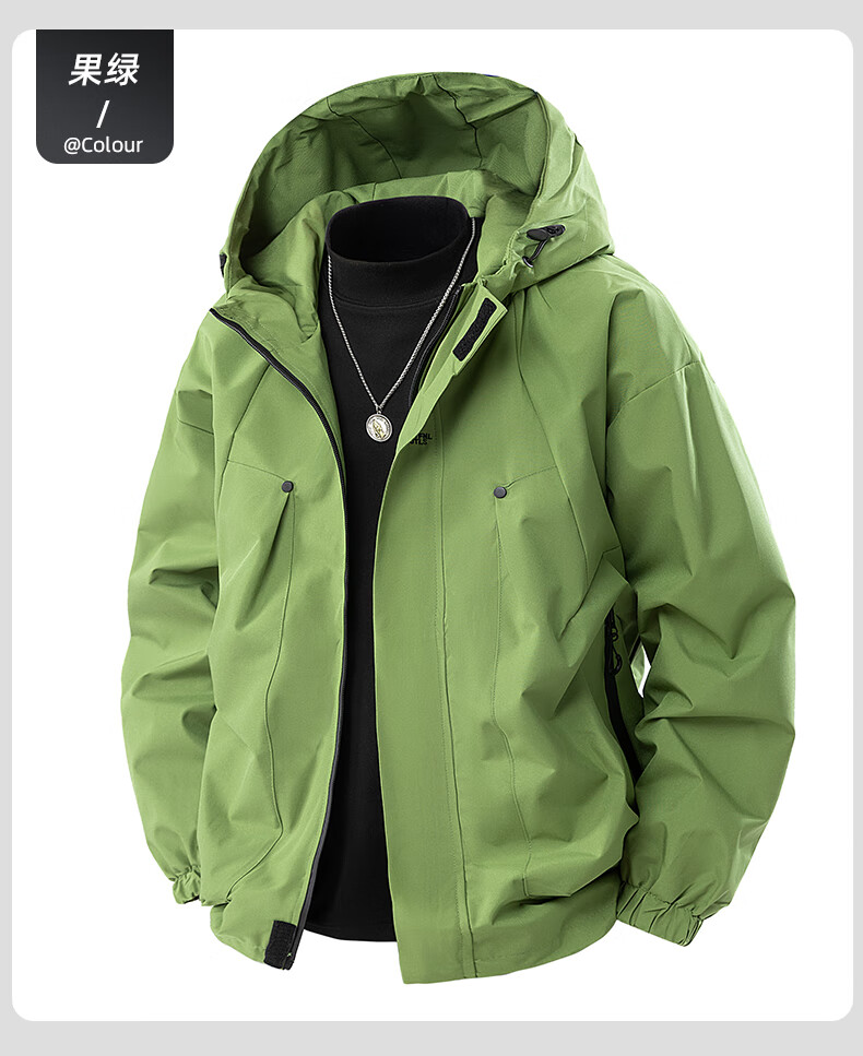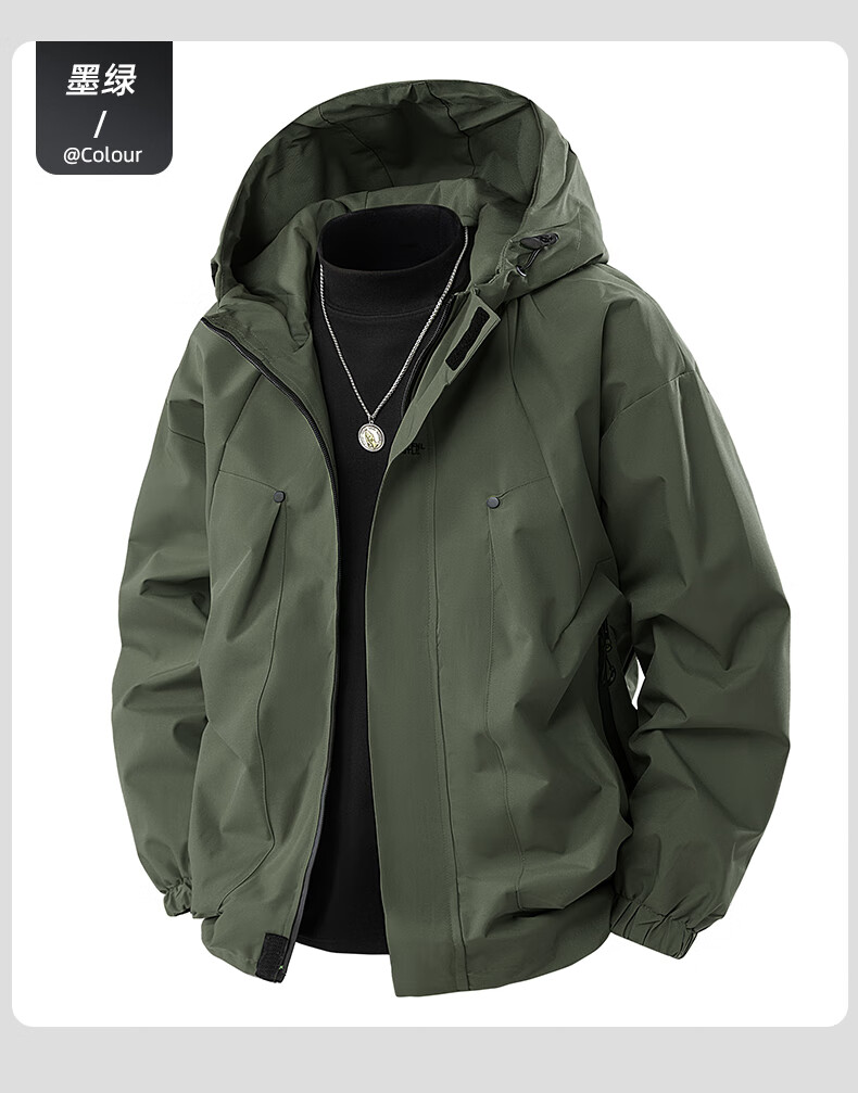 冲锋衣外套男款春秋季户外防风防水登山青少年情侣工装夹克 墨绿色 XL 建议140-165斤
