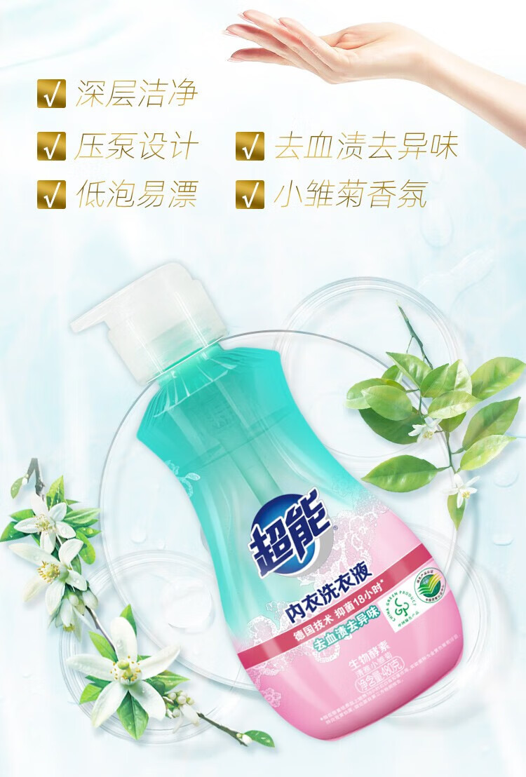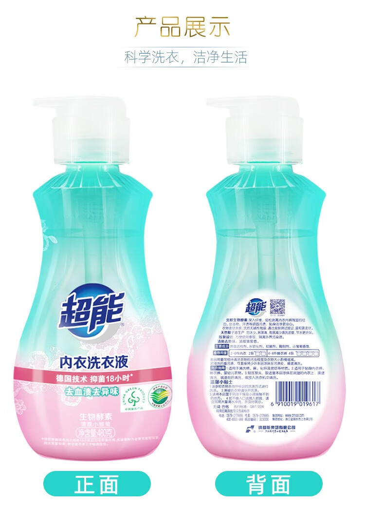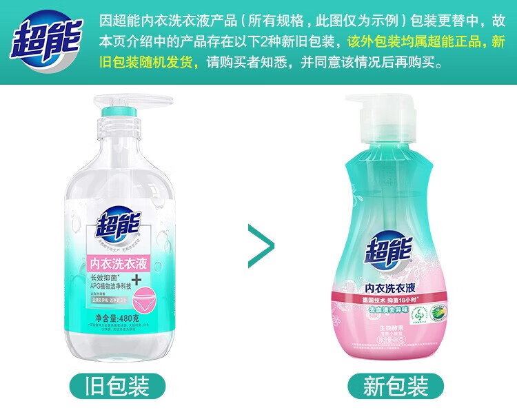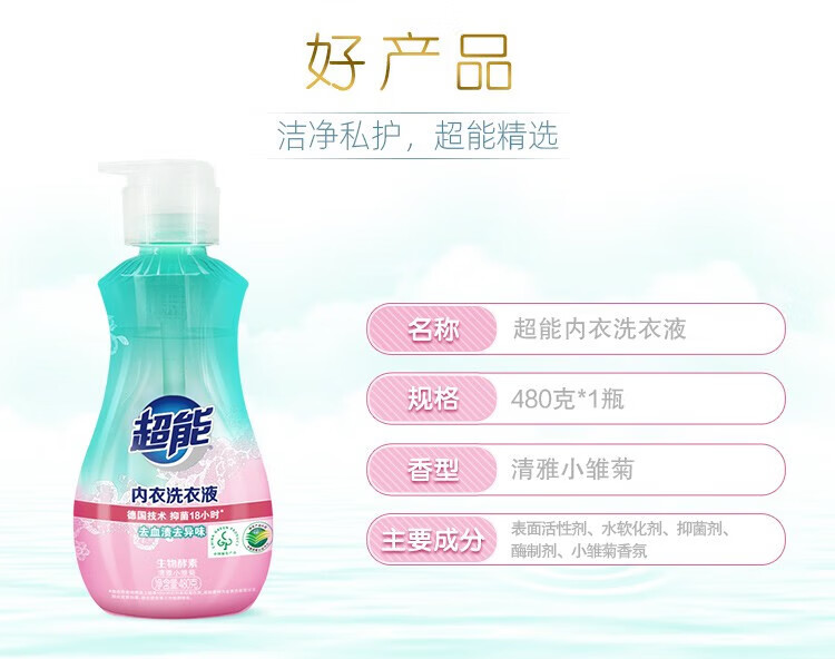 超能内衣洗衣液 480g*2 长效抑菌 内衣裤专用