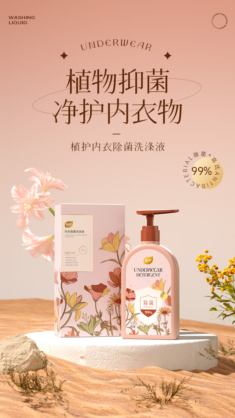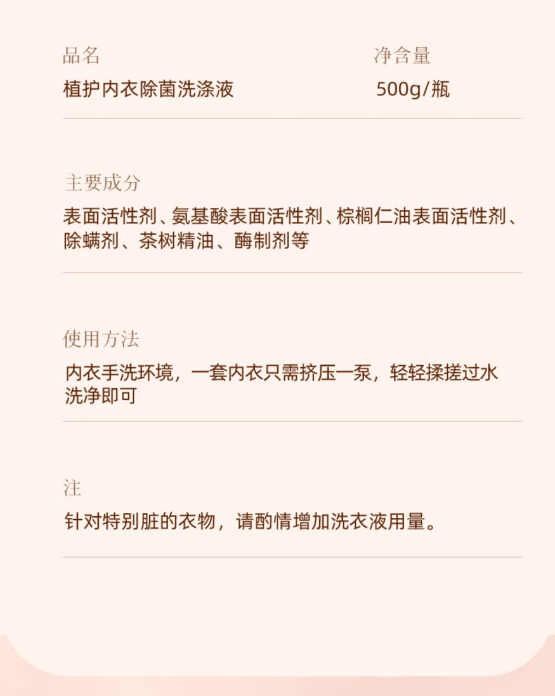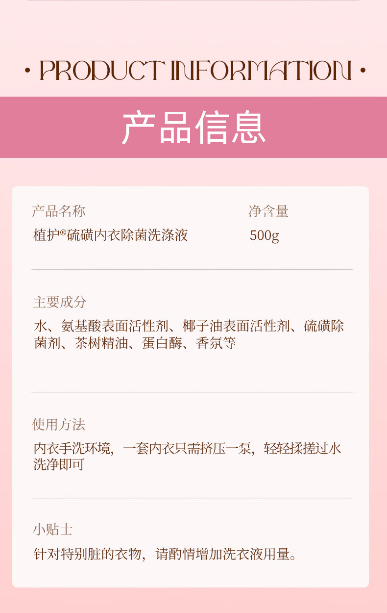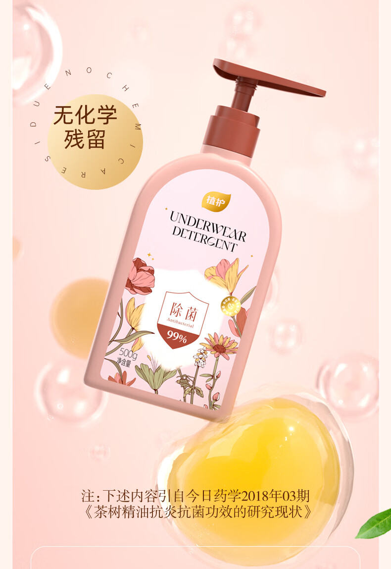 植护内衣洗衣液除菌除螨抑菌洗涤液女去黄去血渍 【绮梦花园】500g*1瓶