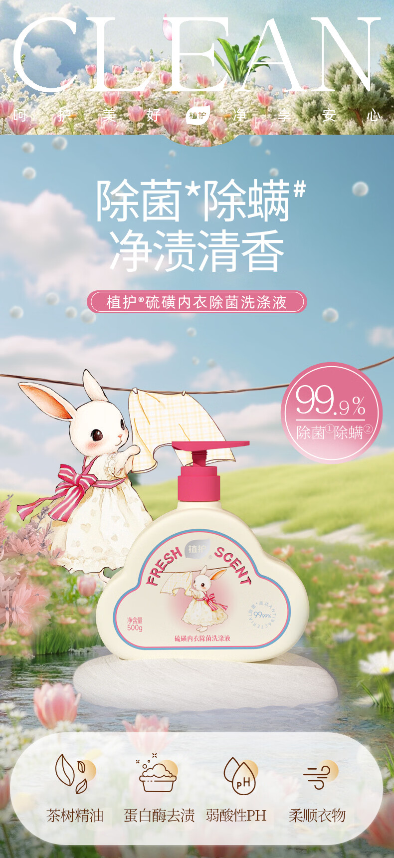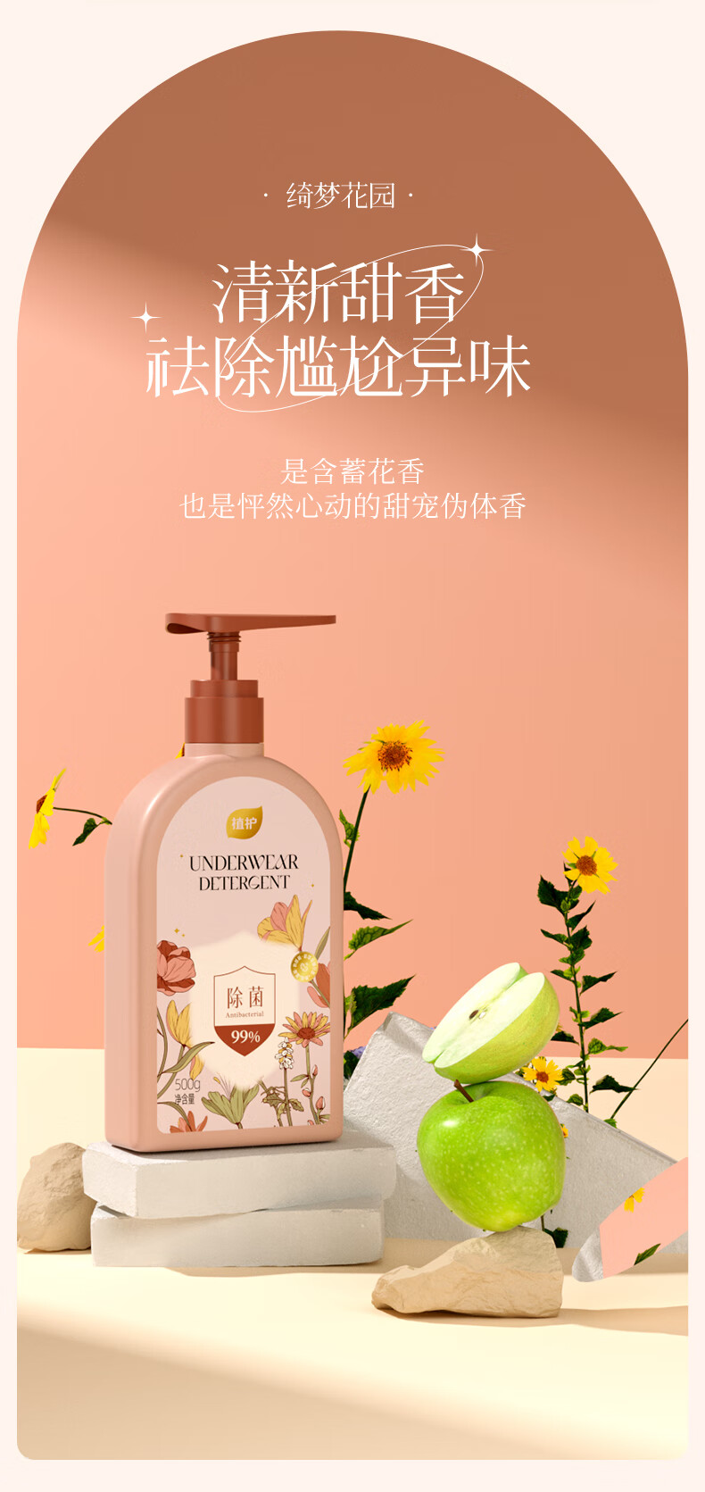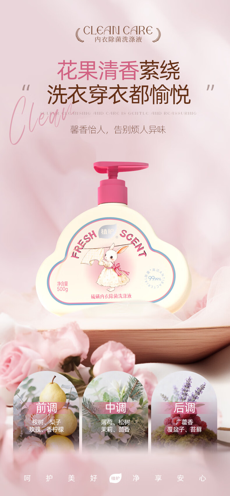 植护内衣洗衣液除菌除螨抑菌洗涤液女去黄去血渍 【绮梦花园】500g*1瓶