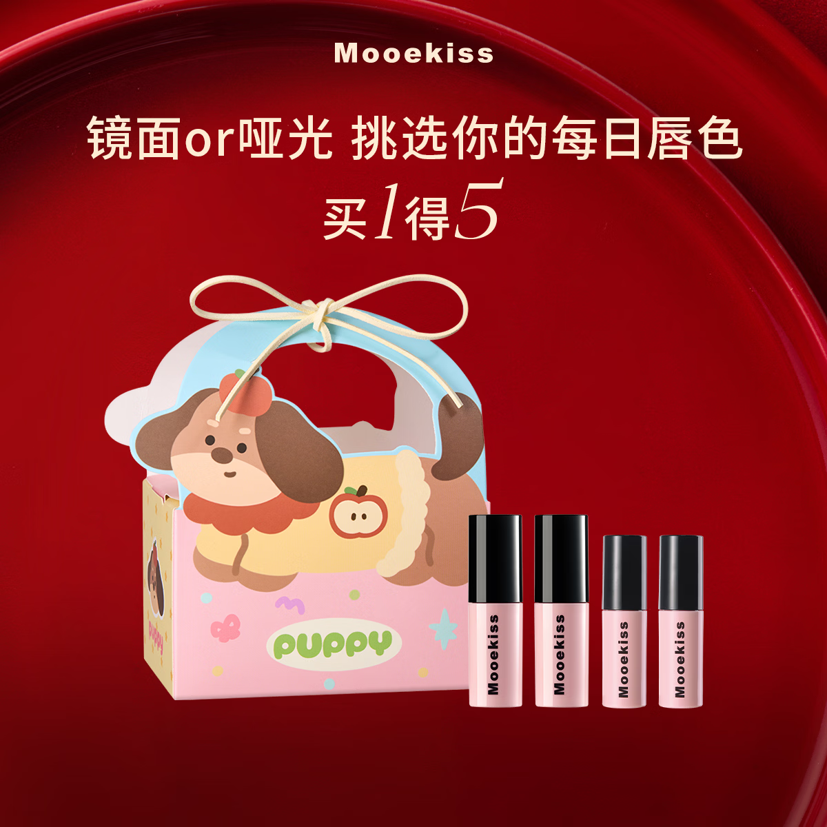 Mooekiss木柯诗镜面唇釉防水口红不沾杯丝绒唇霜唇泥显白送人礼物女生 苹果小狗礼盒A