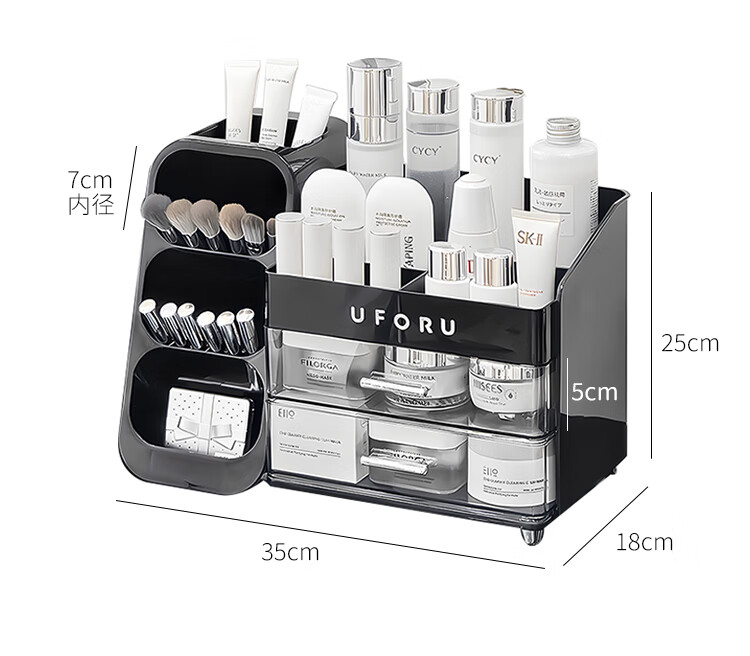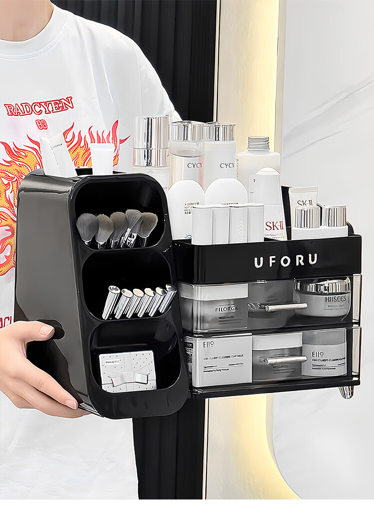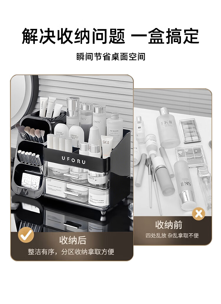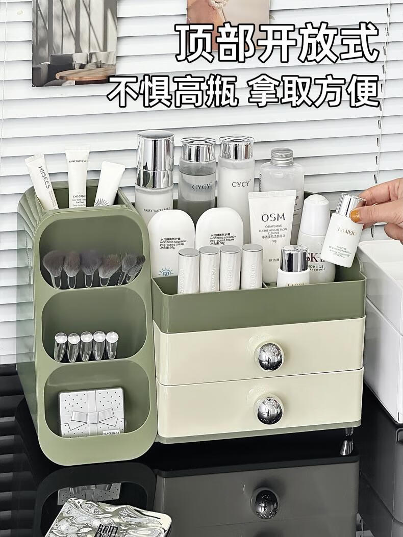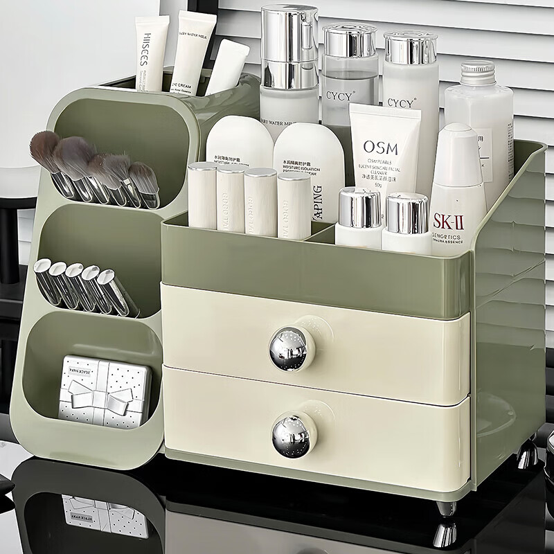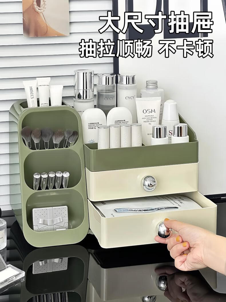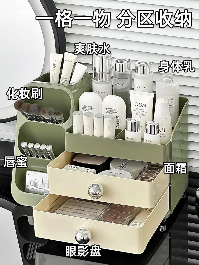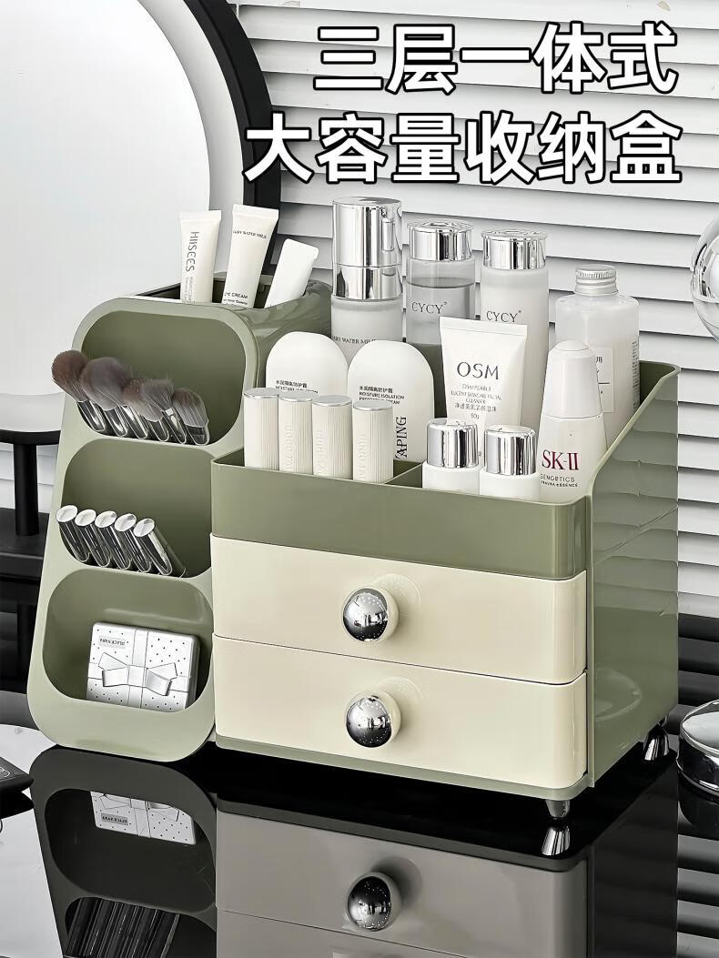 EACHY化妆品收纳盒大容量桌面高级感护肤品多功能抽屉式口红盒-复古绿