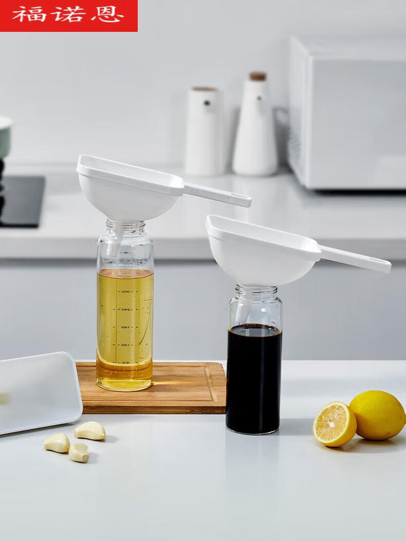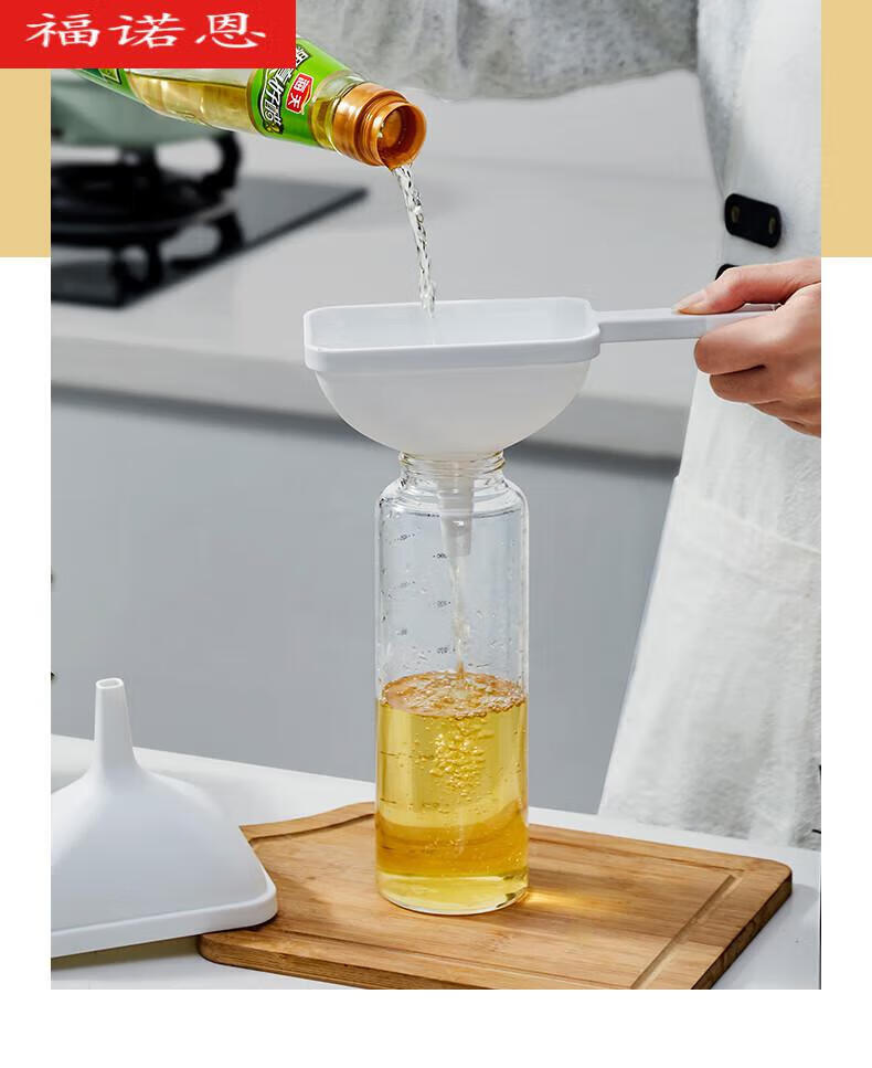 萝塑漏斗食品级日式漏斗大口径家用厨房分液塑料酒提酒壶方形分装瓶小 【1个装】白色-长柄手持漏斗