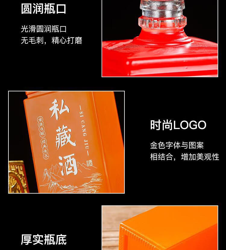 京婉高端玻璃白酒瓶空瓶一斤装自酿好看的酒瓶子密封家用礼盒包装 红私藏酒套装 500ml