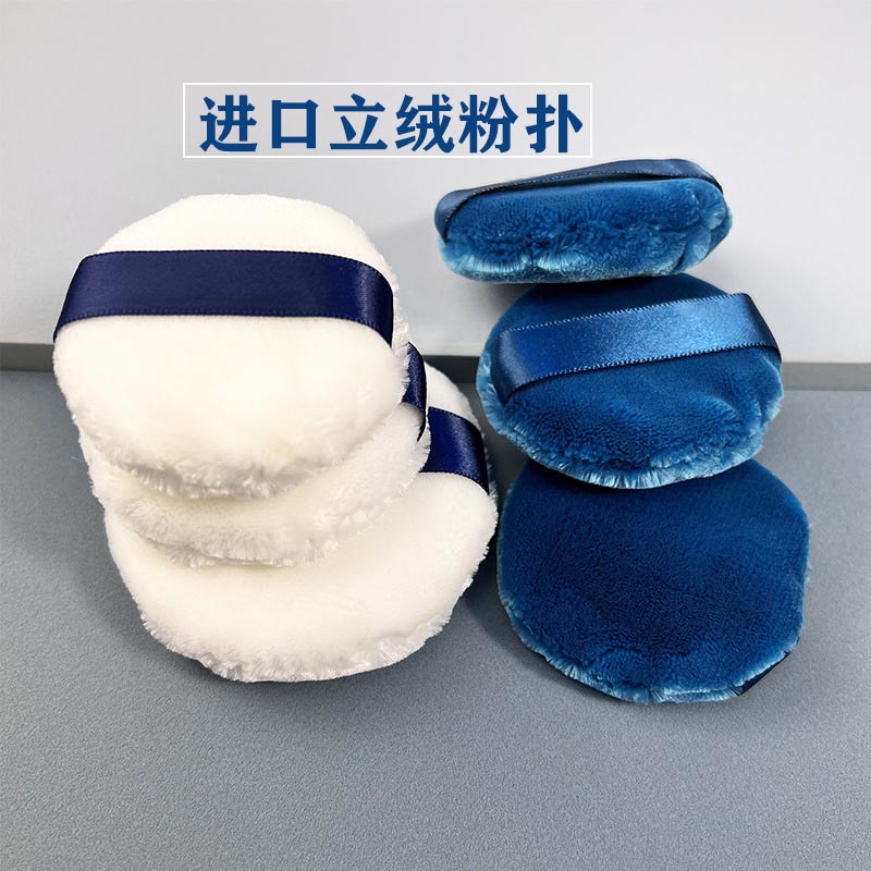 立绒粉扑蜜粉扑散粉扑超柔绒毛粉扑女生定妆爽身粉长绒不吃粉 (薄款)植绒款60*10mm 袋装(白色粉扑黑色带) 1个