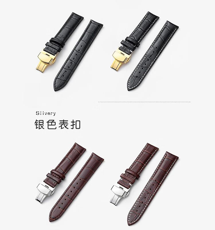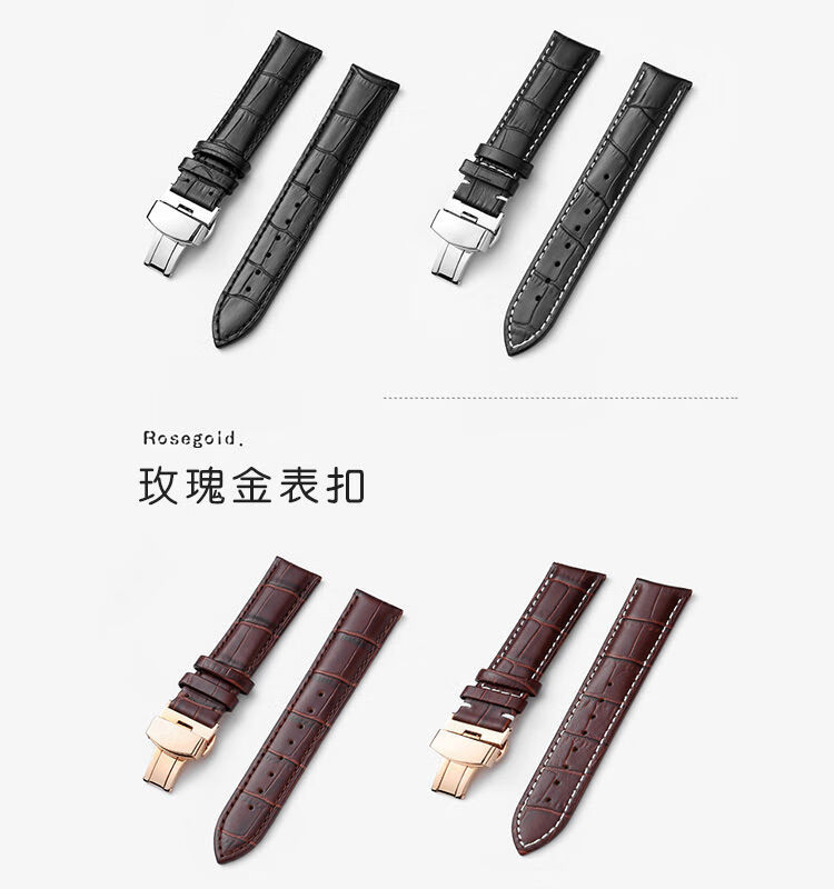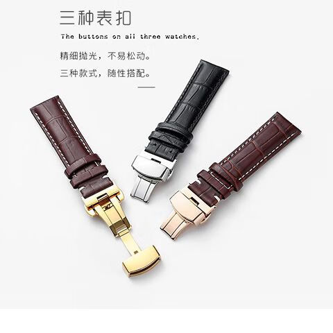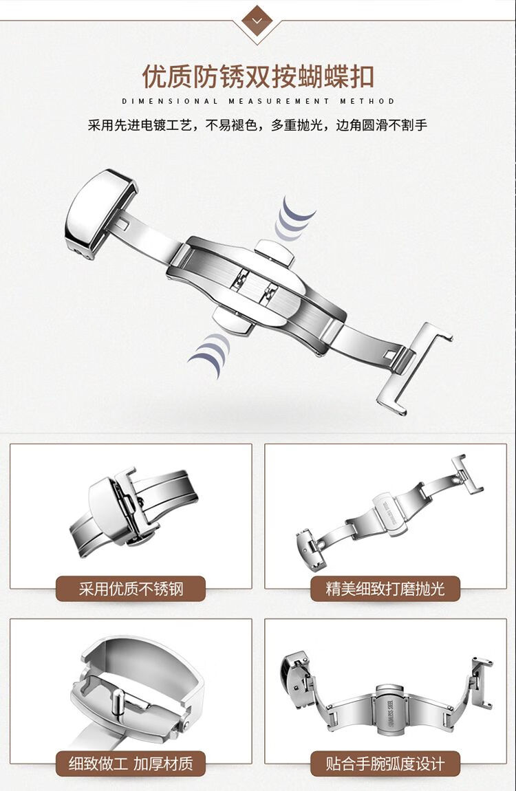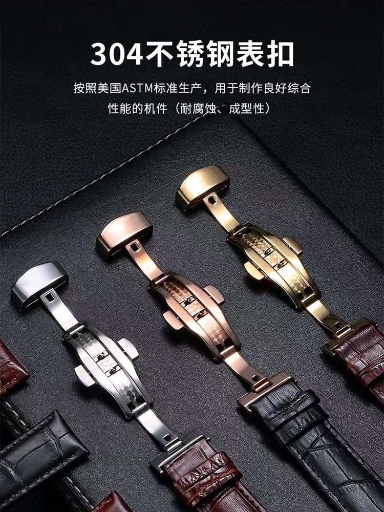 岚立仕皮表带手表带男真皮表链女自动扣蝴蝶扣手链皮带配件小牛皮 黑带[亮色蝴蝶] 表口12mm寛度