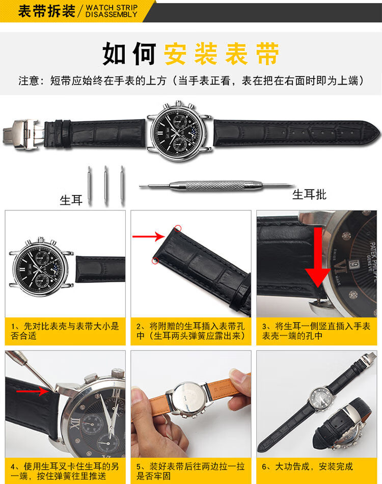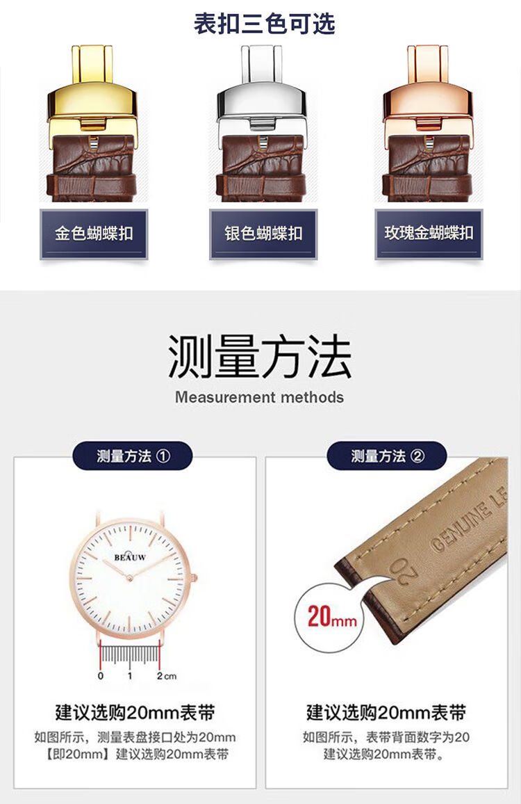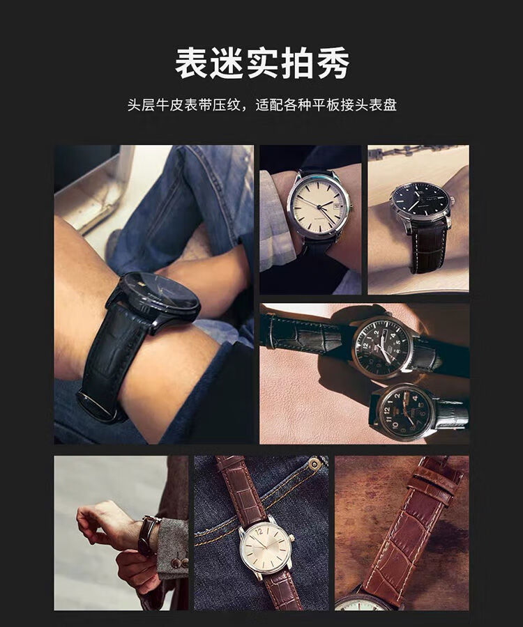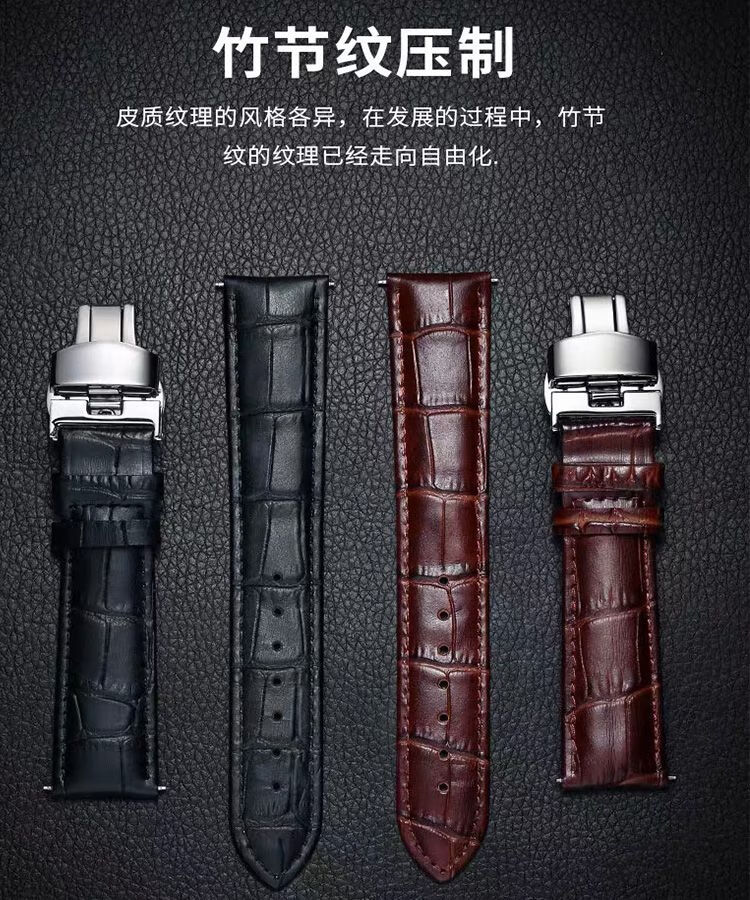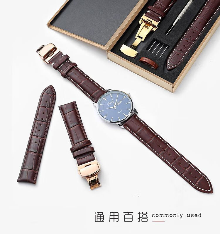 岚立仕皮表带手表带男真皮表链女自动扣蝴蝶扣手链皮带配件小牛皮 黑带[亮色蝴蝶] 表口12mm寛度
