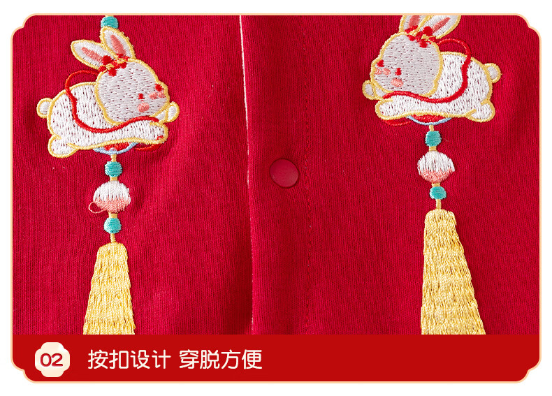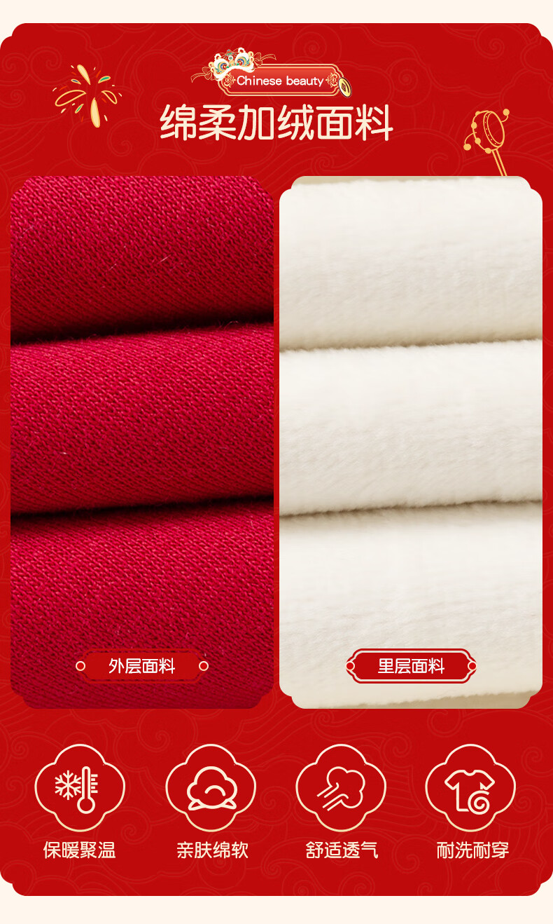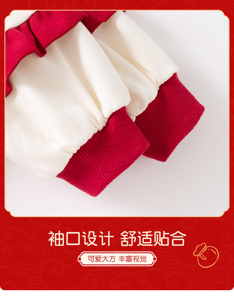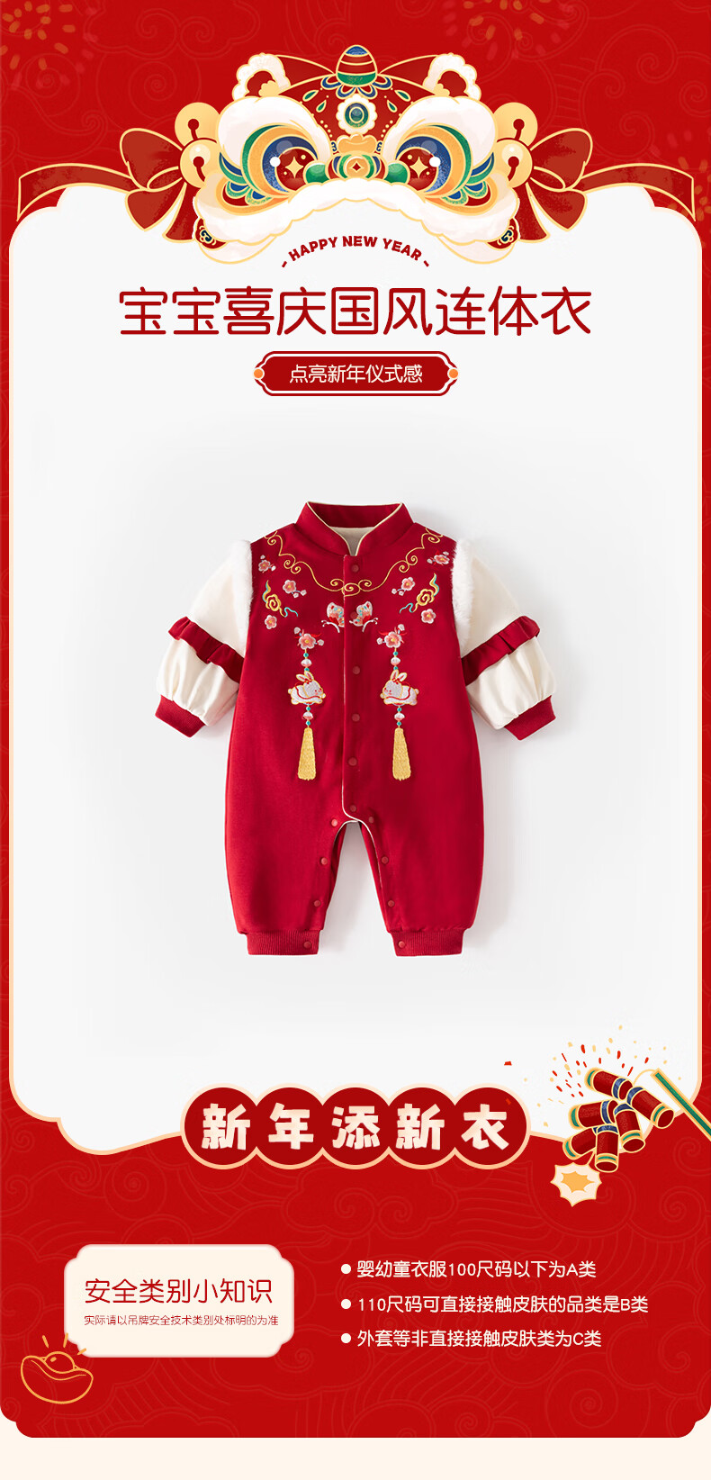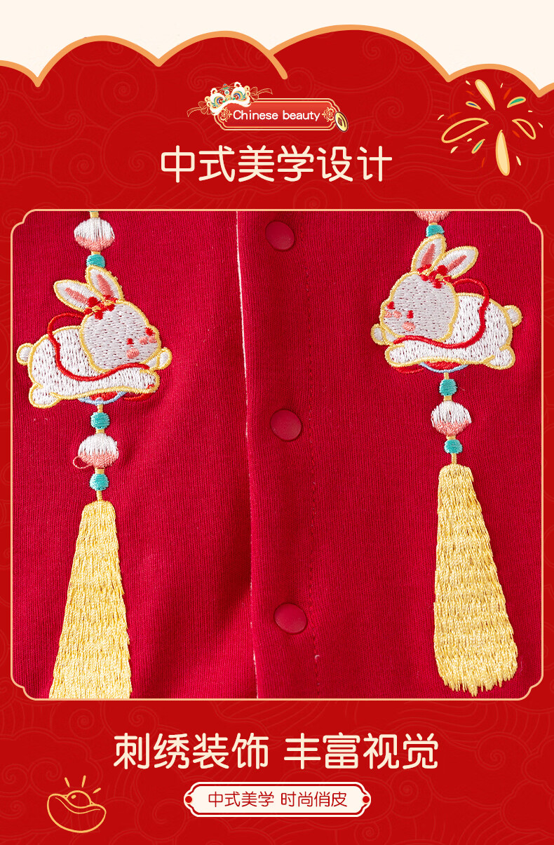班喜迪婴儿衣服冬装婴幼儿加绒连体衣国风周岁女宝宝礼服百天过年拜年服 红色 90cm