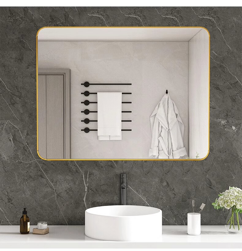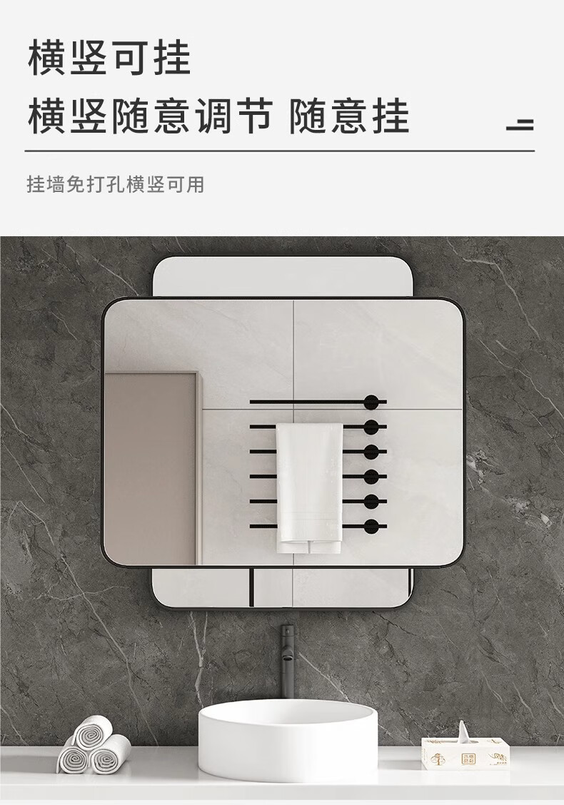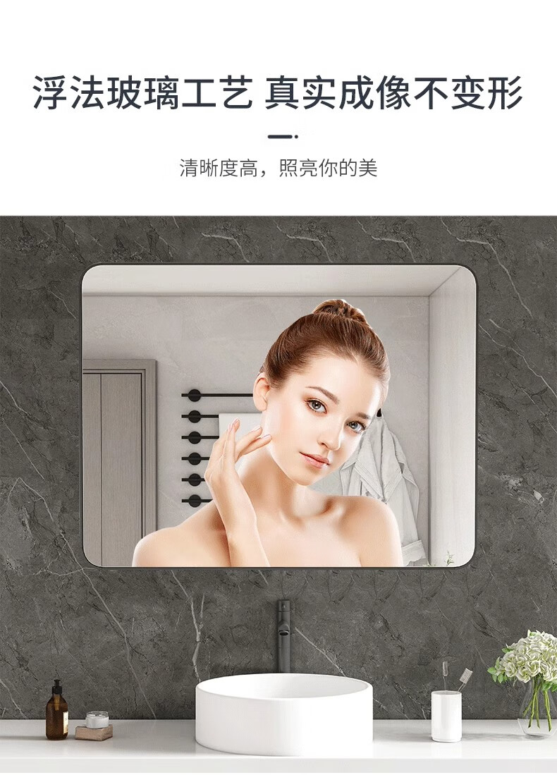 德旭卫生间镜子浴室壁挂镜厕所洗漱台梳妆镜家用挂墙上镜免打孔自粘镜 【高清防爆】30*40经典黑-免打孔