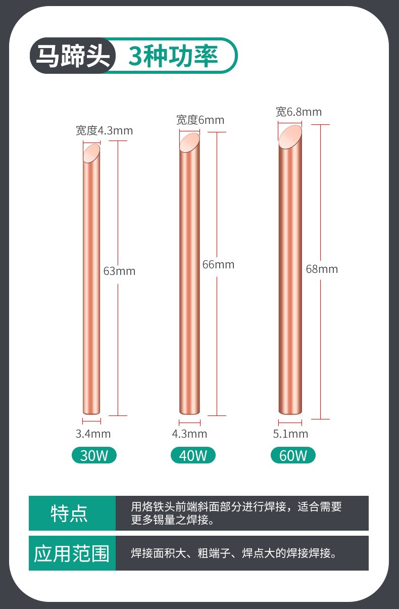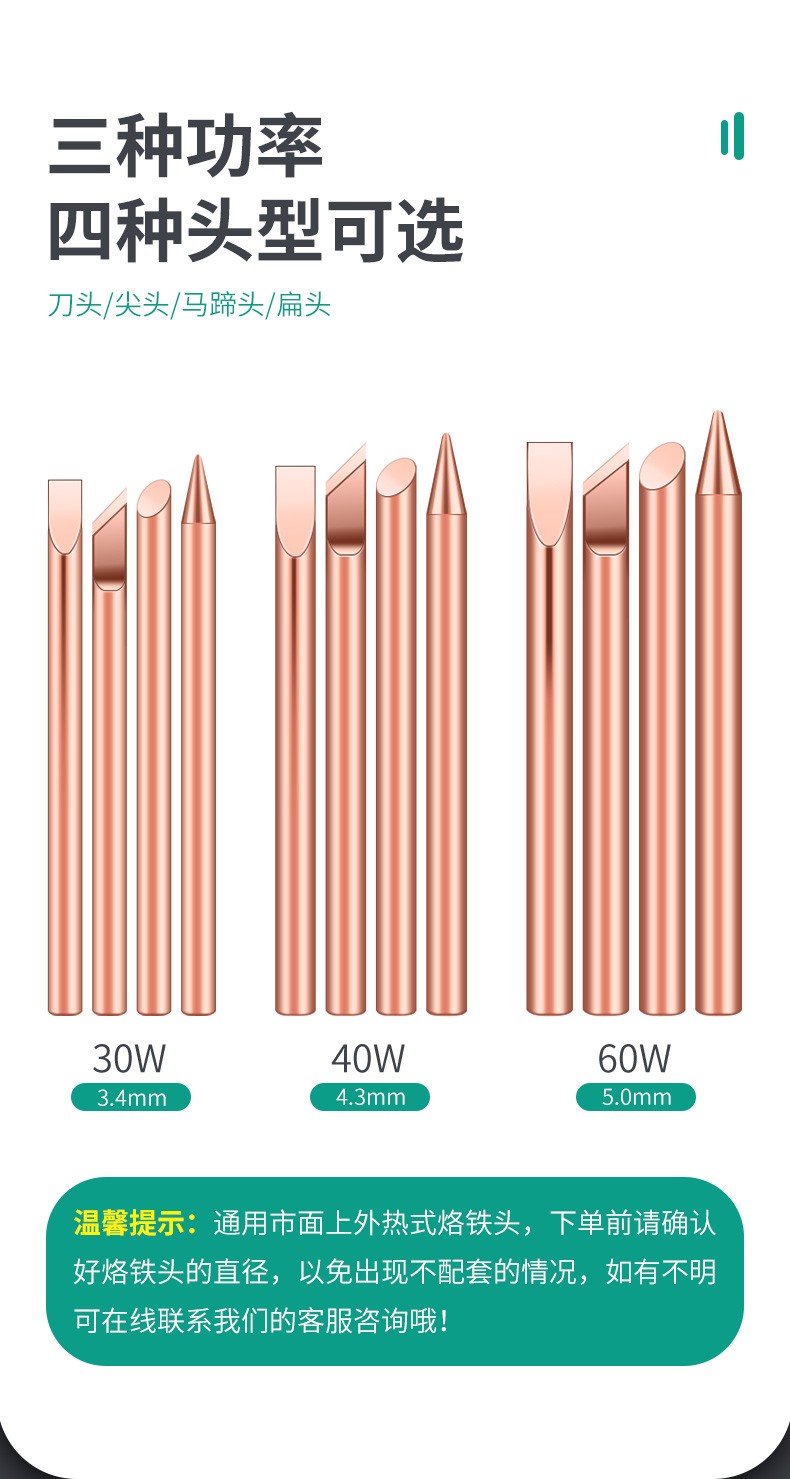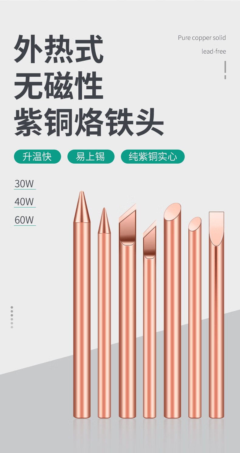 HANDSKIT纯紫铜外热式纯铜烙铁头不吸磁特尖焊喇叭无磁30瓦电烙铁咀 30W(刀头)