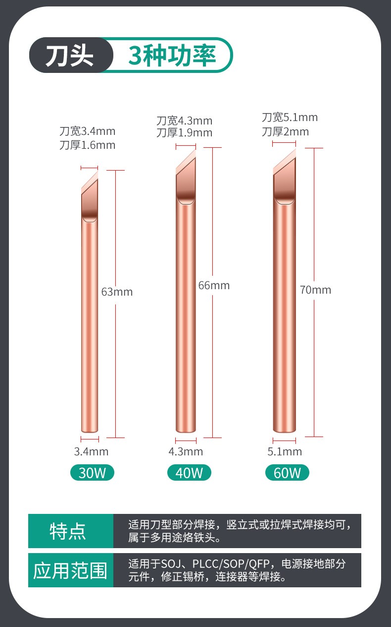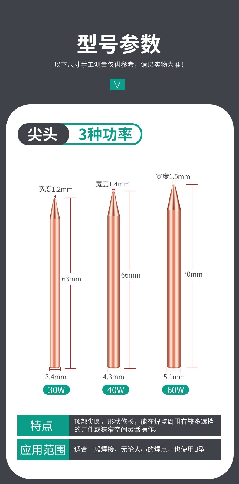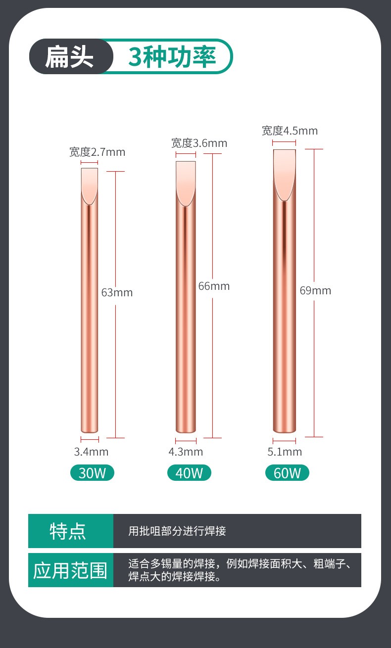 HANDSKIT纯紫铜外热式纯铜烙铁头不吸磁特尖焊喇叭无磁30瓦电烙铁咀 30W(刀头)