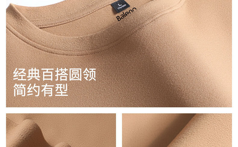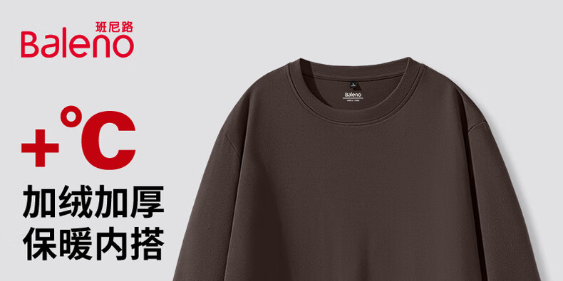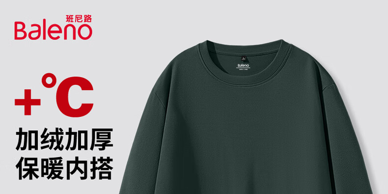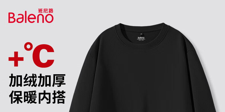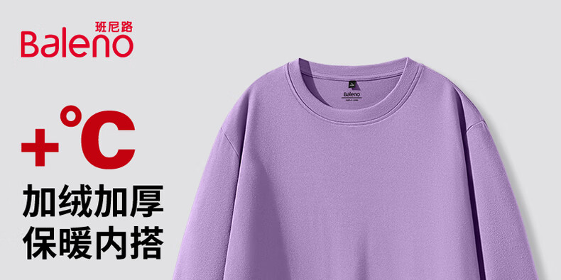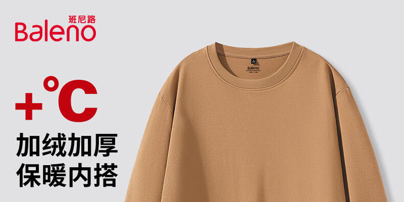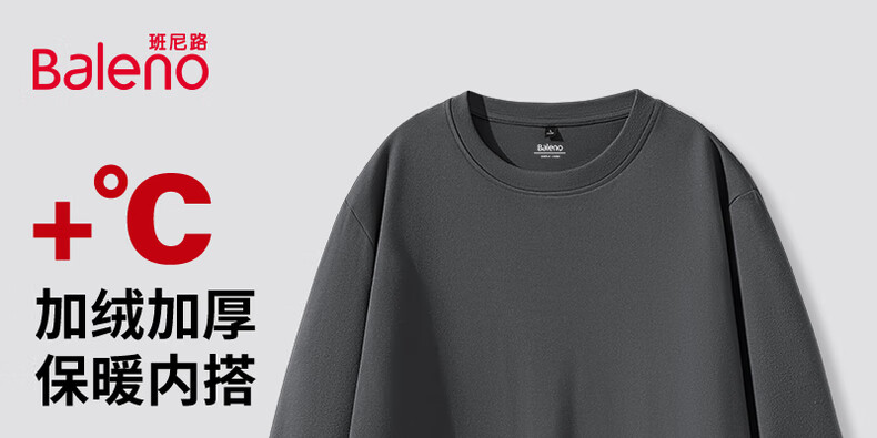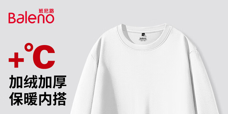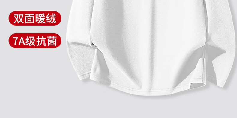 班尼路(Baleno)2025新款7A级抗菌秋冬季双面绒圆领双面绒男装保暖百搭款打底衫 【双面绒】-白#纯色 L