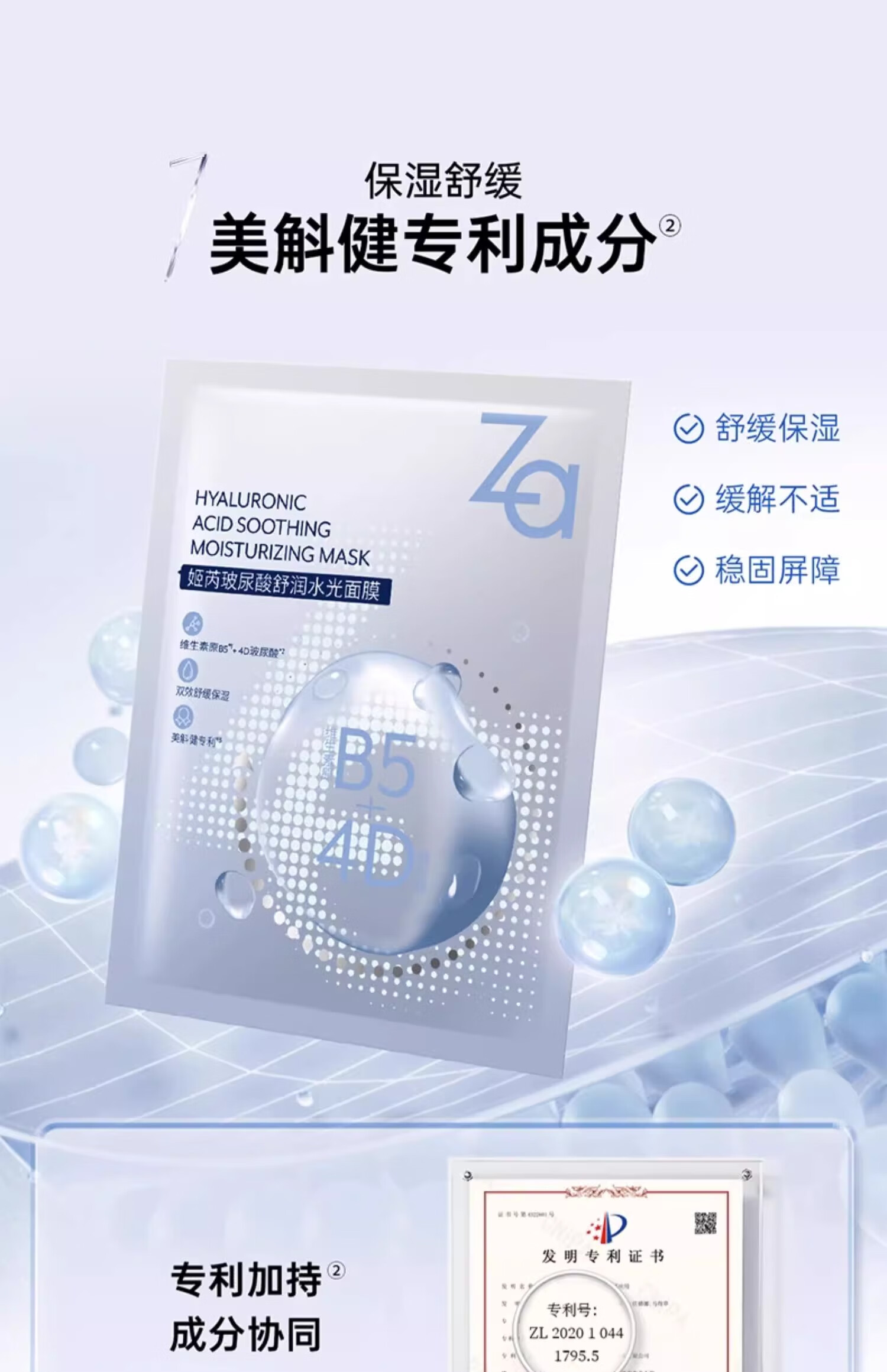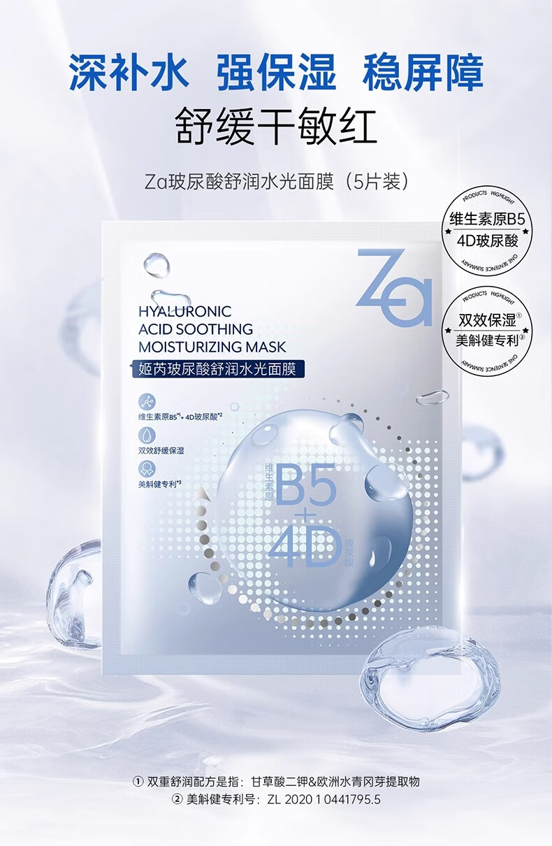 姬芮Za姬芮玻尿酸面膜补水保湿女男含b5修护成分舒缓敏感泛红熬夜 5片 买一盒送一盒到手10片
