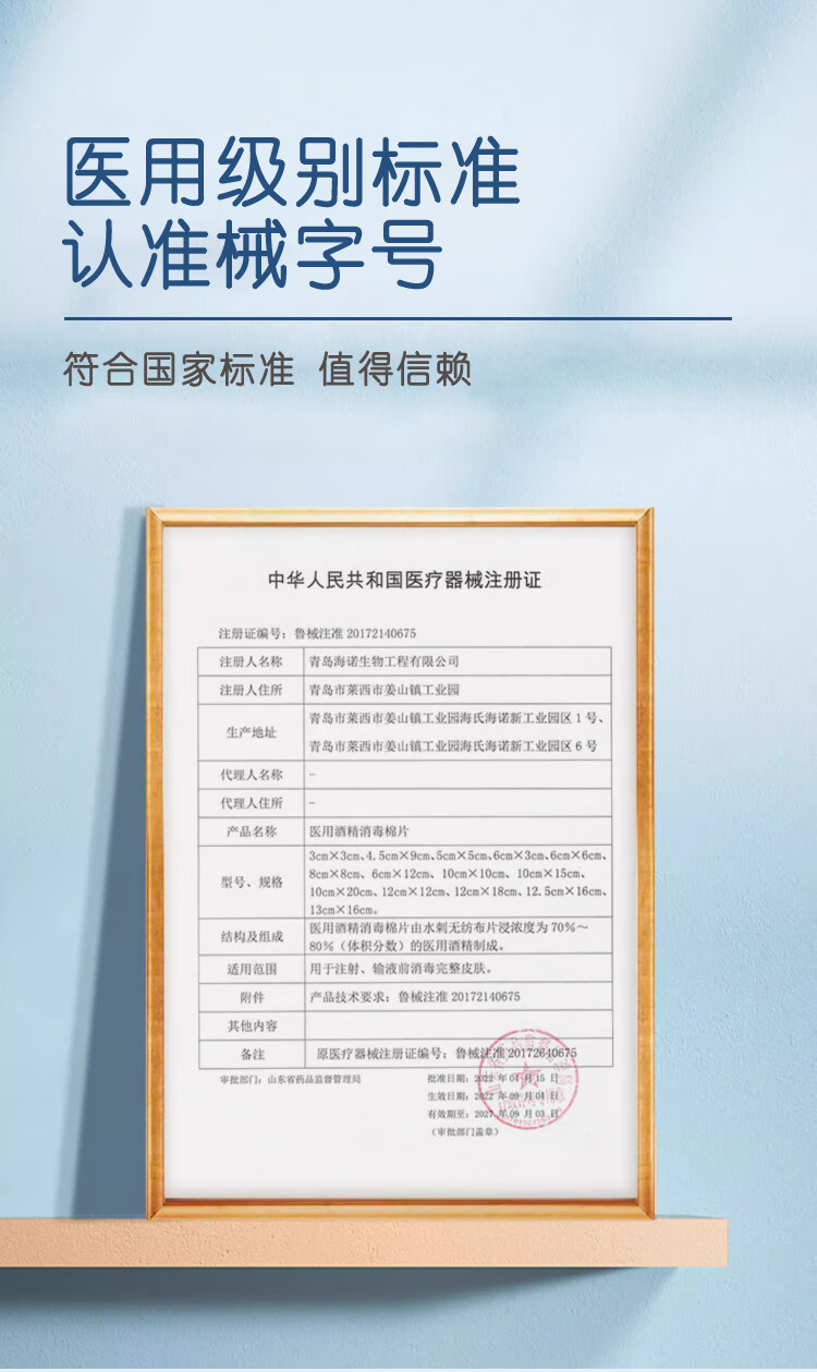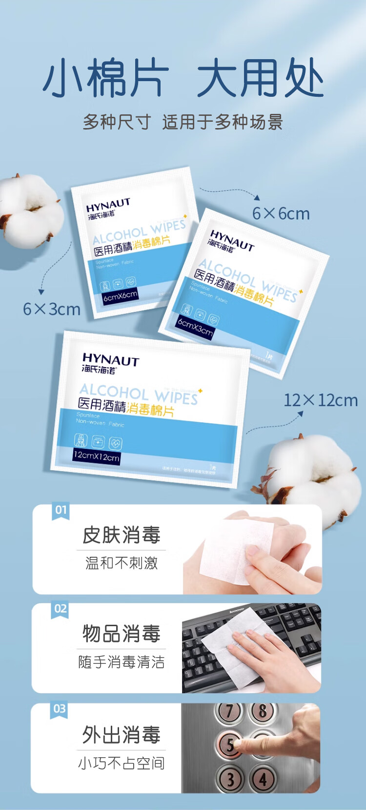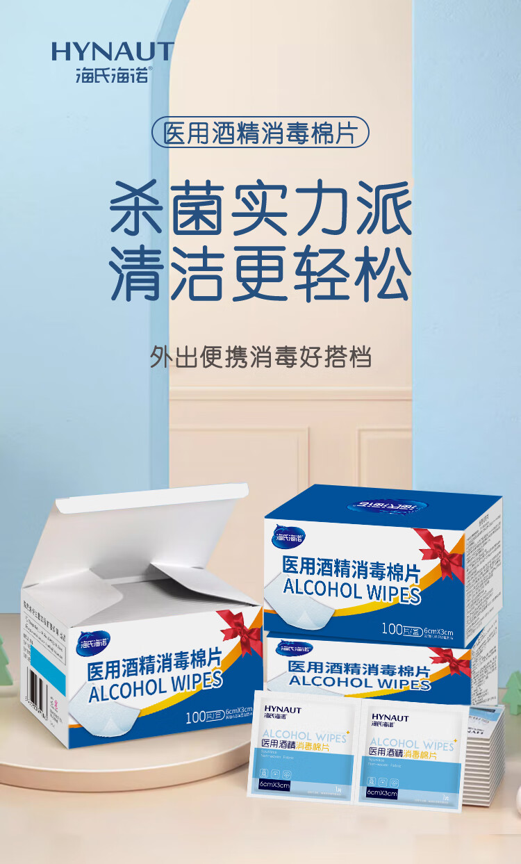 海氏海诺75%医用酒精消毒棉片湿巾100片 独立装擦手机皮肤消毒 6*3cm凑单