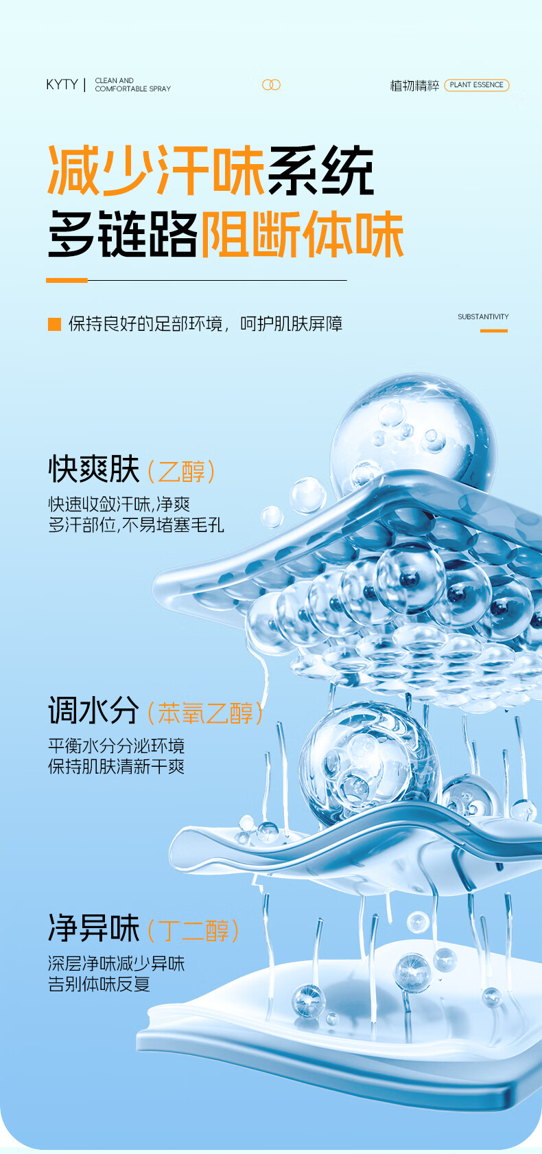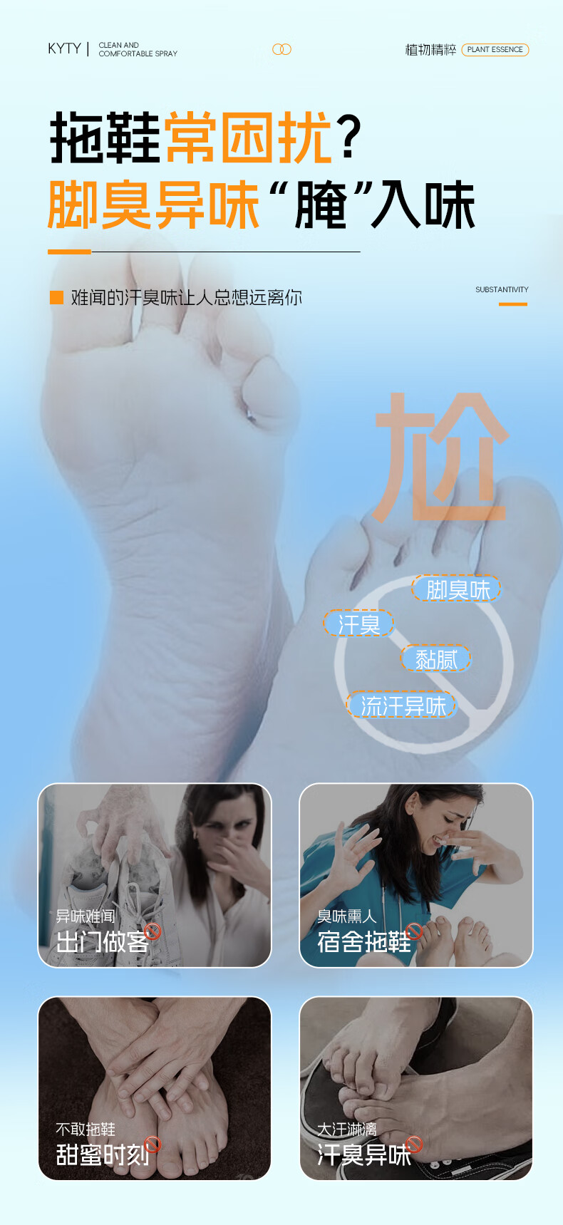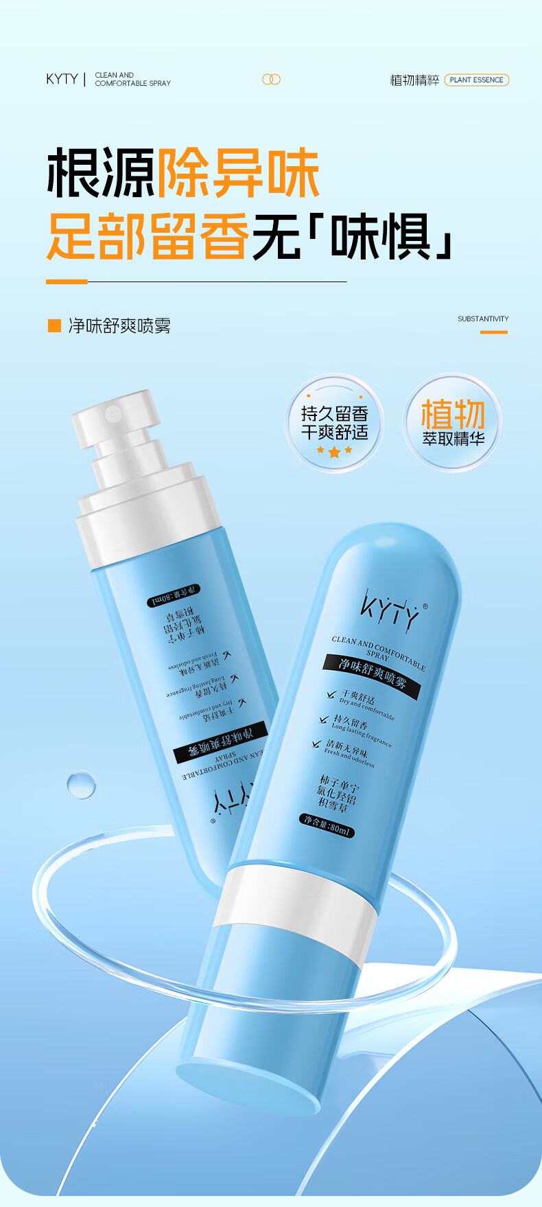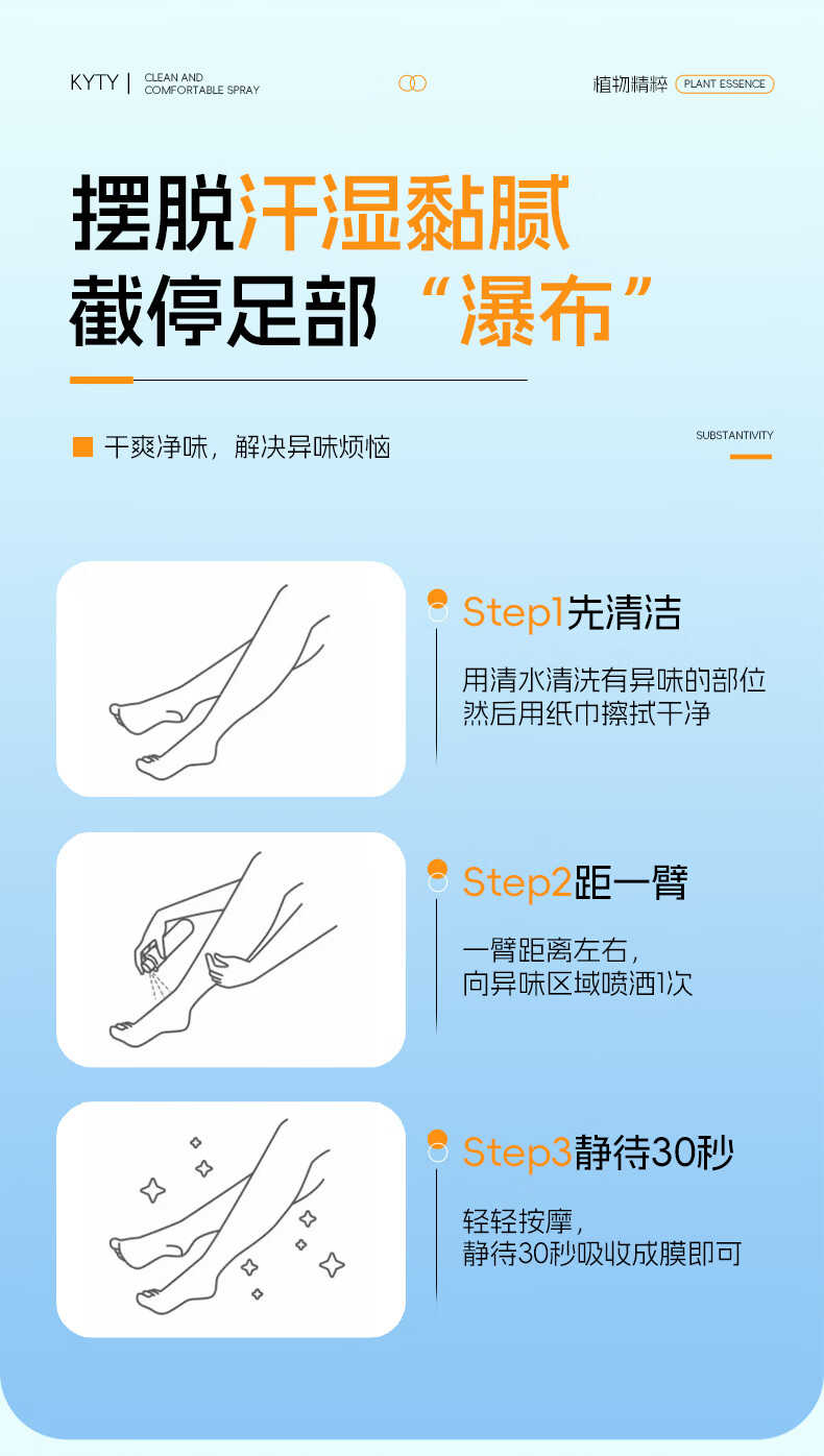 KYTY净味舒爽喷雾脚臭喷雾脚出汗脚酸臭除去脚臭喷剂除异味官方正品店 2瓶*80ml【90%用户选购】