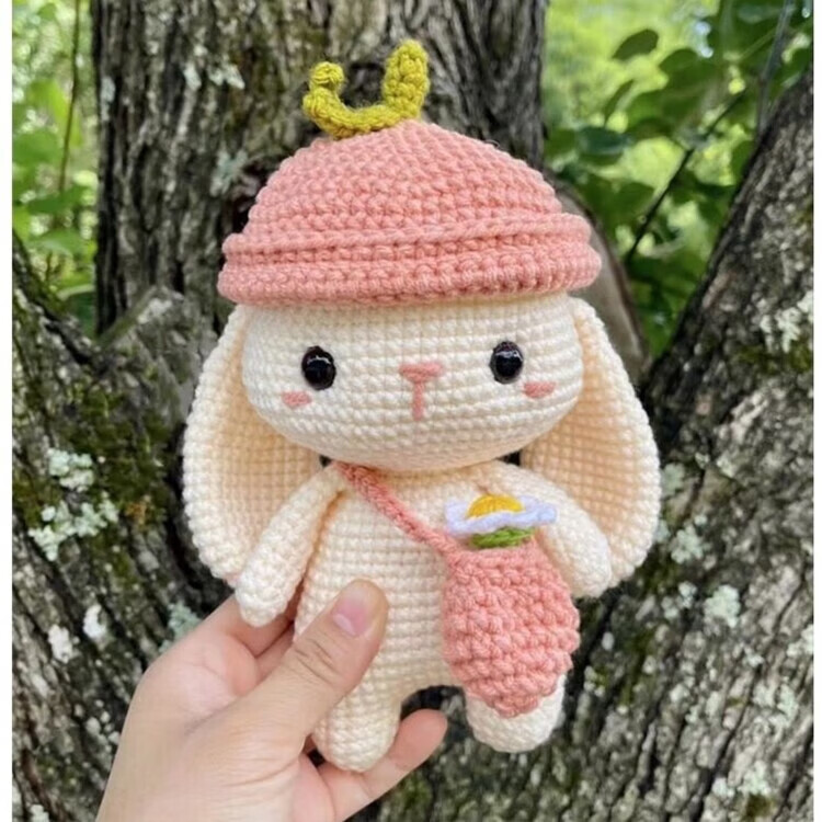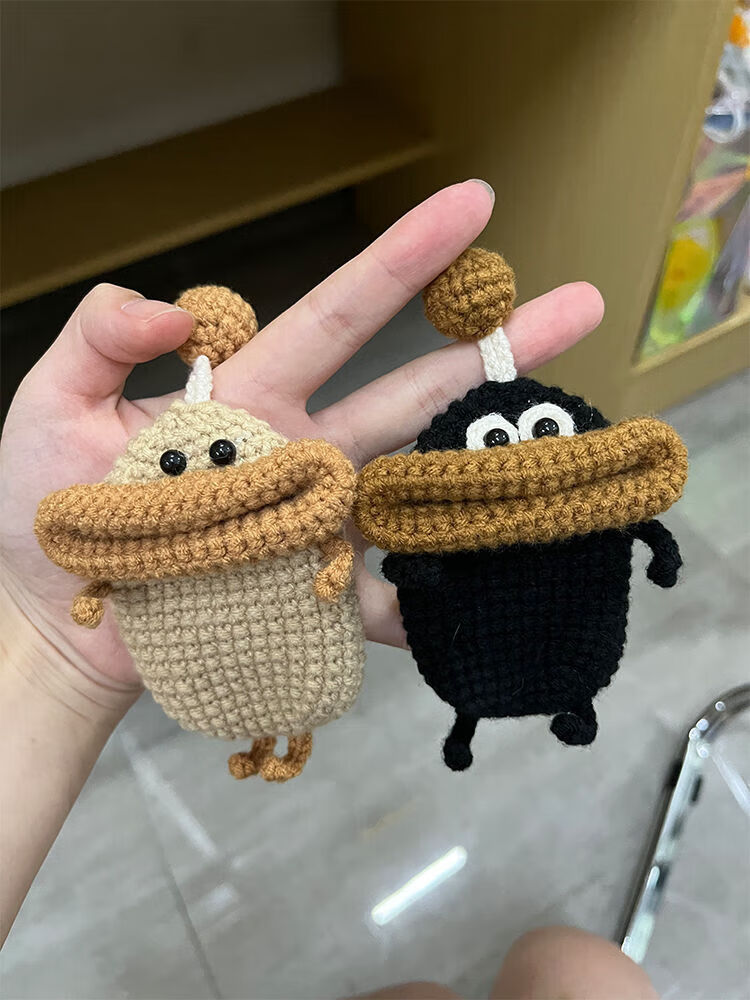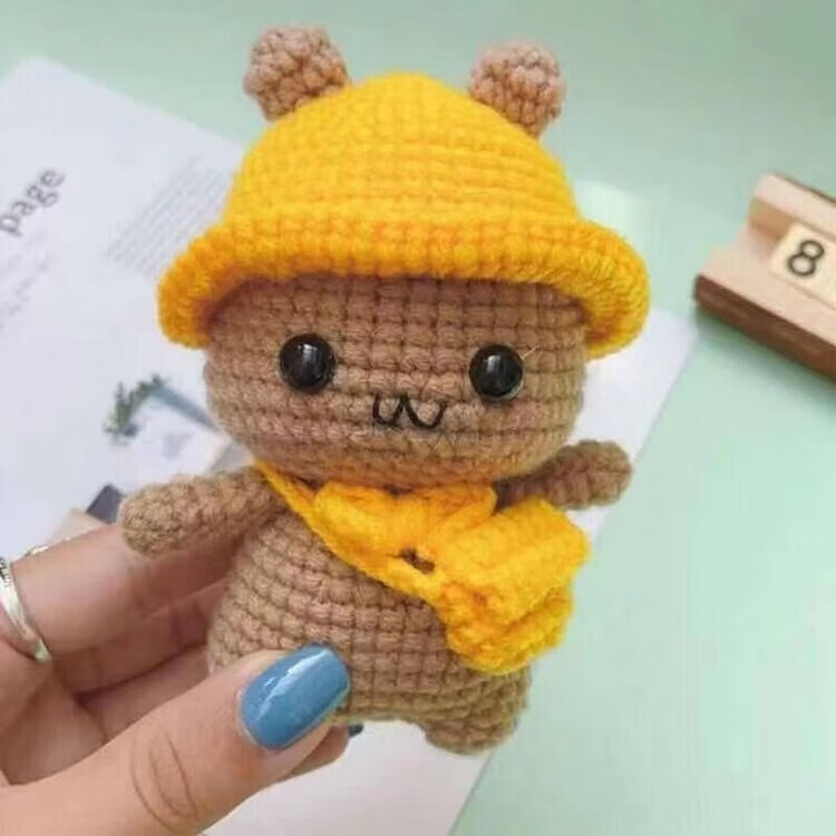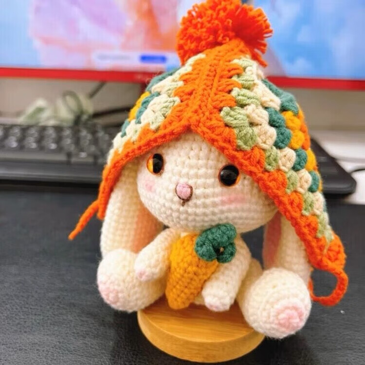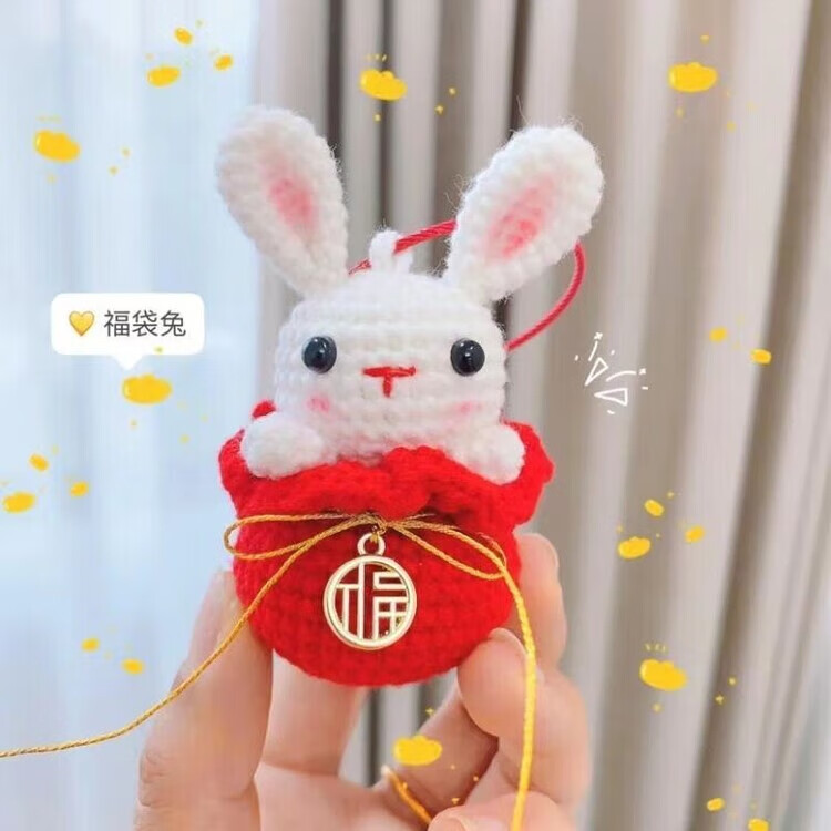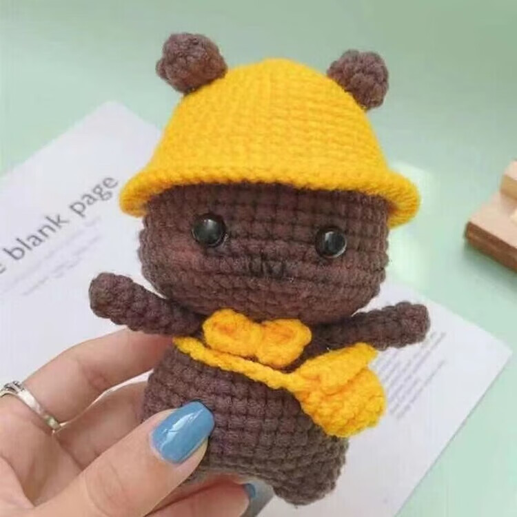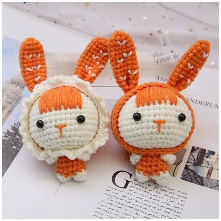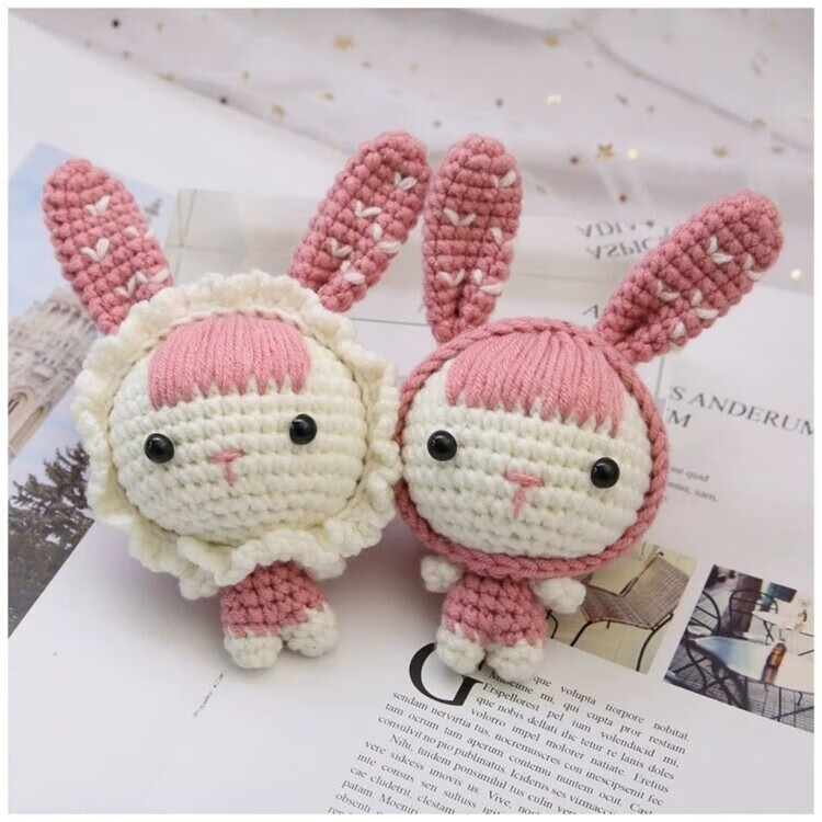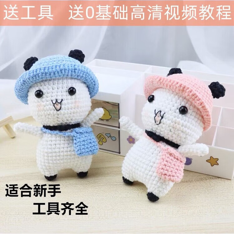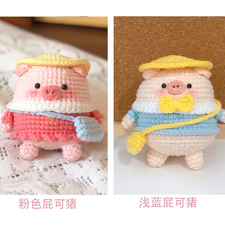 勾线手工编织毛线diy材料包手工编织制作勾线玩偶挂件毛线娃娃 粉+蓝猫组合材料包