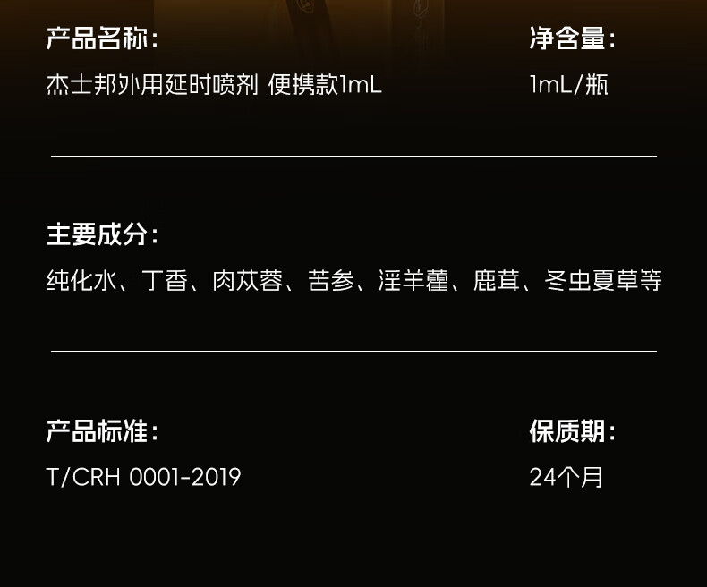 杰士邦延时喷雾剂男生性发泄情趣用品增大粗持久不射印度神油同房器1ml