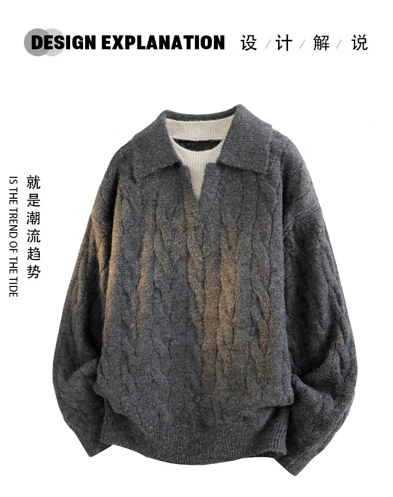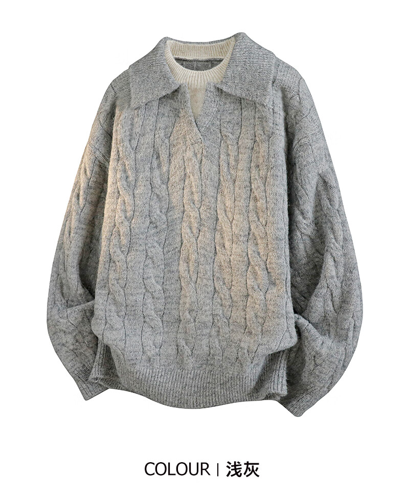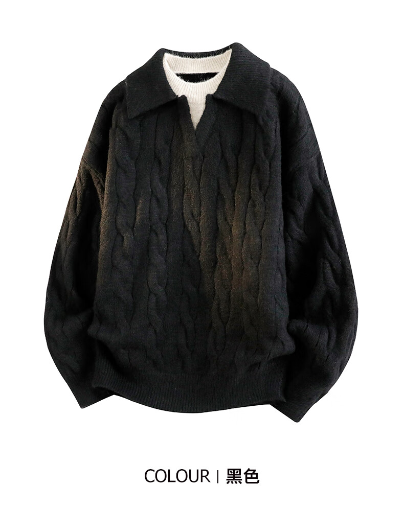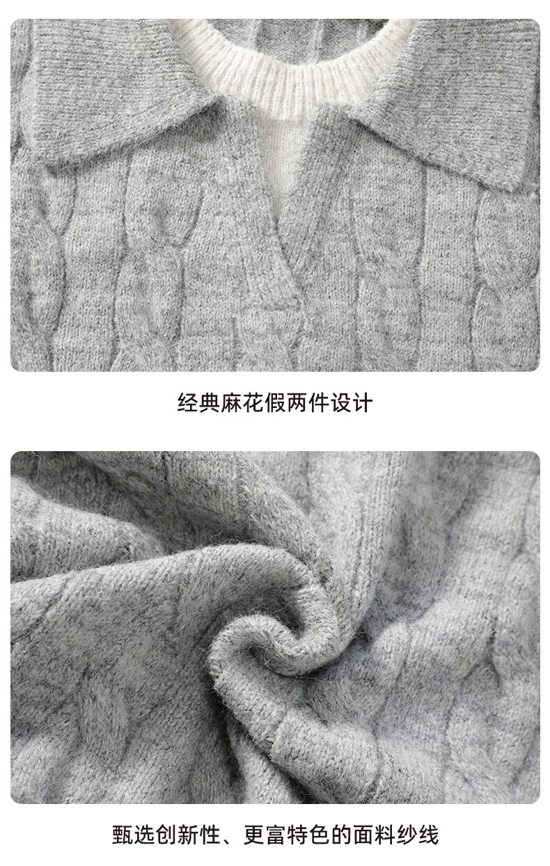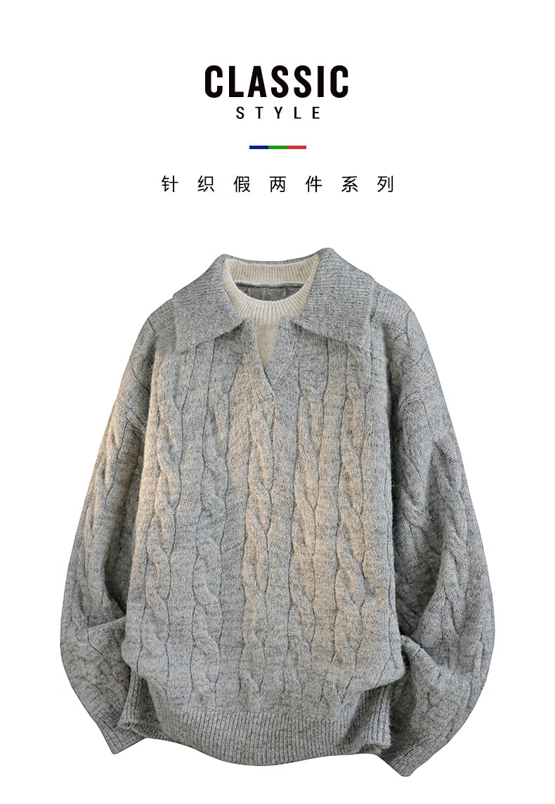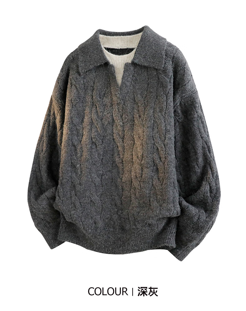 GREATLUIA韩版慵懒风套头假两件麻花毛衣秋冬季新款纯色宽松简约舒适针织衫 深灰 XL