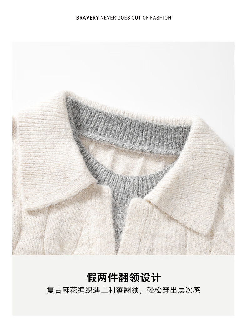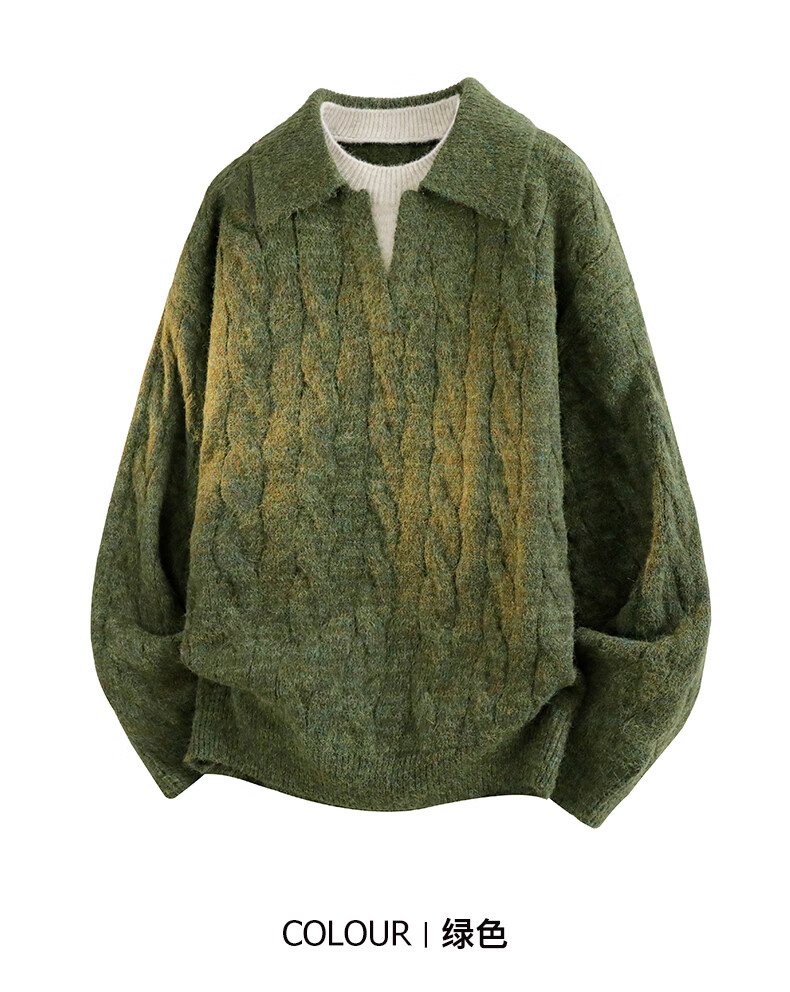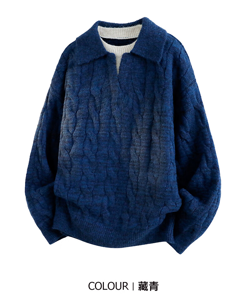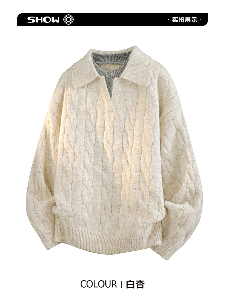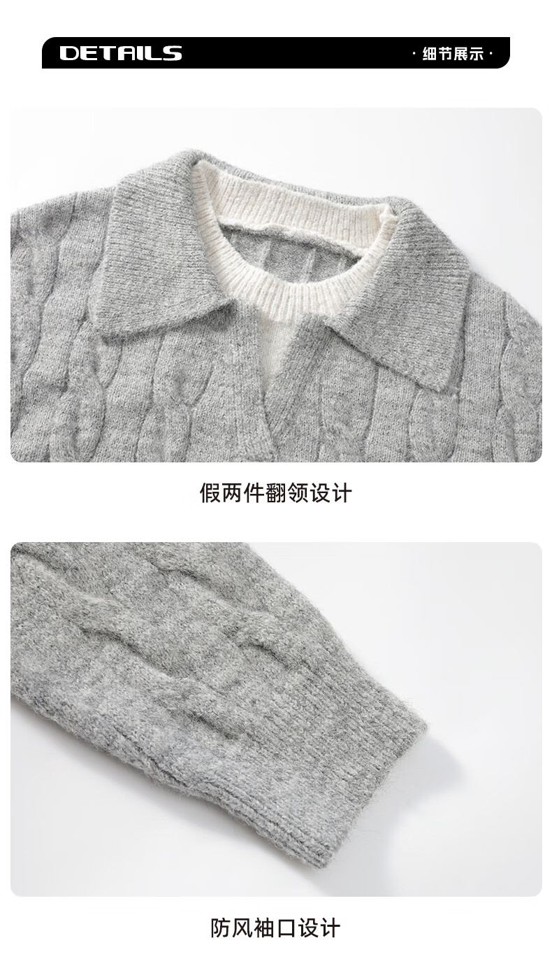 GREATLUIA韩版慵懒风套头假两件麻花毛衣秋冬季新款纯色宽松简约舒适针织衫 深灰 XL