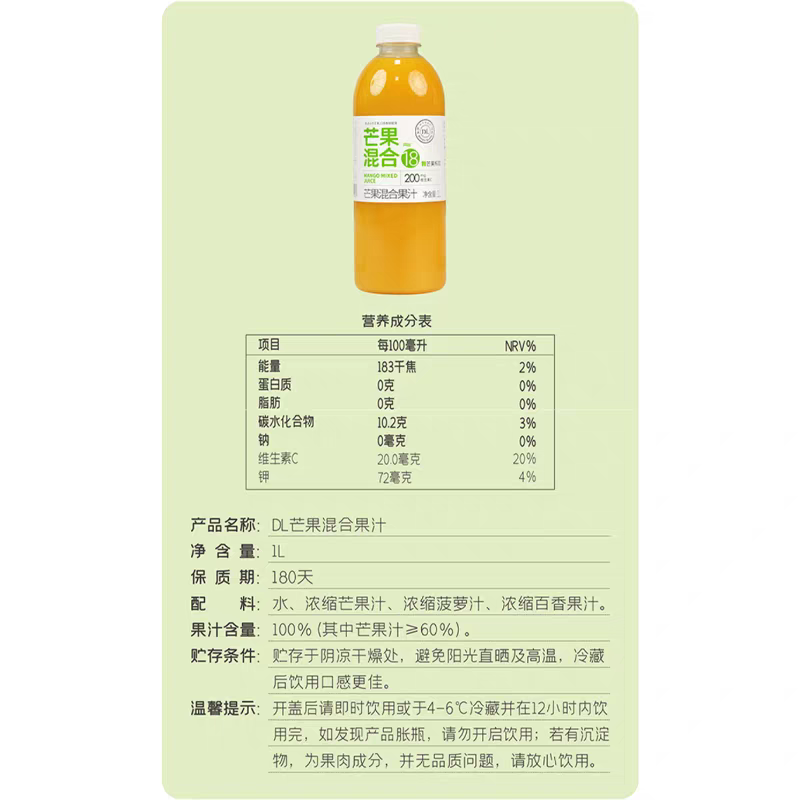 胖东来同款国货品质超市芒果汁许昌超市葡萄汁橙汁水蜜桃汁番茄汁 芒果覆合果汁整箱