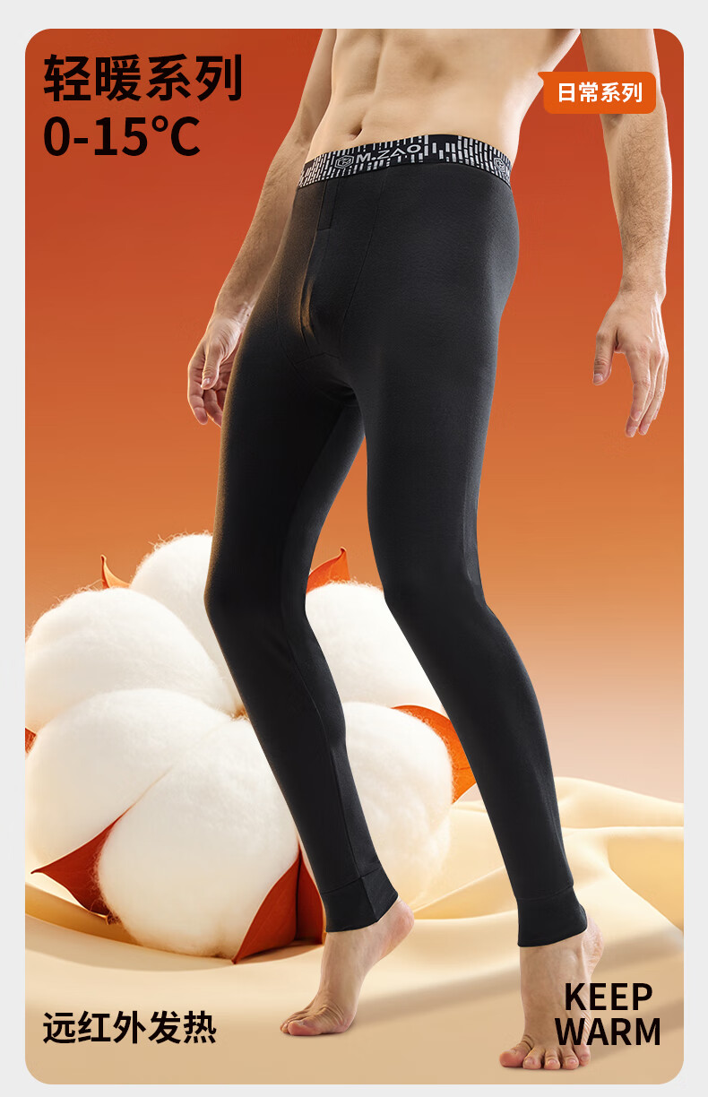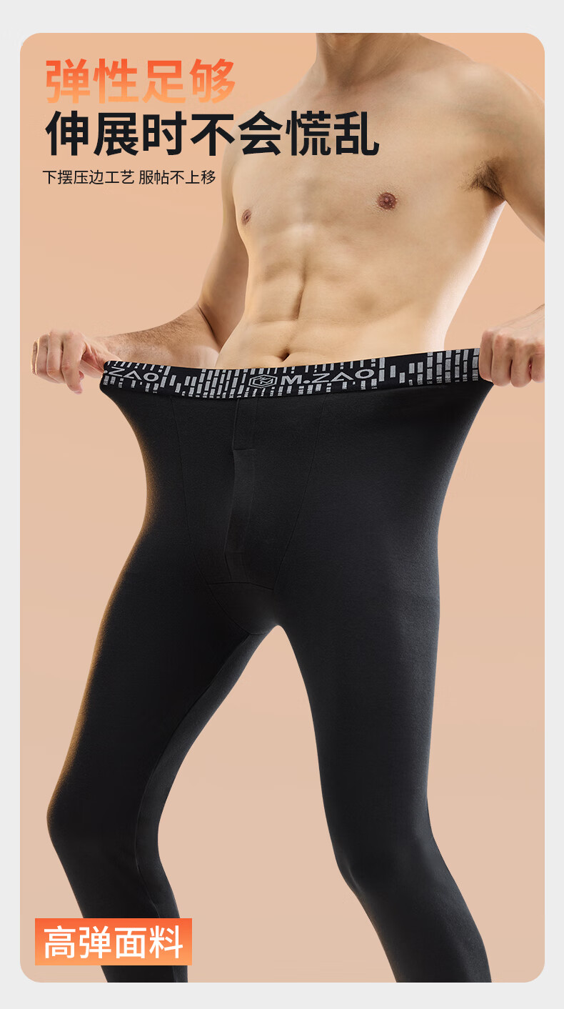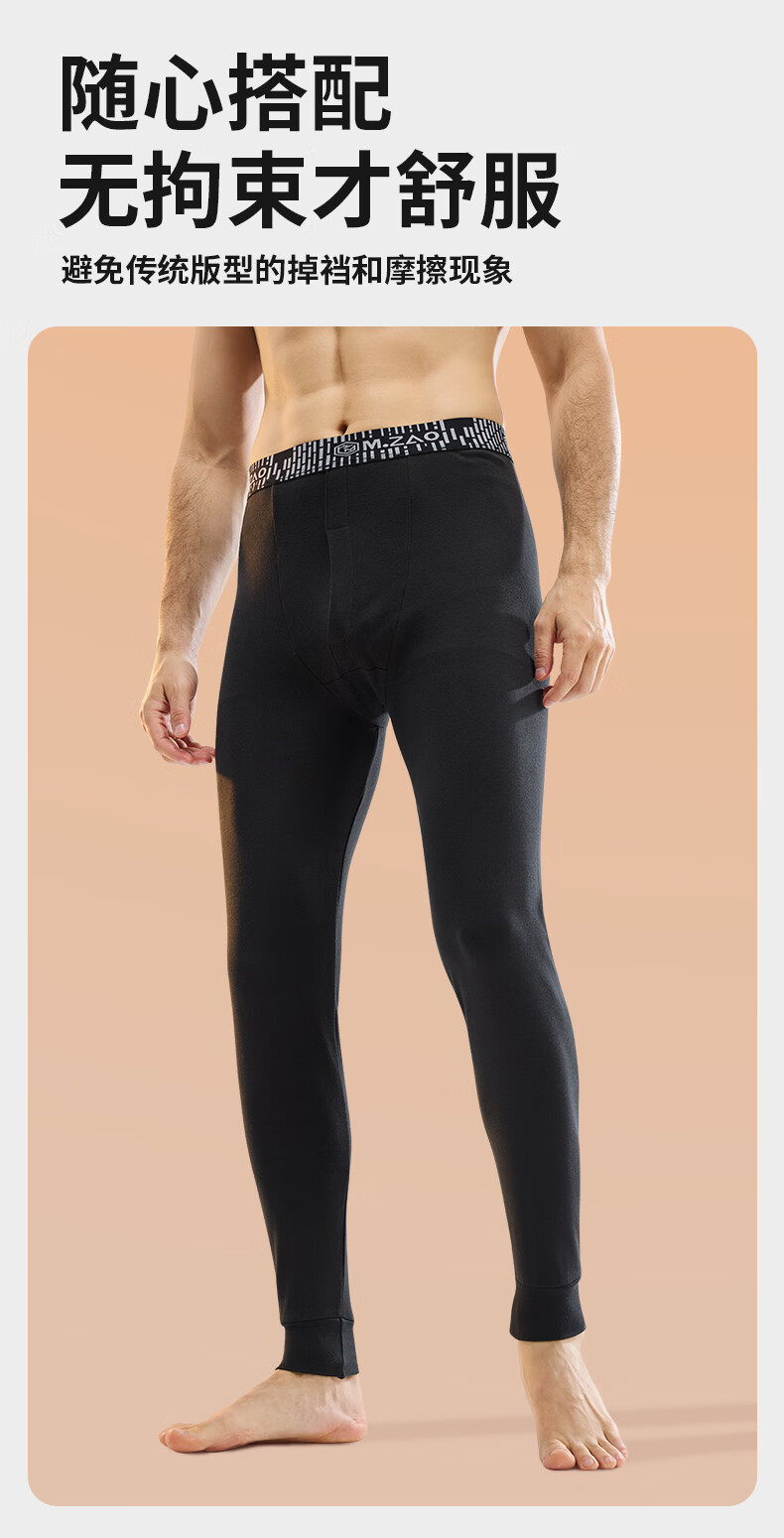 莫代尔100%棉男士秋裤男纯棉2条薄款棉毛裤全棉线裤衬裤秋冬季保暖裤2XL