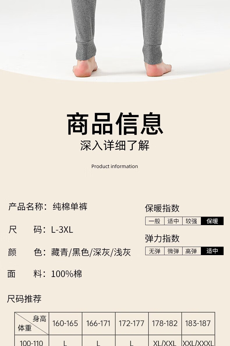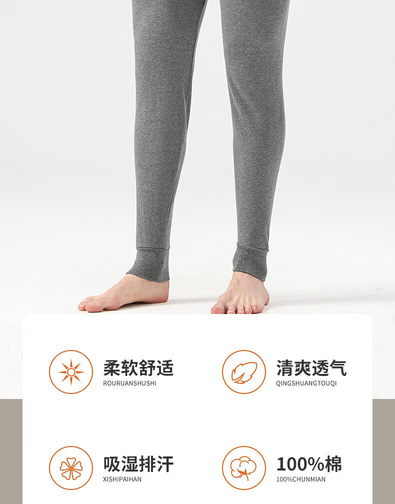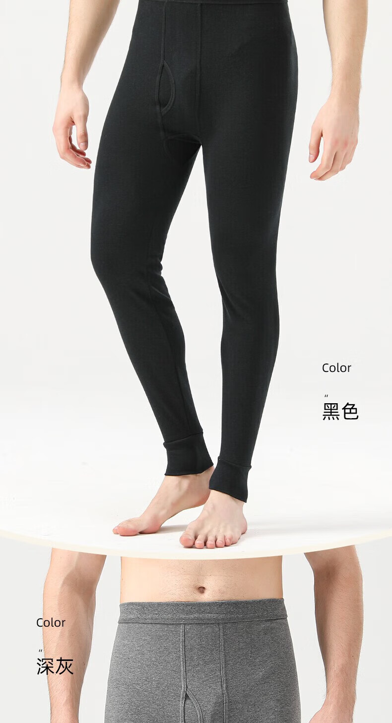 雅鹿【2条装】秋裤男纯棉薄款抗菌线裤保暖裤男士秋冬棉毛裤打底单裤 黑色+灰色 3XL 【适合160-180斤】
