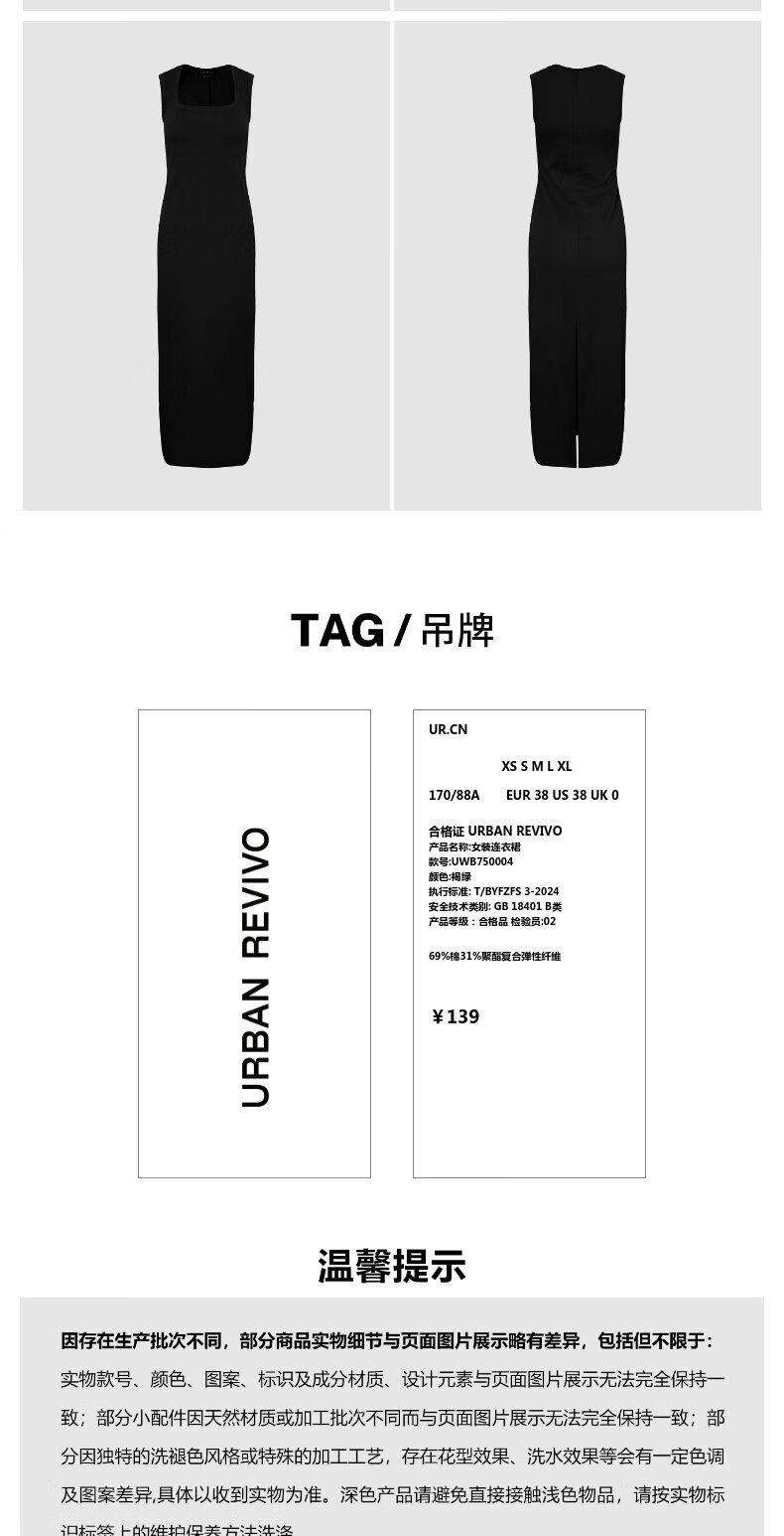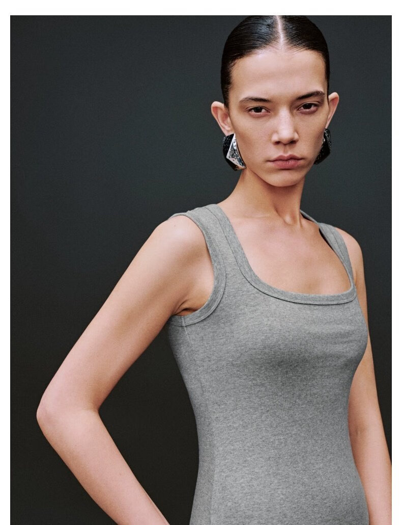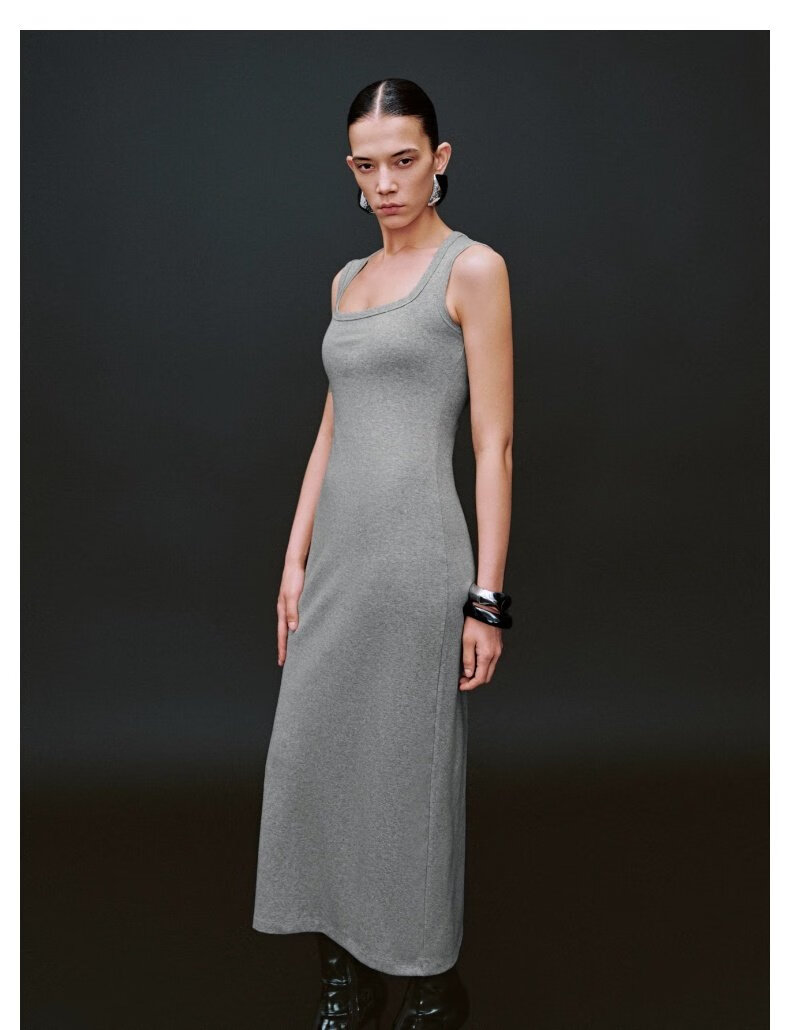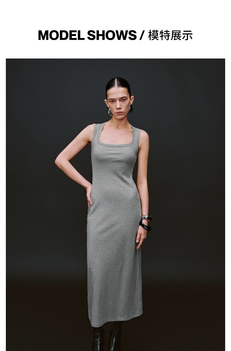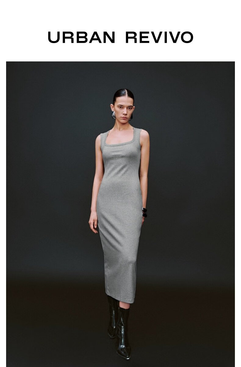 UR2025夏季新款女装休闲褶皱后开衩无袖连衣裙UWB750004 花灰 L