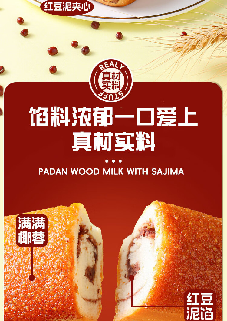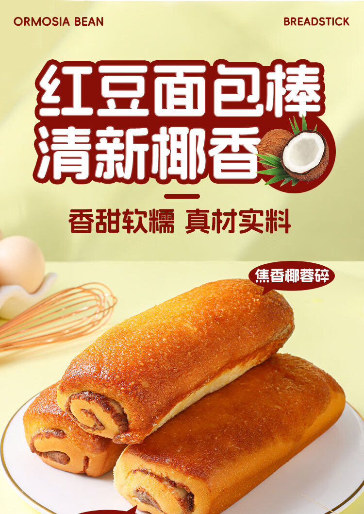 【厂家直发】网红零食休闲小吃全麦红豆椰香豆沙馅老式手撕软面包 4包全麦椰香红豆面包