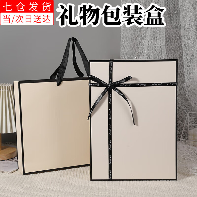 澳颜莱生日礼物盒方形天地盖礼品盒丝巾包装盒女朋友高级感衬衫睡衣礼盒 27*27*3+1个手提袋+硫酸纸