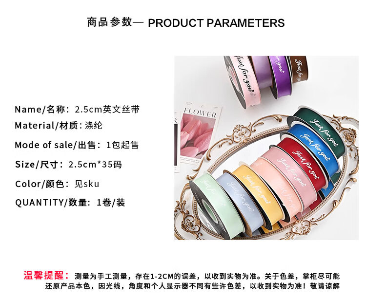 艺良 2.5cm英文字母丝带烘焙蛋糕盒礼盒装饰彩带DIY蝴蝶结绑带 奶白(2.5cm*35码/卷)