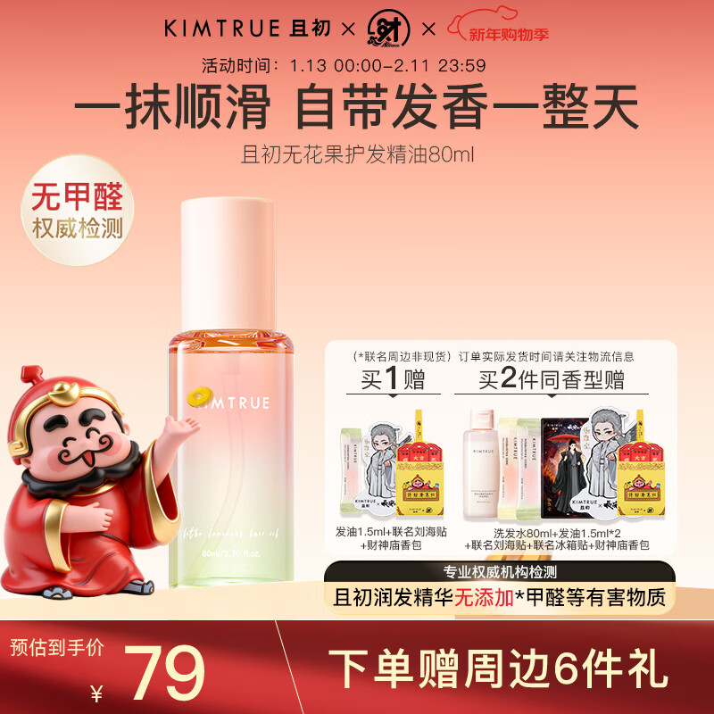 KIMTRUE且初护发精油 无花果香80ml 轻盈顺滑改善干枯毛躁清爽不油腻